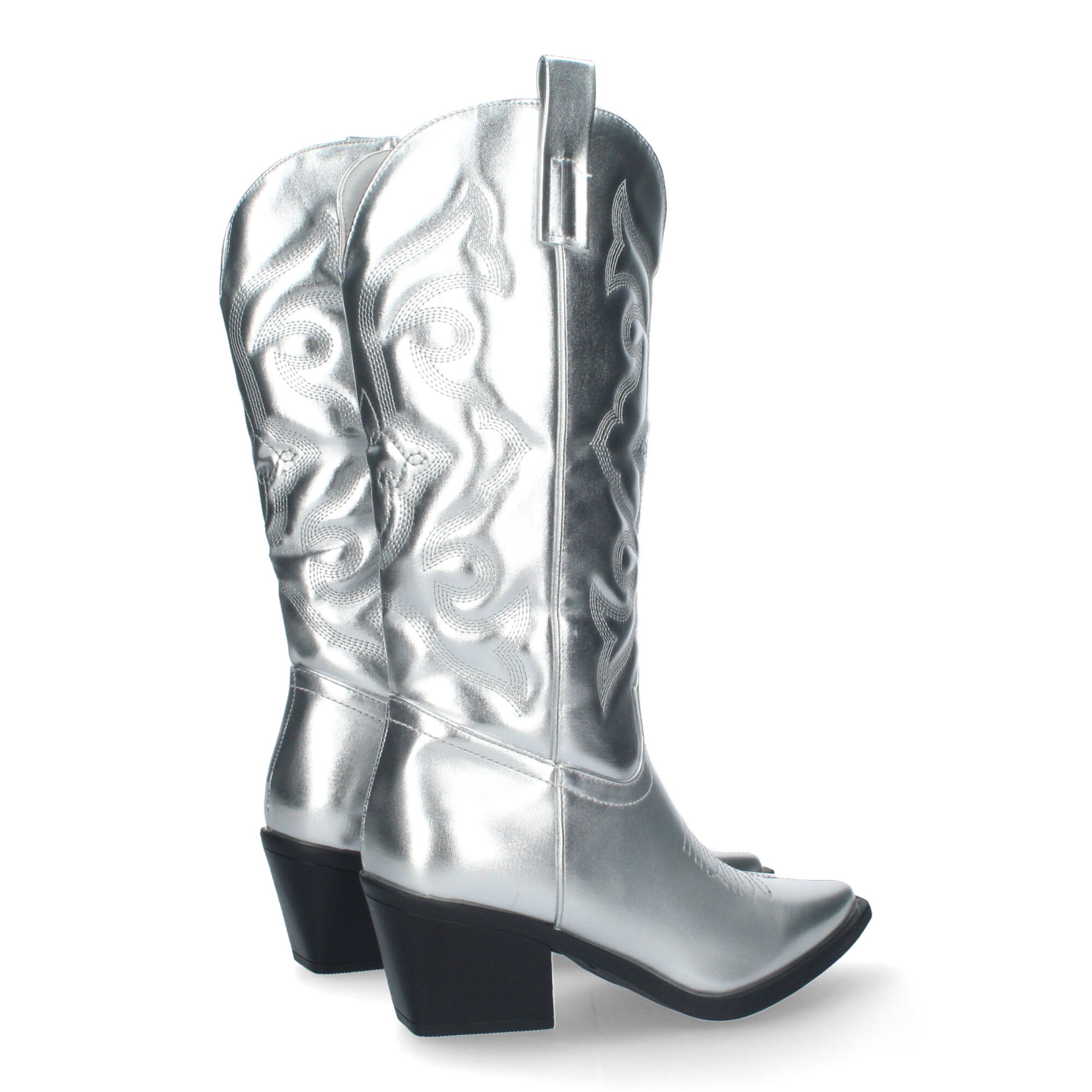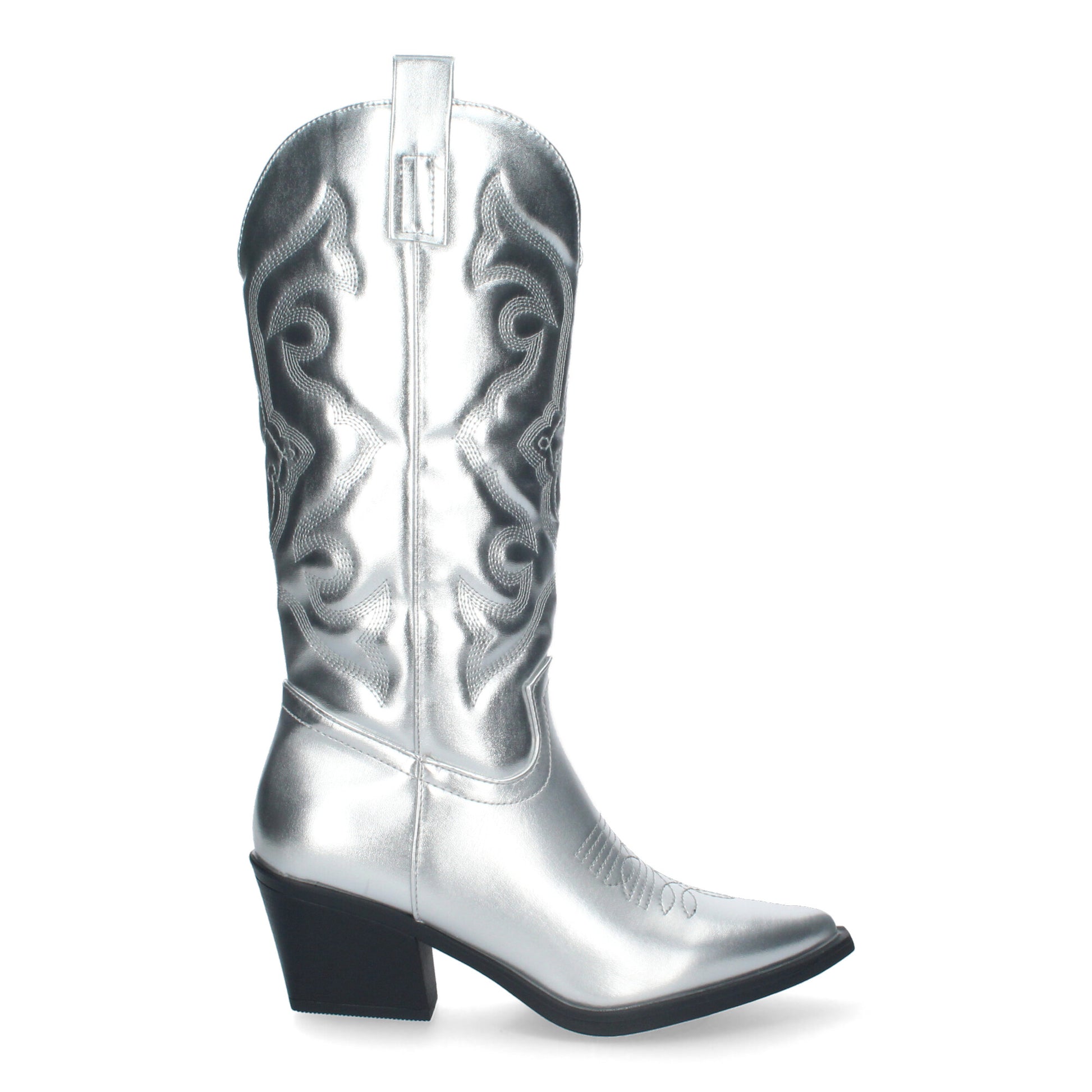 Bota de Tacon para Mujer Comoda Estilo Campera con Bordado en la Caña de Punta Fina y Cierre de Cremallera