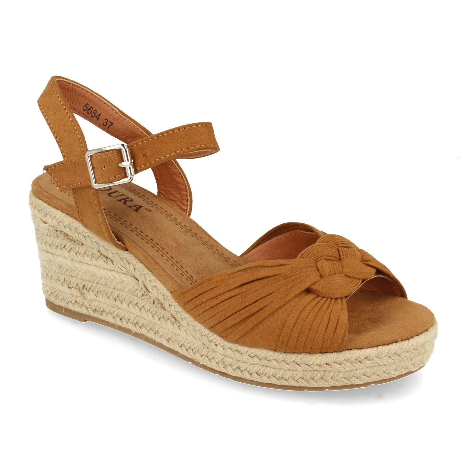 Sandalia de Cuña para Mujer Estilo Valenciana Forrada de Yute con Flecos en Pala y Cierre de Hebilla Primavera Verano 2021