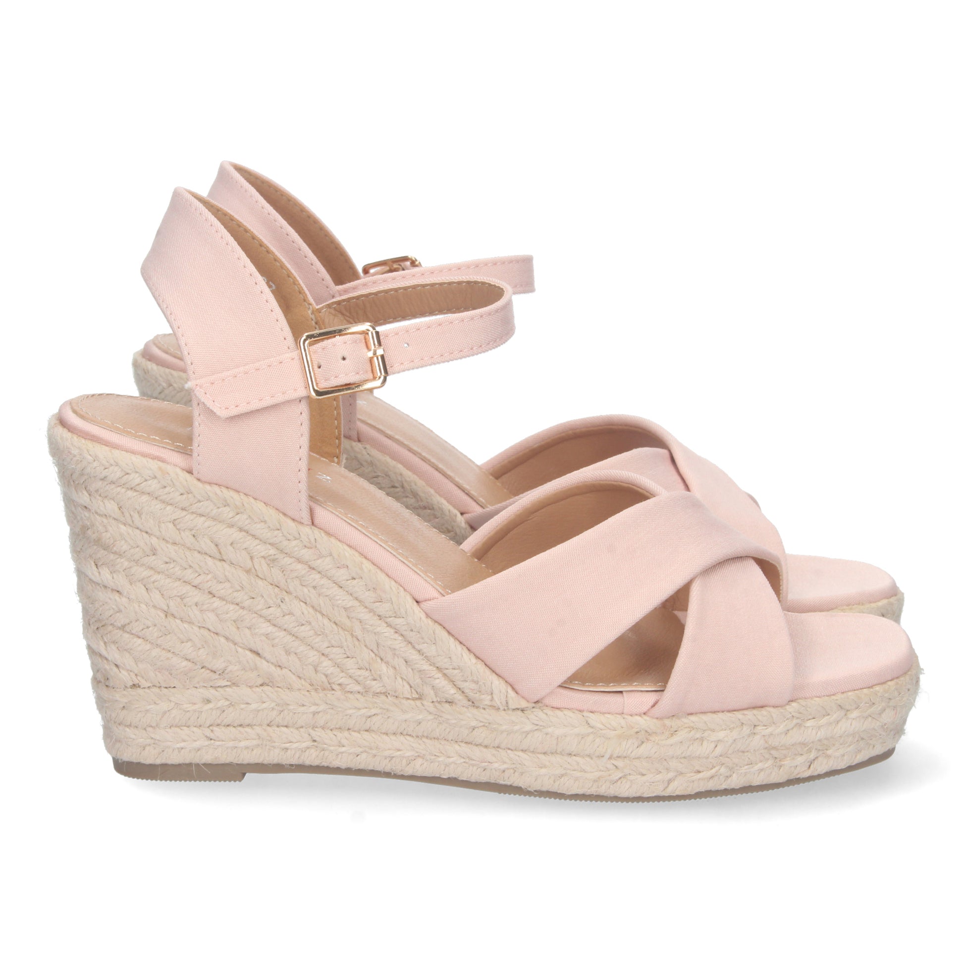 Sandalia de Cuña para Mujer Comoda Forrada de Yute Palas Cruzadas y Cierre de Hebilla
