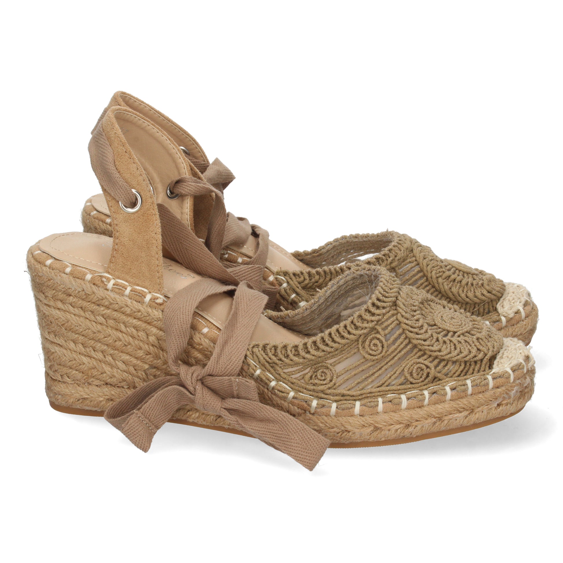 Sandalias de Cuña para Mujer Forrada de Yute Comodas con Pala Entrelazada y Cierre de Cordones Primavera Verano 2022