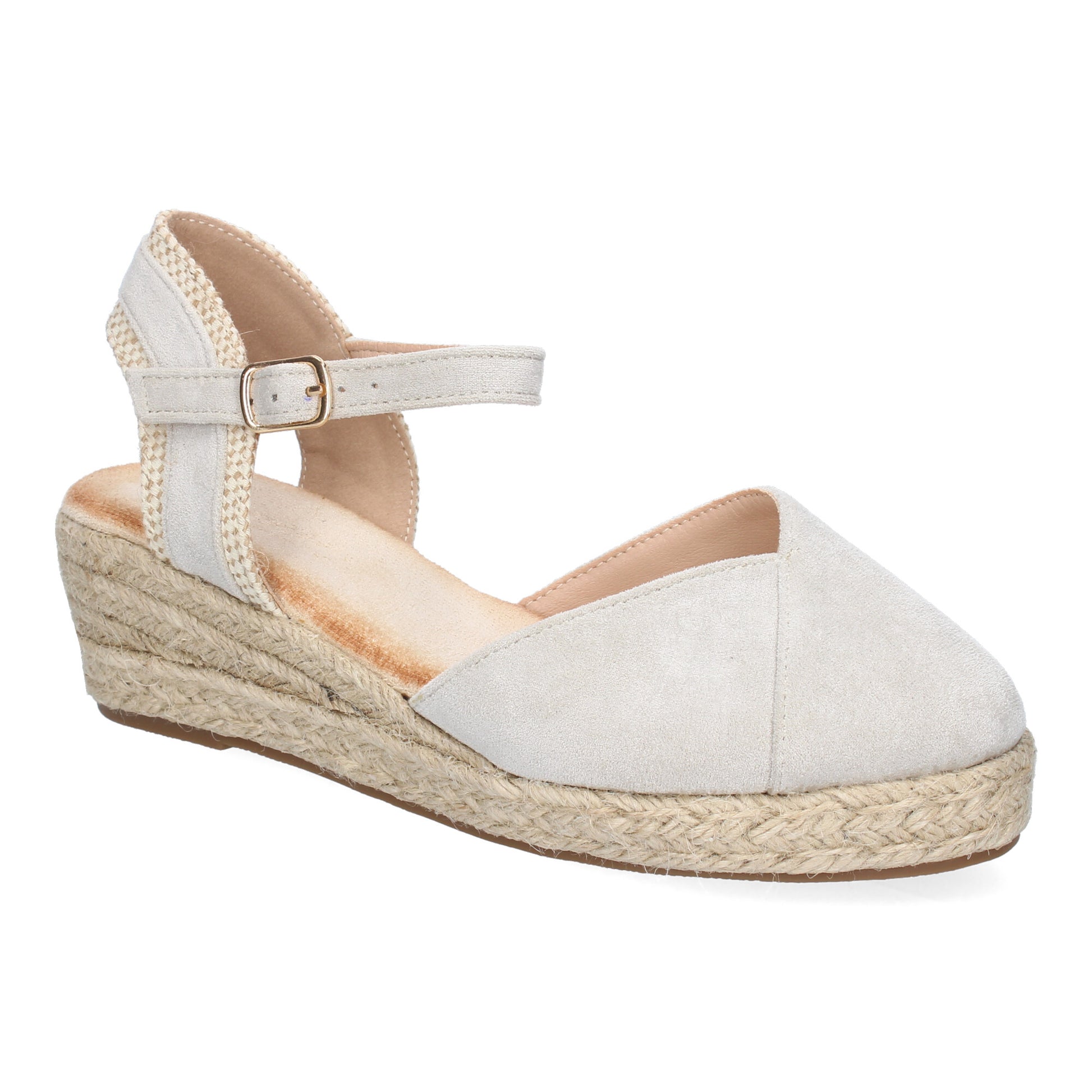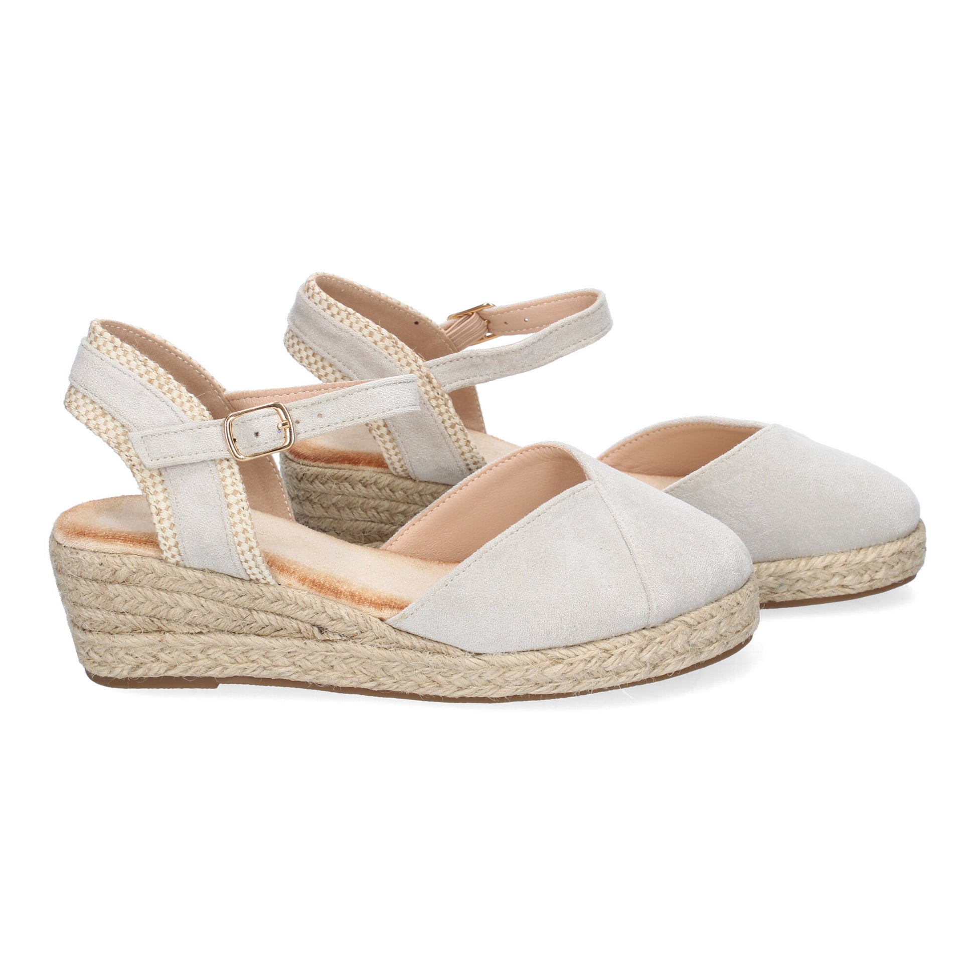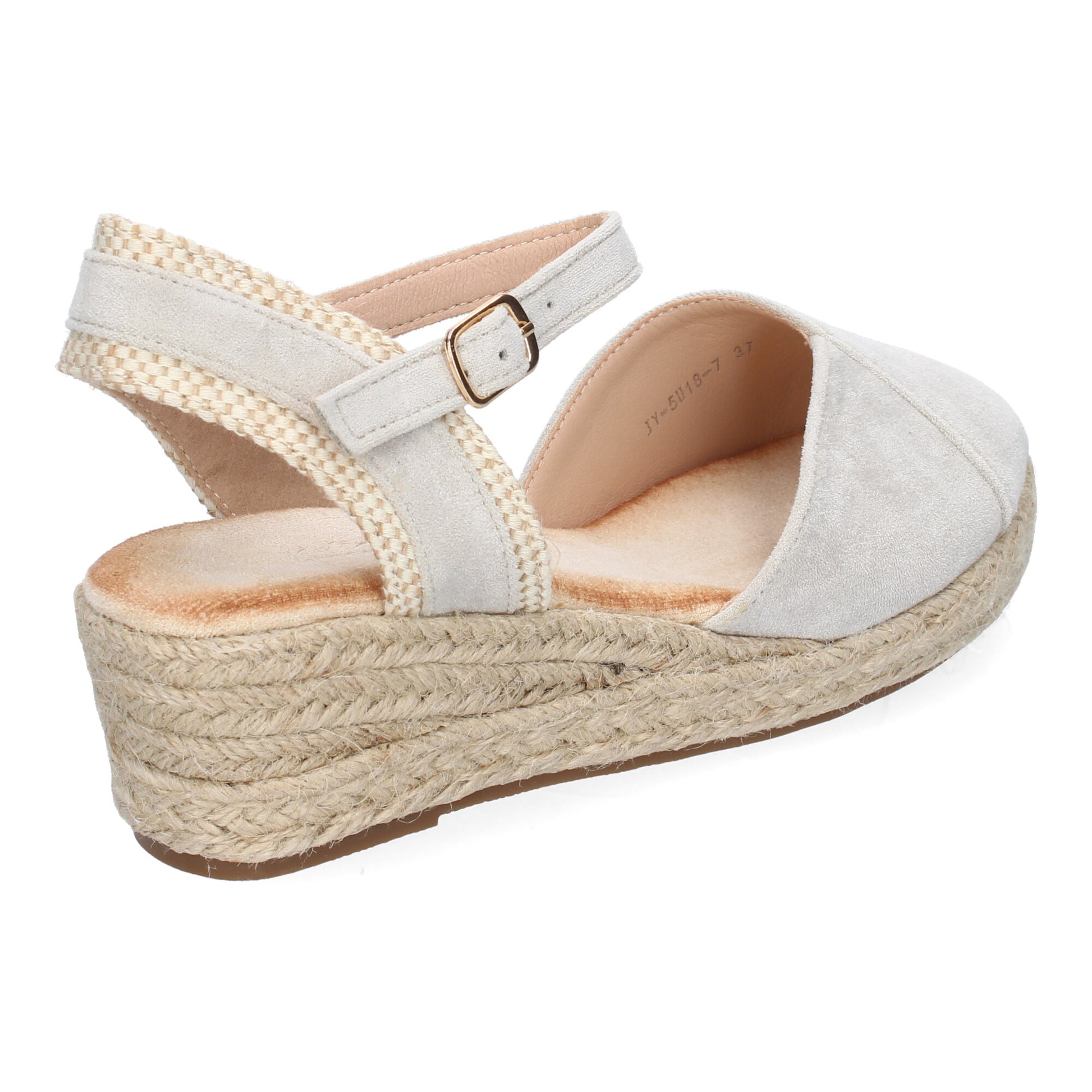 Sandalia de Cuña de Yute para Mujer Comodas y Elegantes Diseño Moderno con Tira Decorativa en el Talón y Cierre de Hebilla.