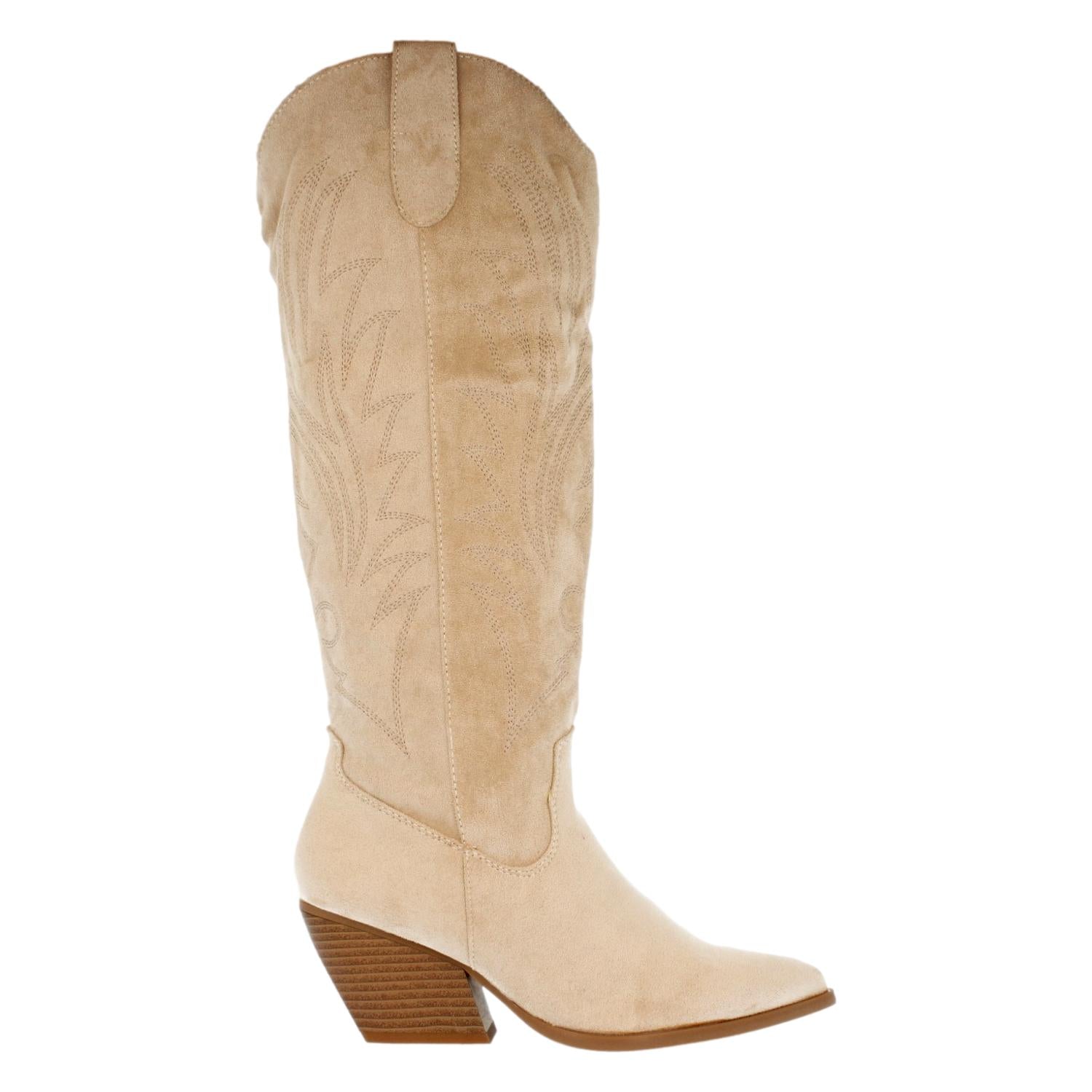 Bota de Tacon para Mujer de Punta Fina con Bordado en Caña y Cierre de Cremallera Otoño Invierno 2021