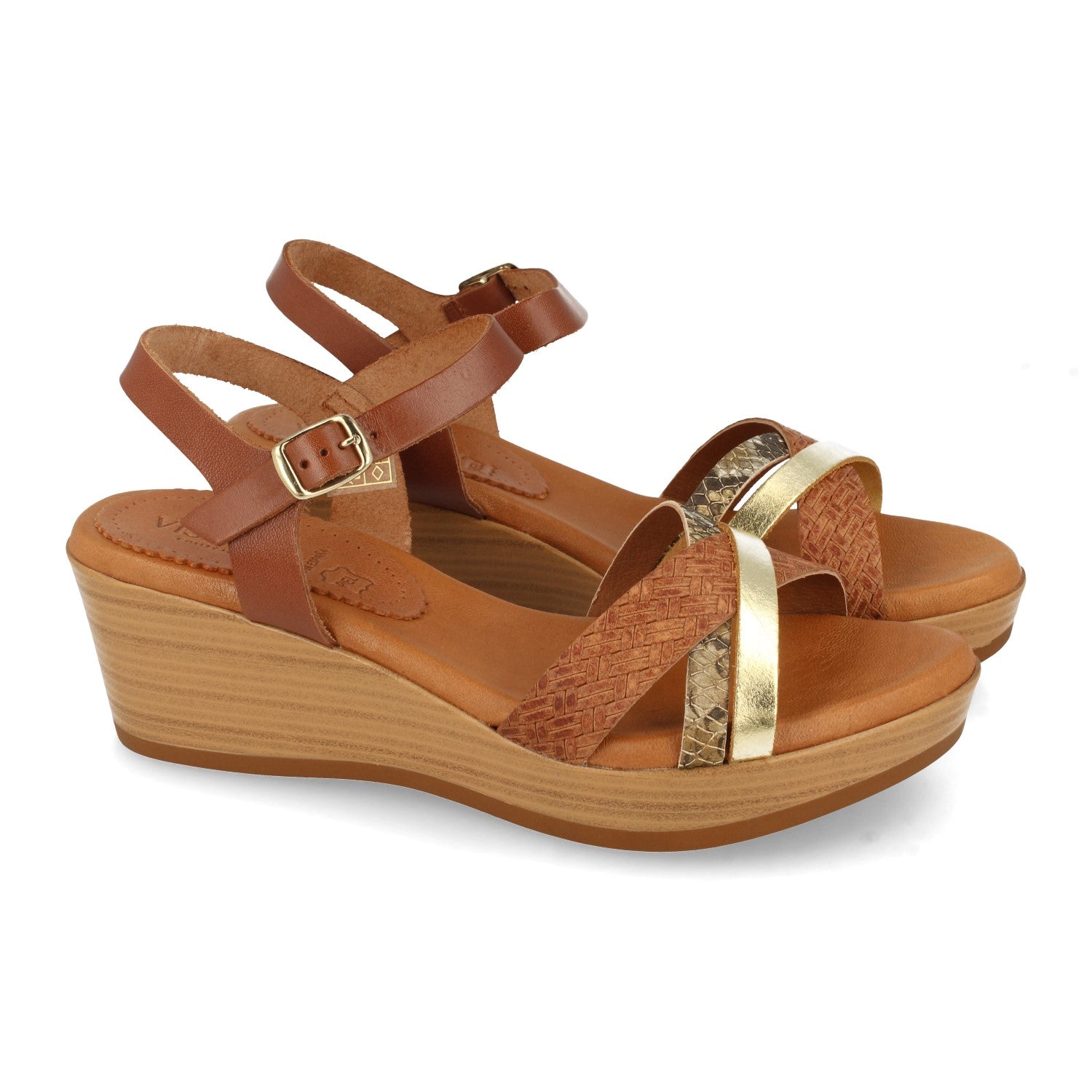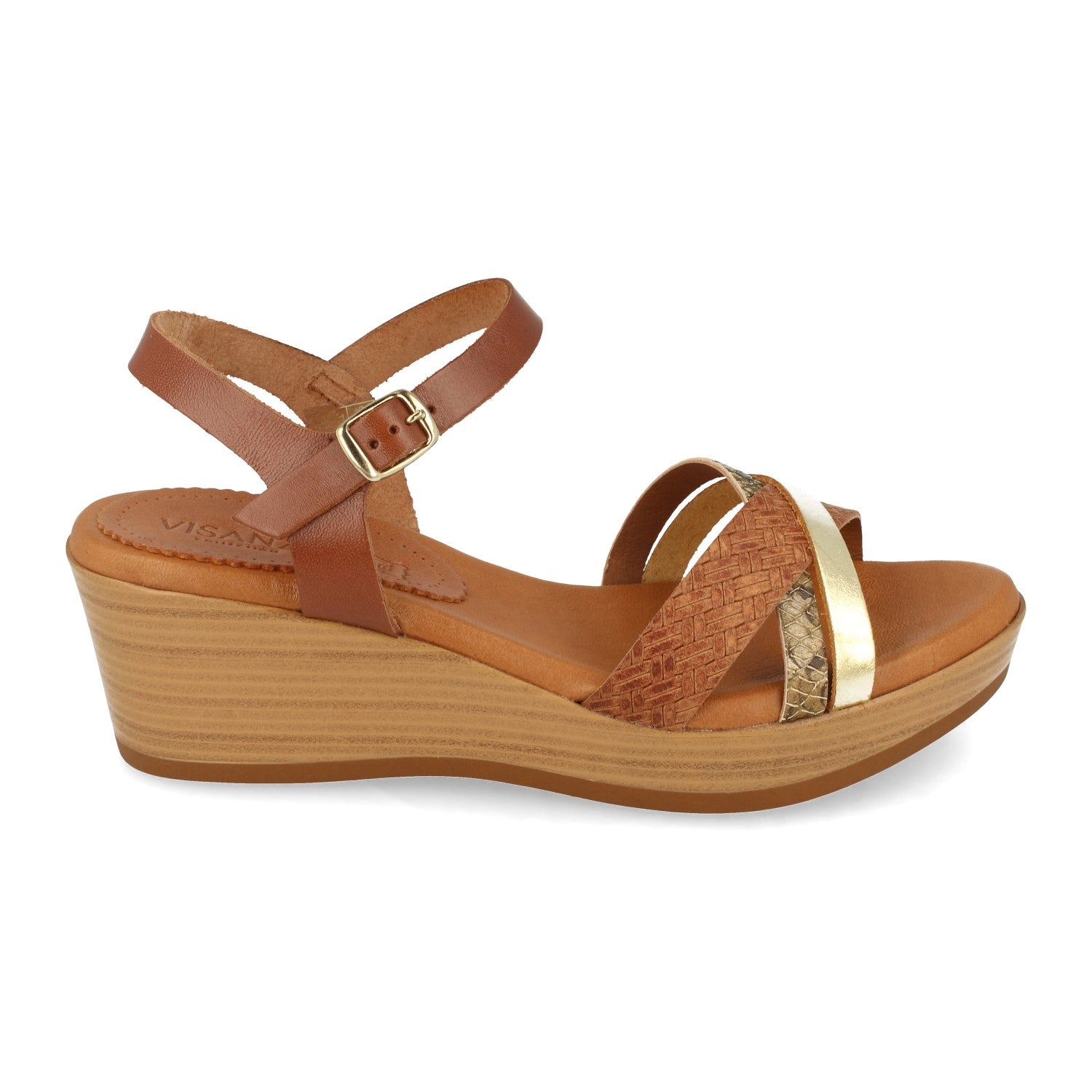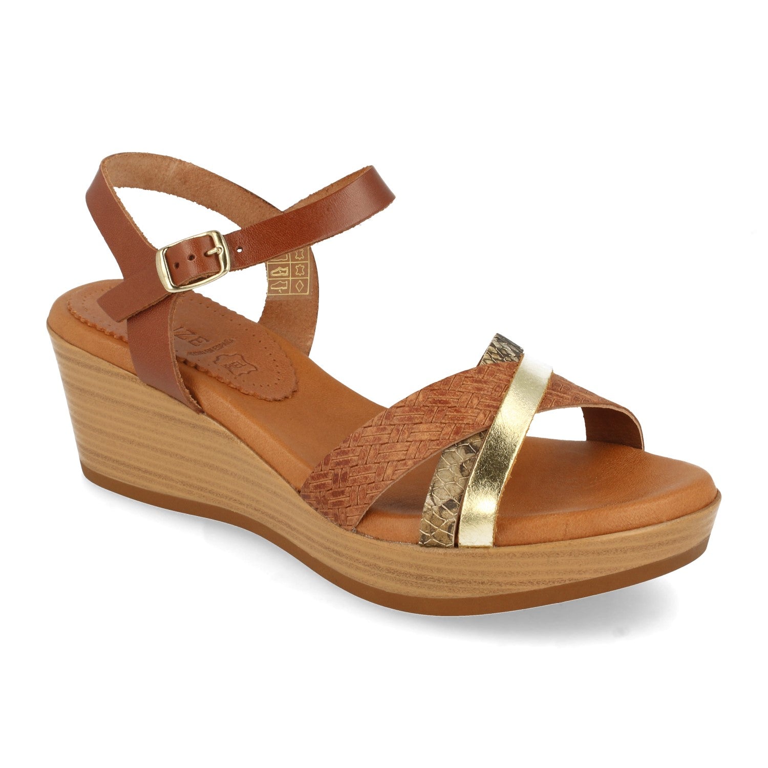 Sandalia de Cuña para Mujer Comodas con Palas Cruzadas Multicolor y Cierre de Hebilla Fabricado con Piel Primavera Verano 2021