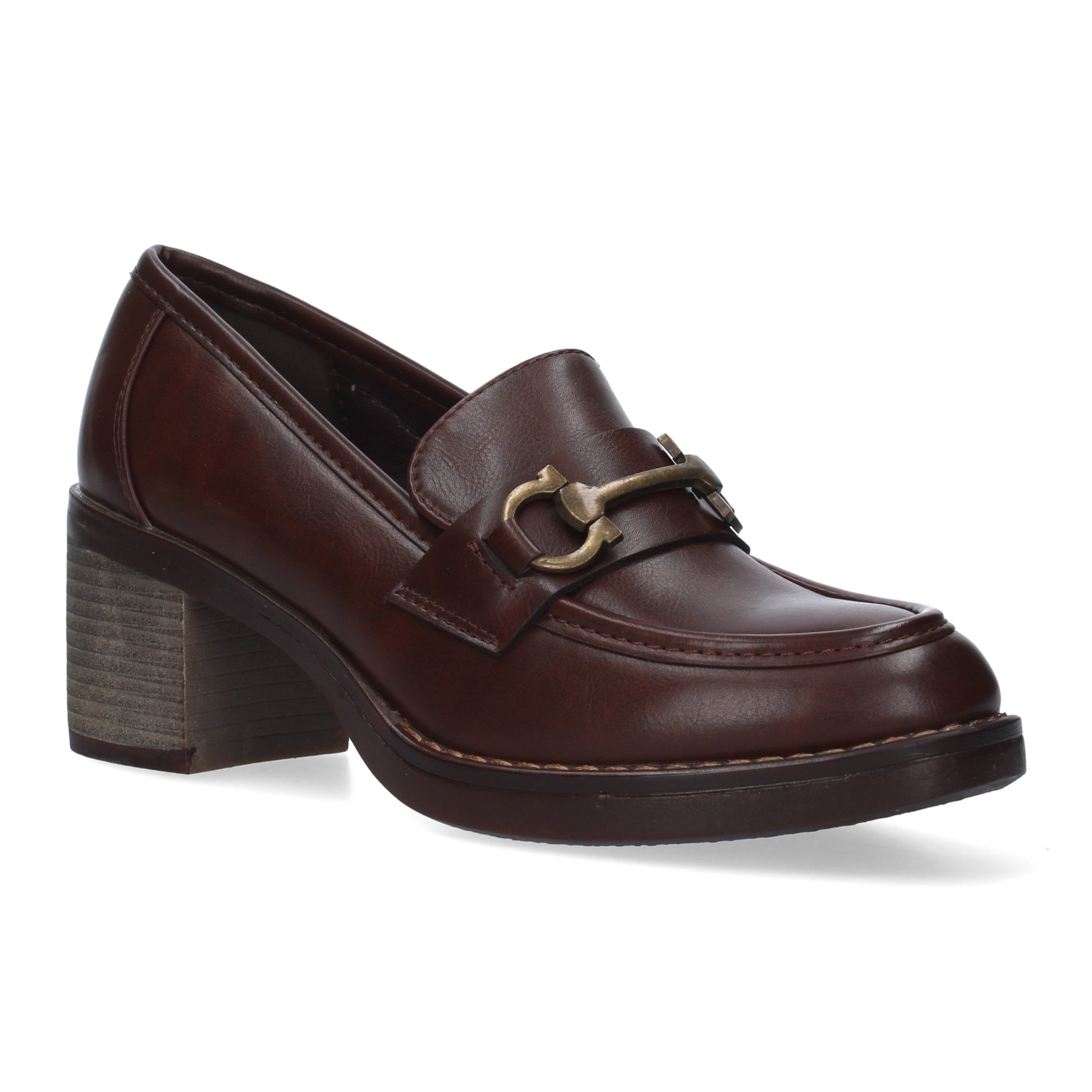 Mocasin de tacon para mujer comodos con adorno metálico en la pala.