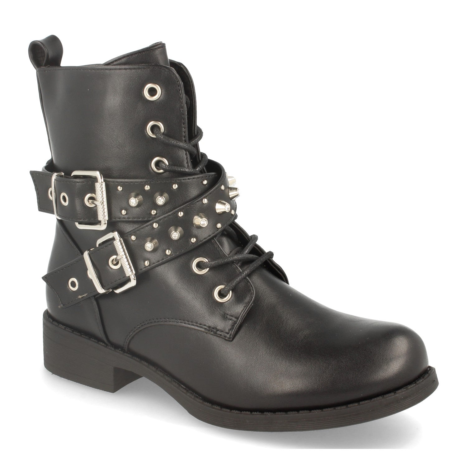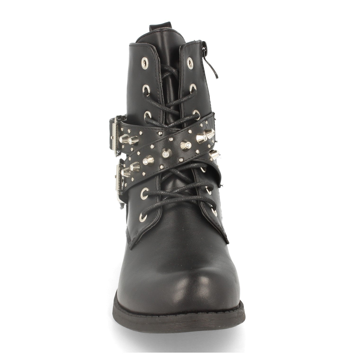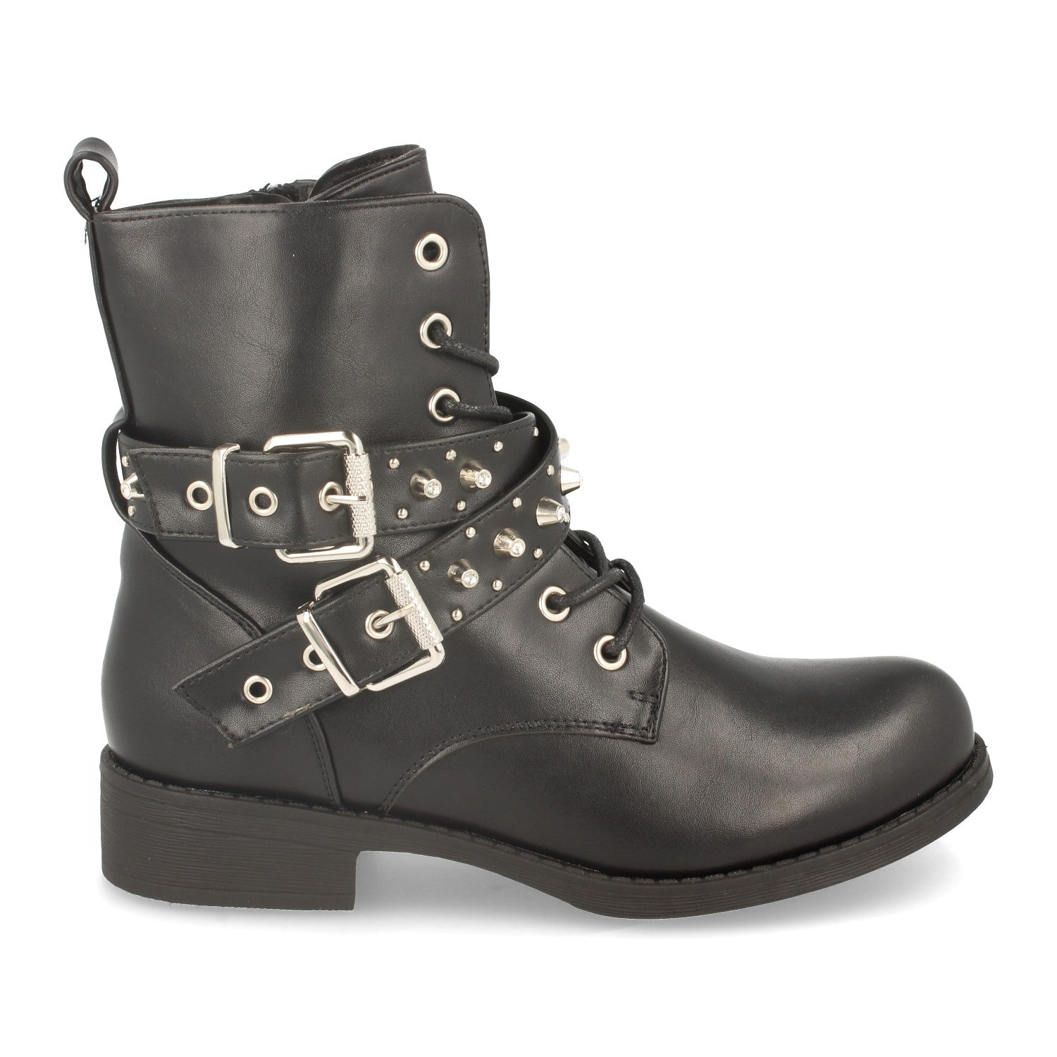 Botin Plano de Mujer Estilo Motero Tiras con Hebilla Cordones y Cierre de Cremallera Otoño Invierno 2020