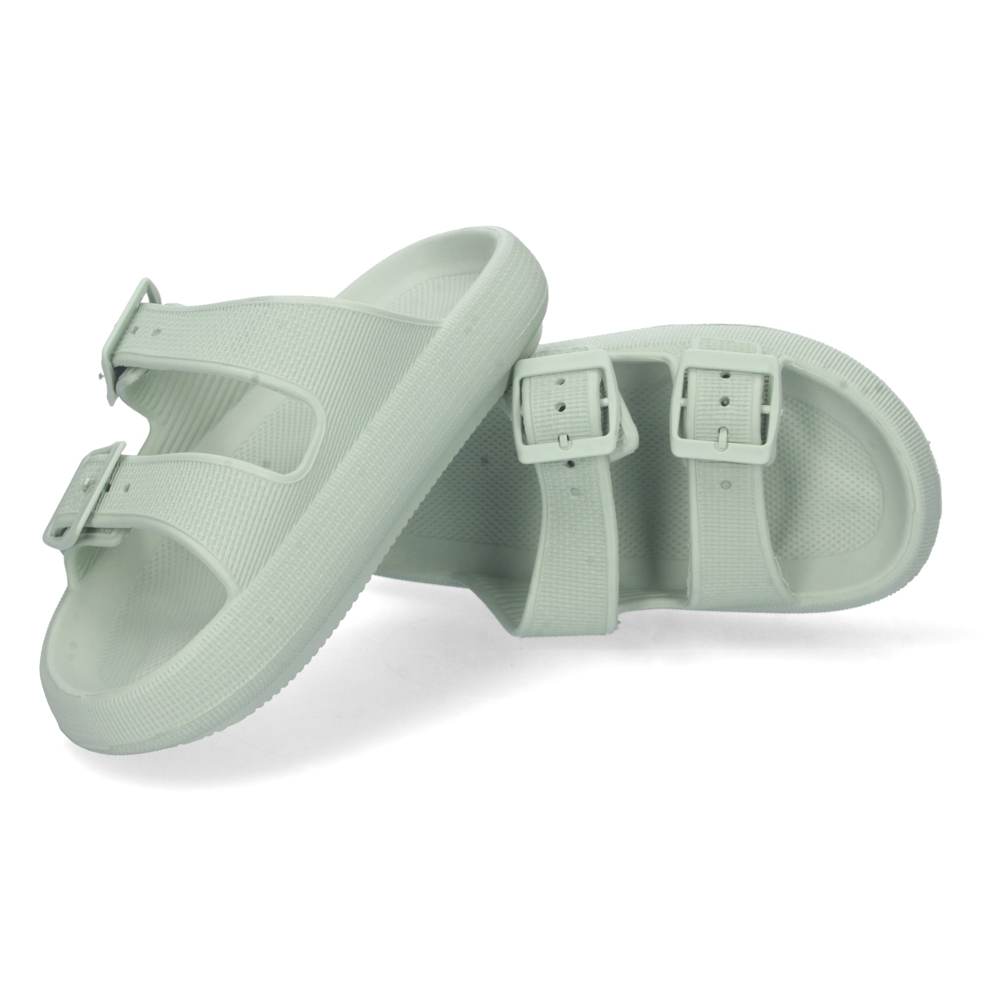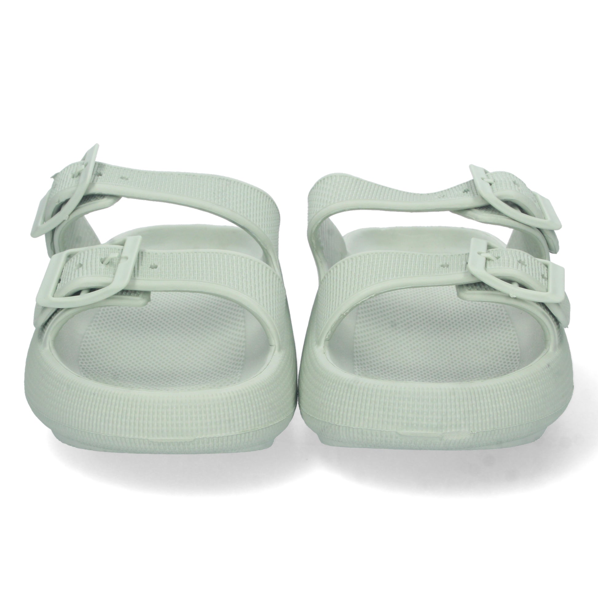 Sandalia Plana para Mujer Comoda y Acolchada Doble Pala con Cierre de Hebilla y Talon Abierto