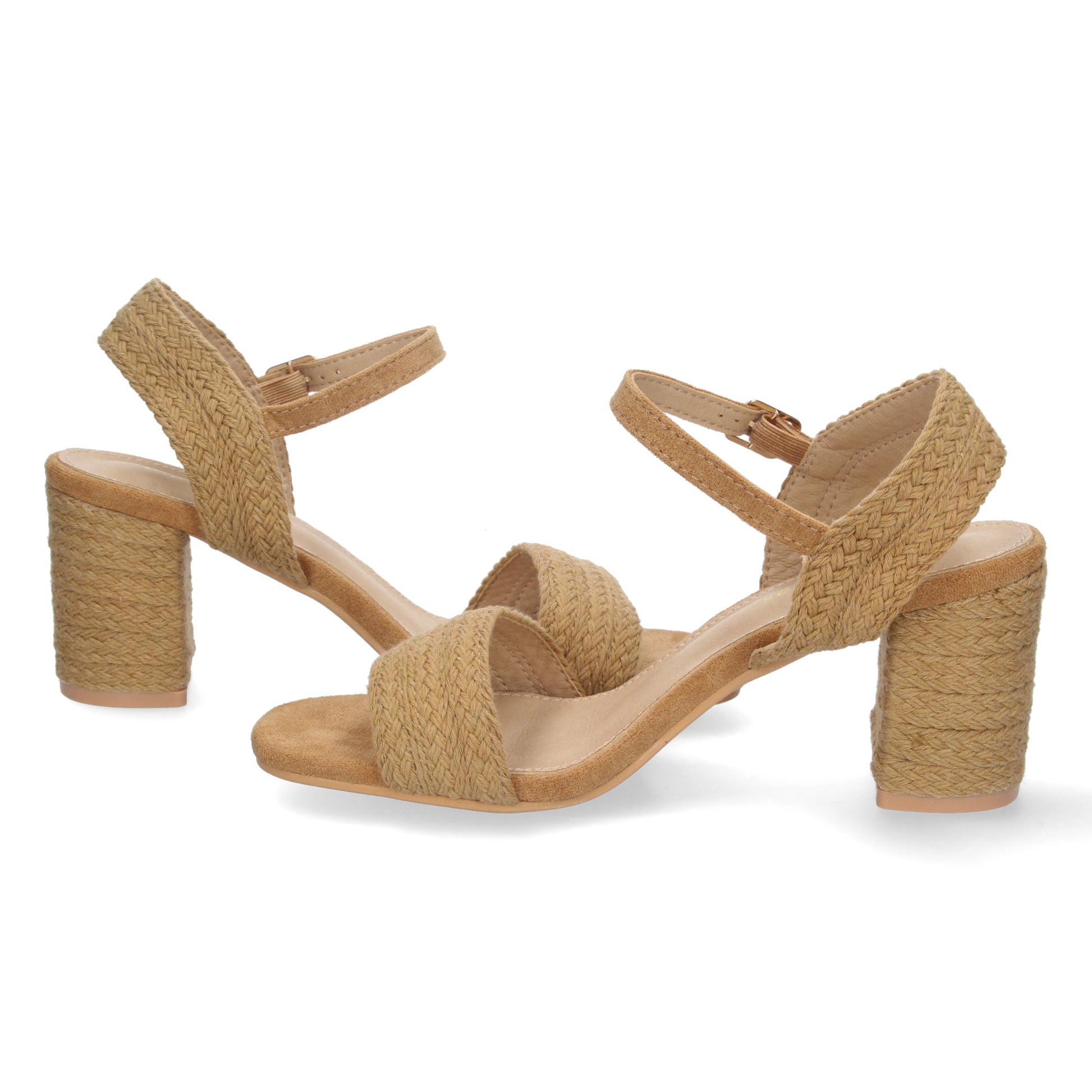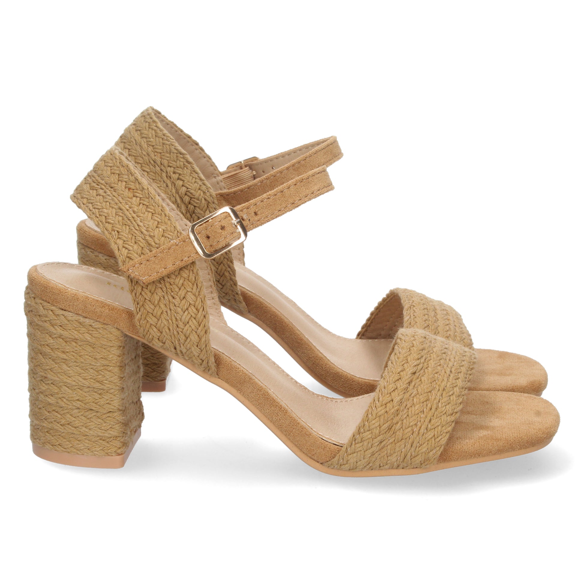 Sandalia de Tacon Medio para Mujer Comodo Forrado de Yute Pala Fina y Cierre de Hebilla