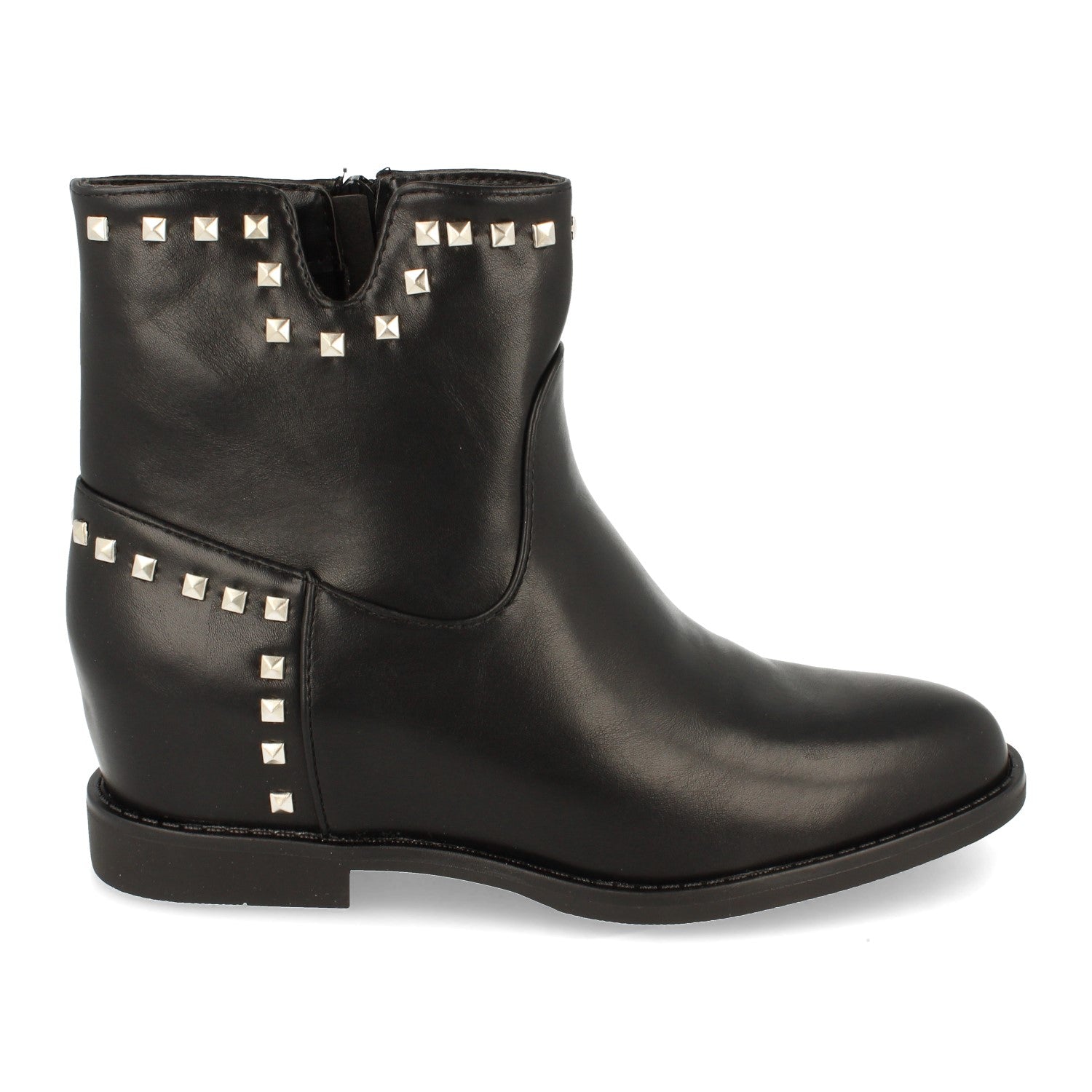 Botín de Cuña para Mujer Decorado con Tachuelas Punta Redonda y Cierre de Cremallera Otoño Invierno 2020