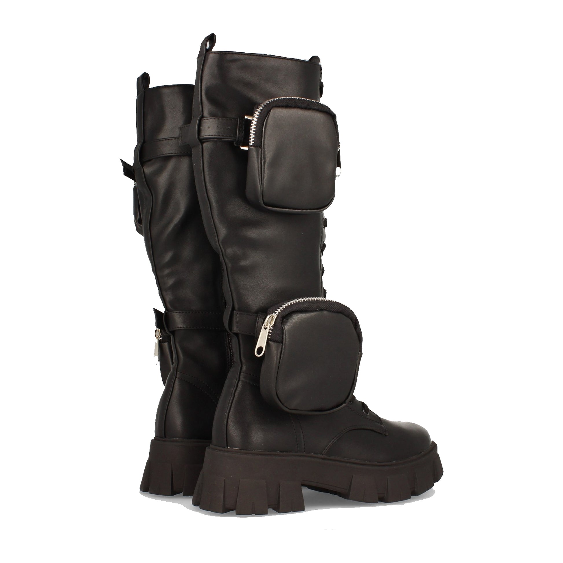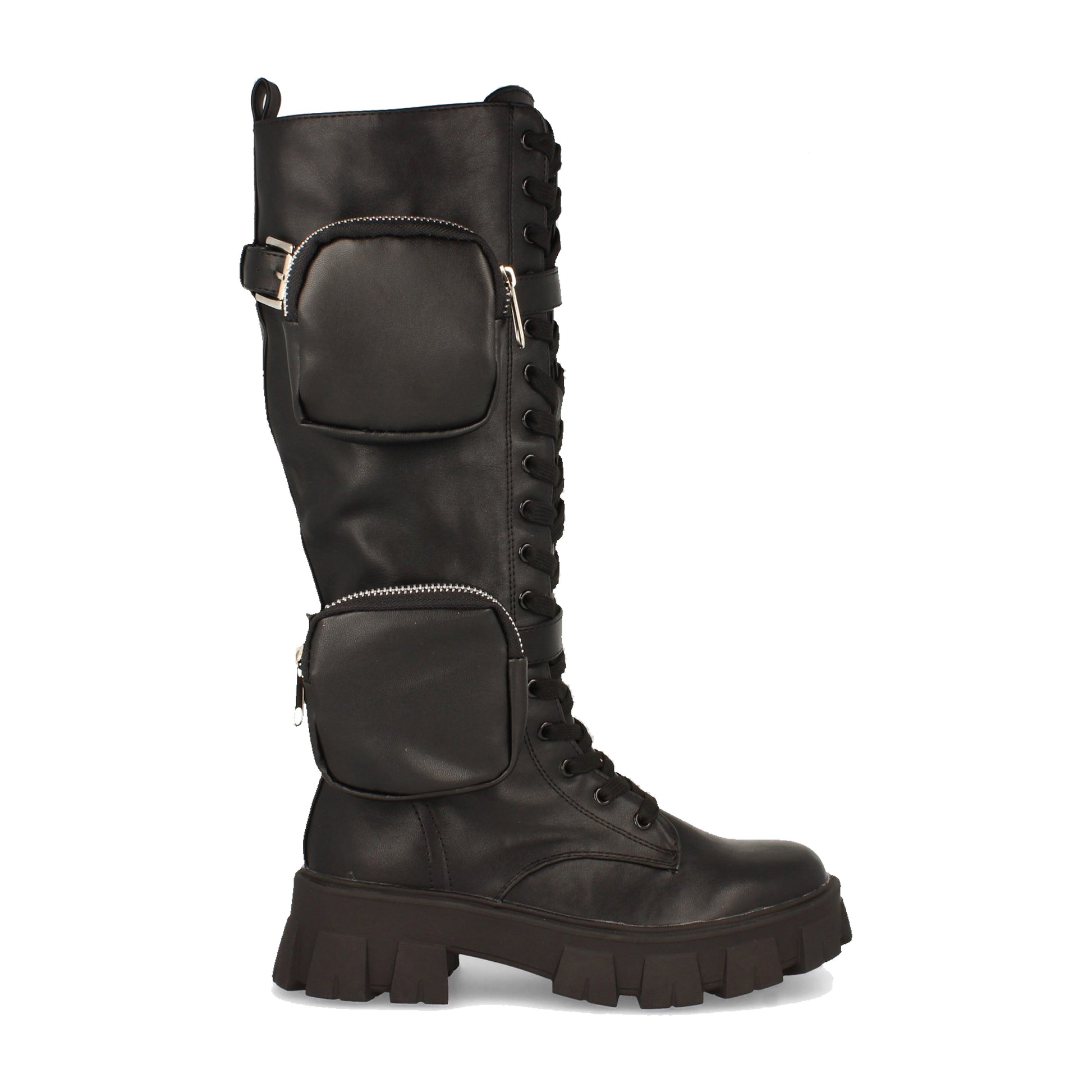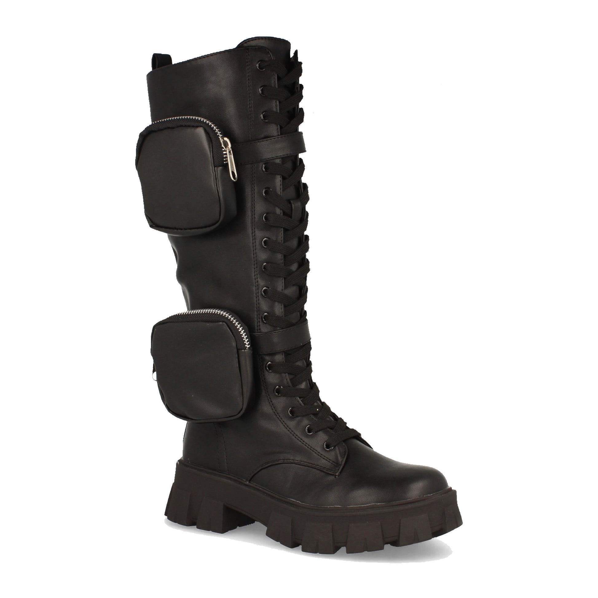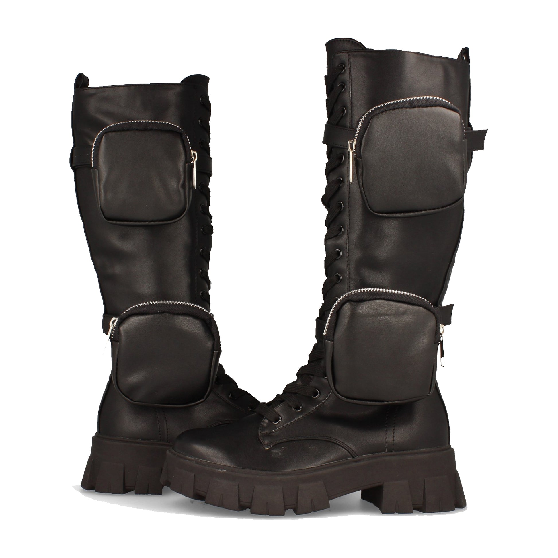 Bota de Mujer Suela Plana con Bolsillos de Quita y Pon Unido a la Caña con una Correa Cierre de Cordones y Cremallera Otoño Invierno 2021