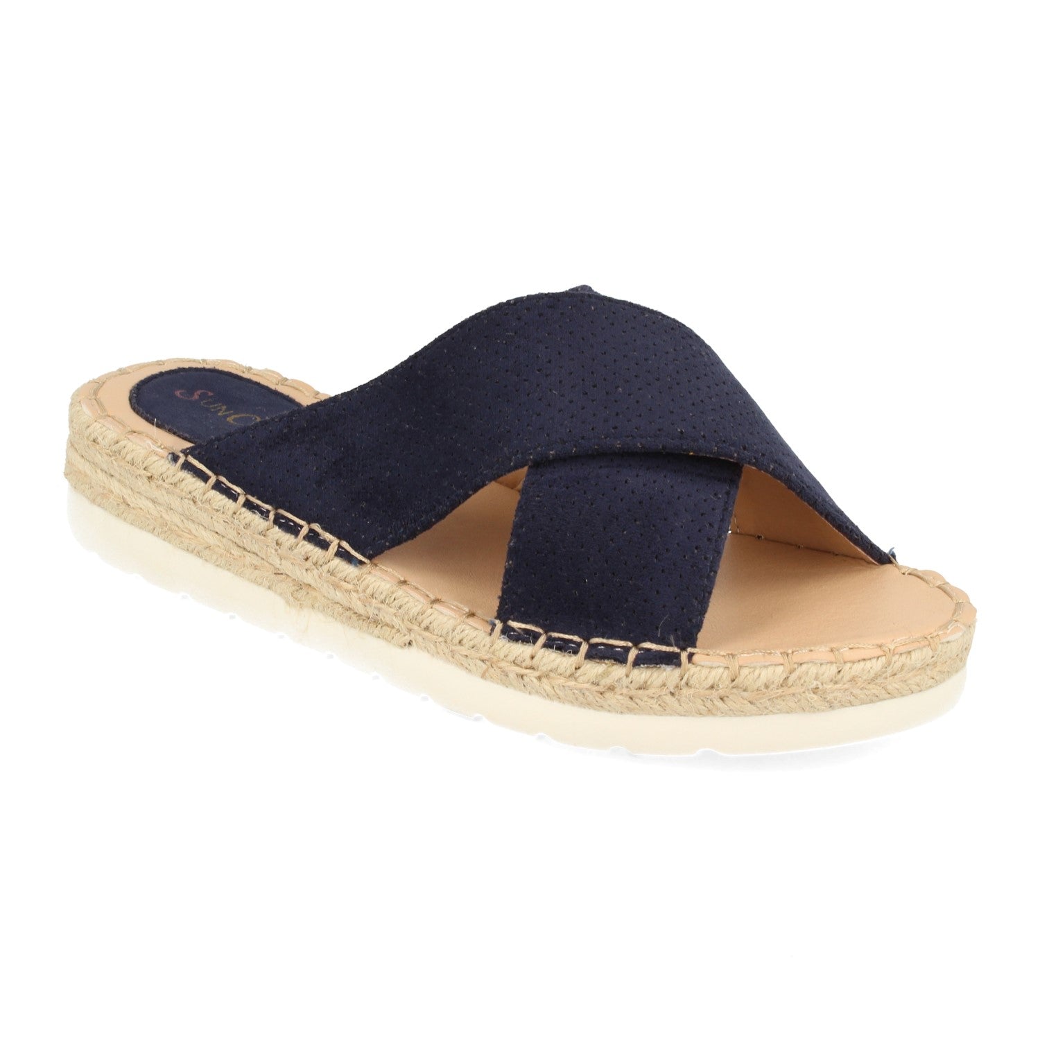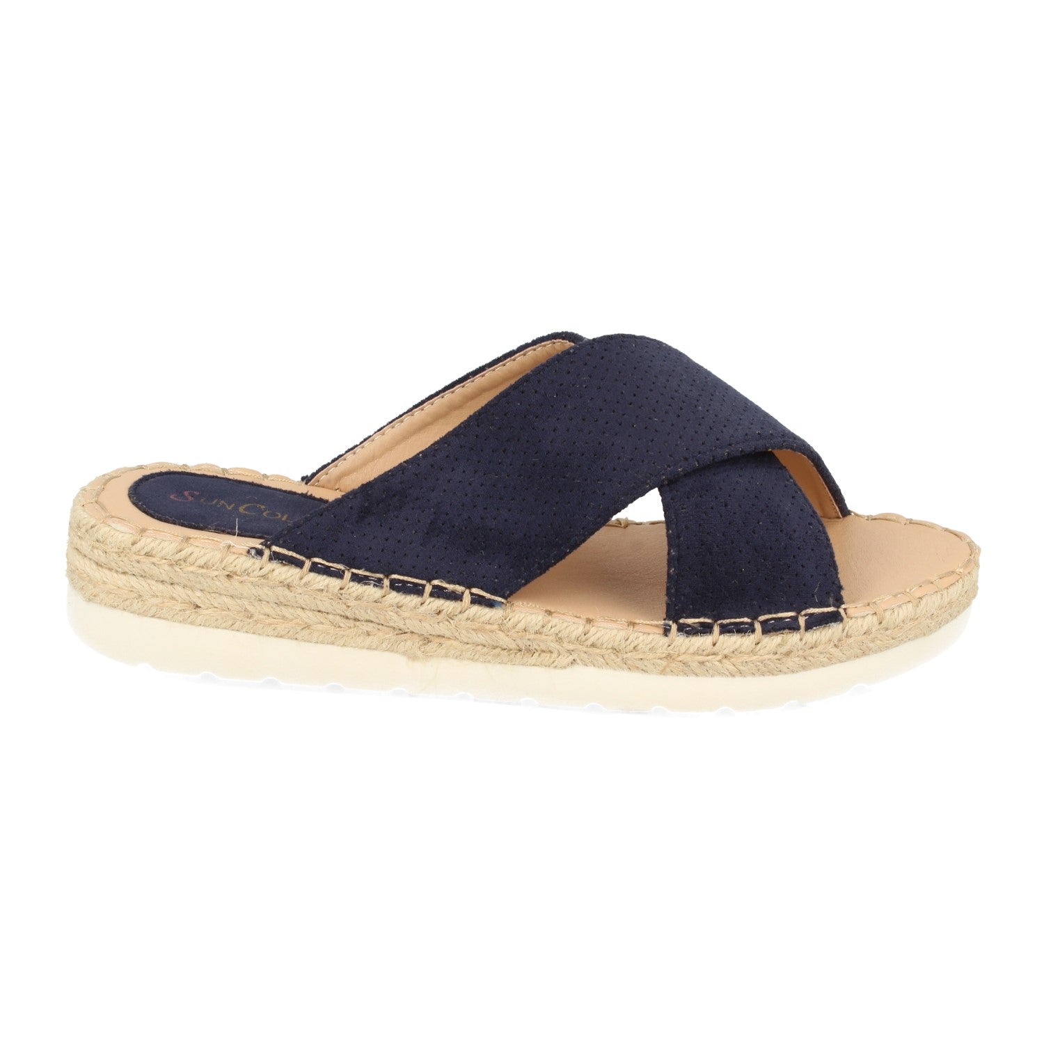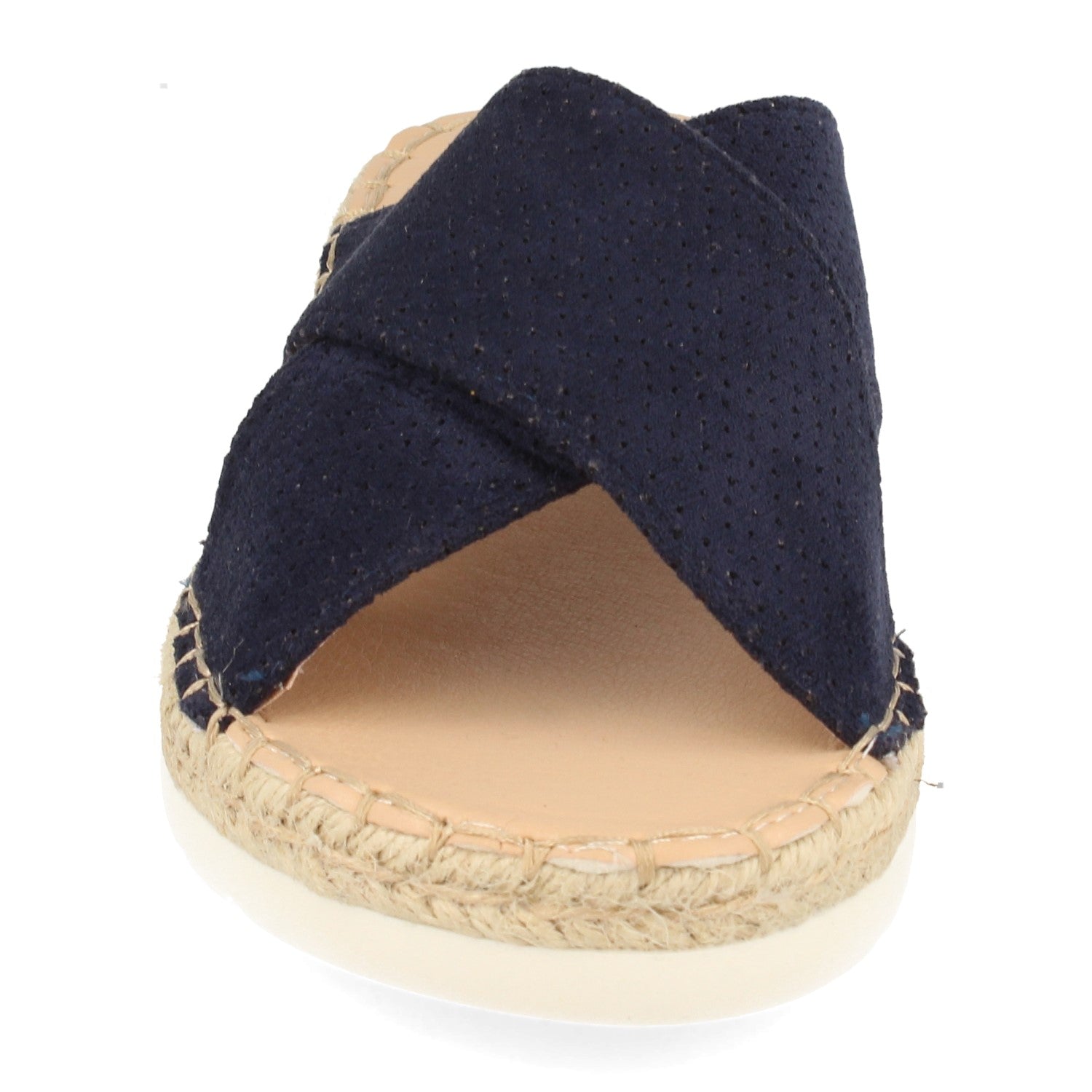 Sandalia Plana con Cuña Baja de Yute Doble Pala Cruzada con Perforado Mil Puntos Primavera Verano 2020