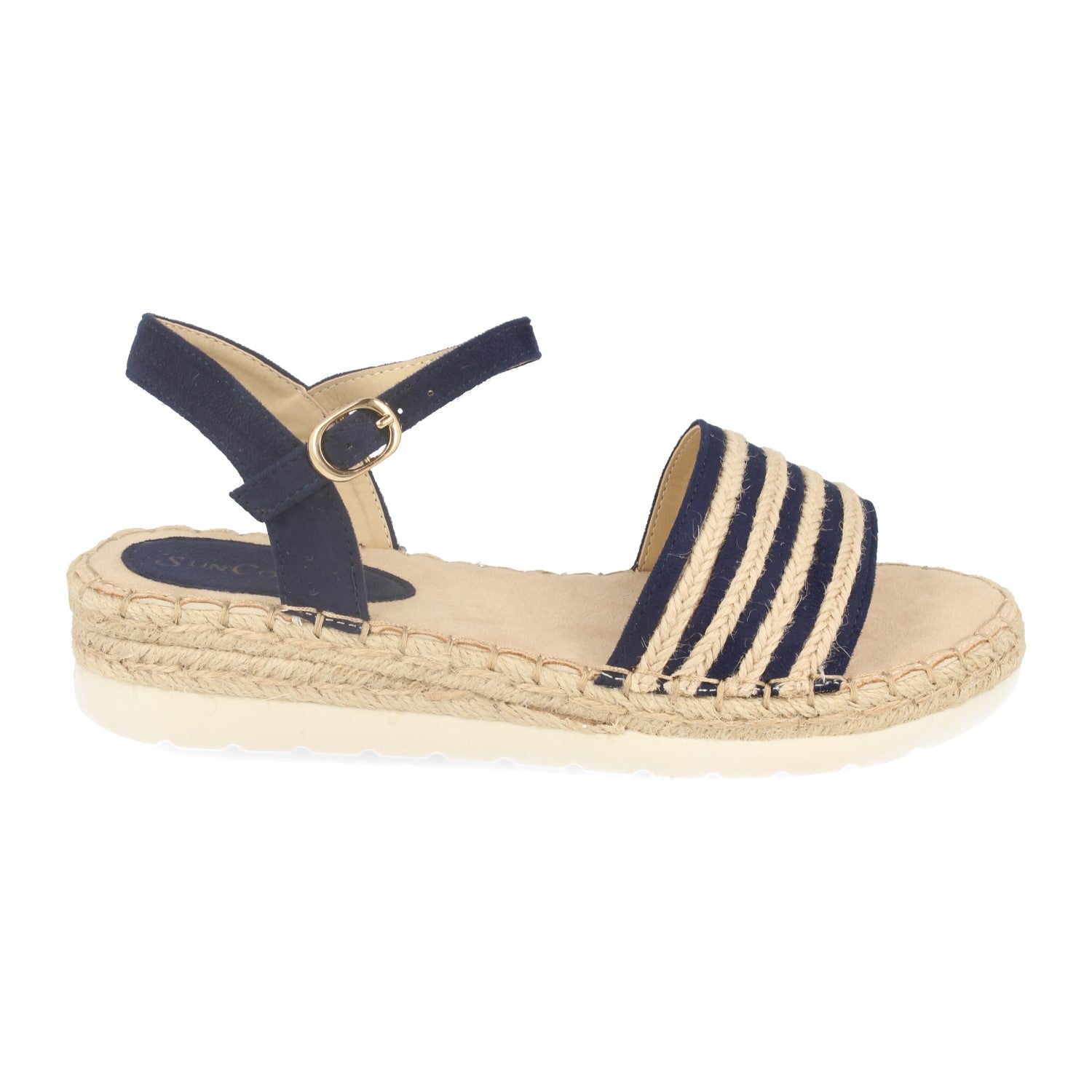 Sandalia Plana con Mini Cuña Estilo Ankle Strap Pala con Tiras de Yute y Cierre de Hebilla Primavera Verano 2020