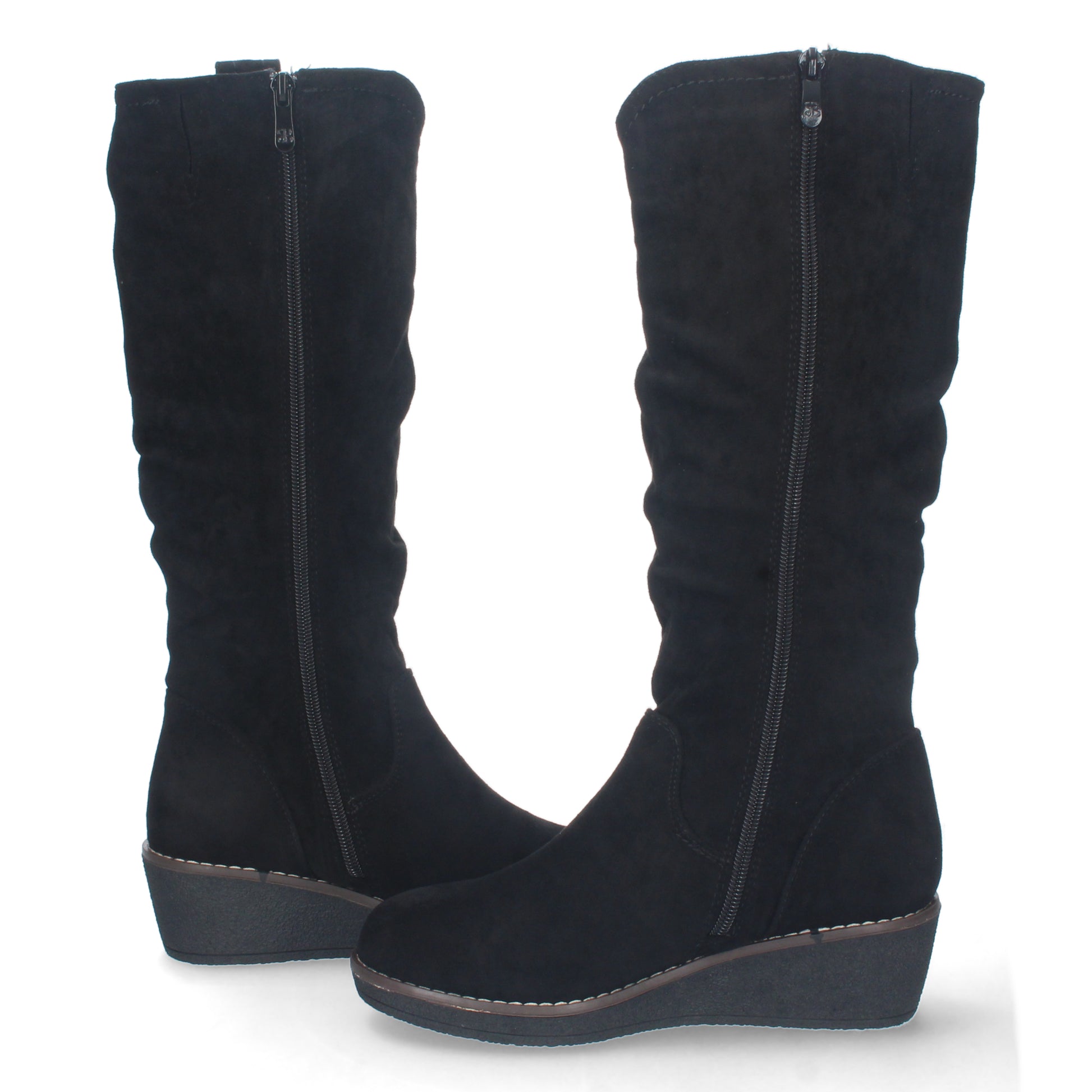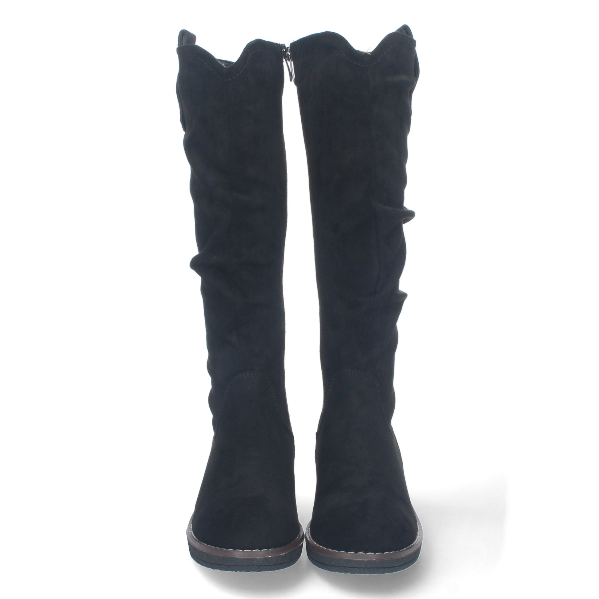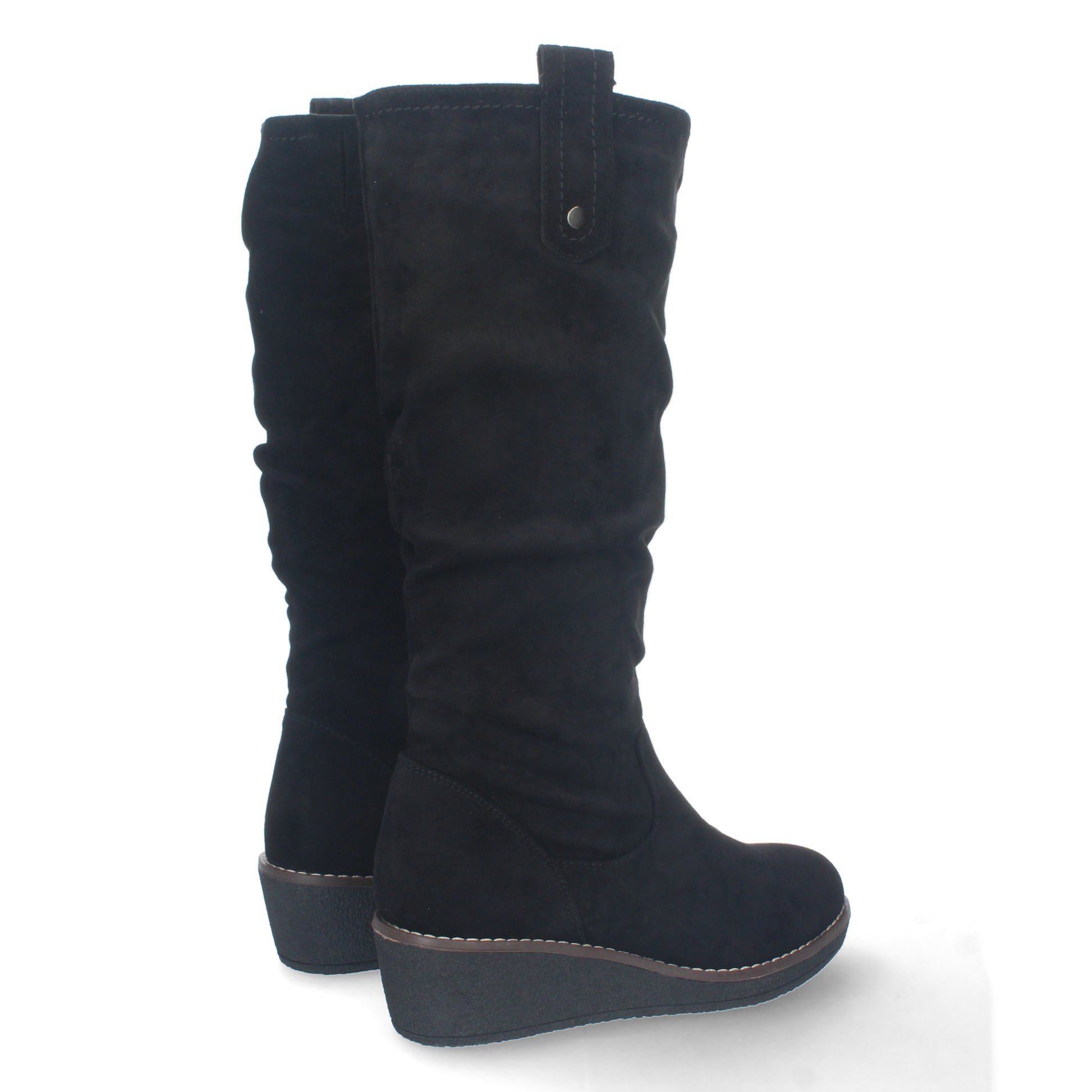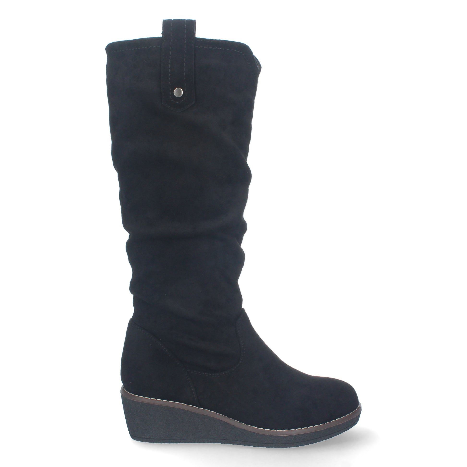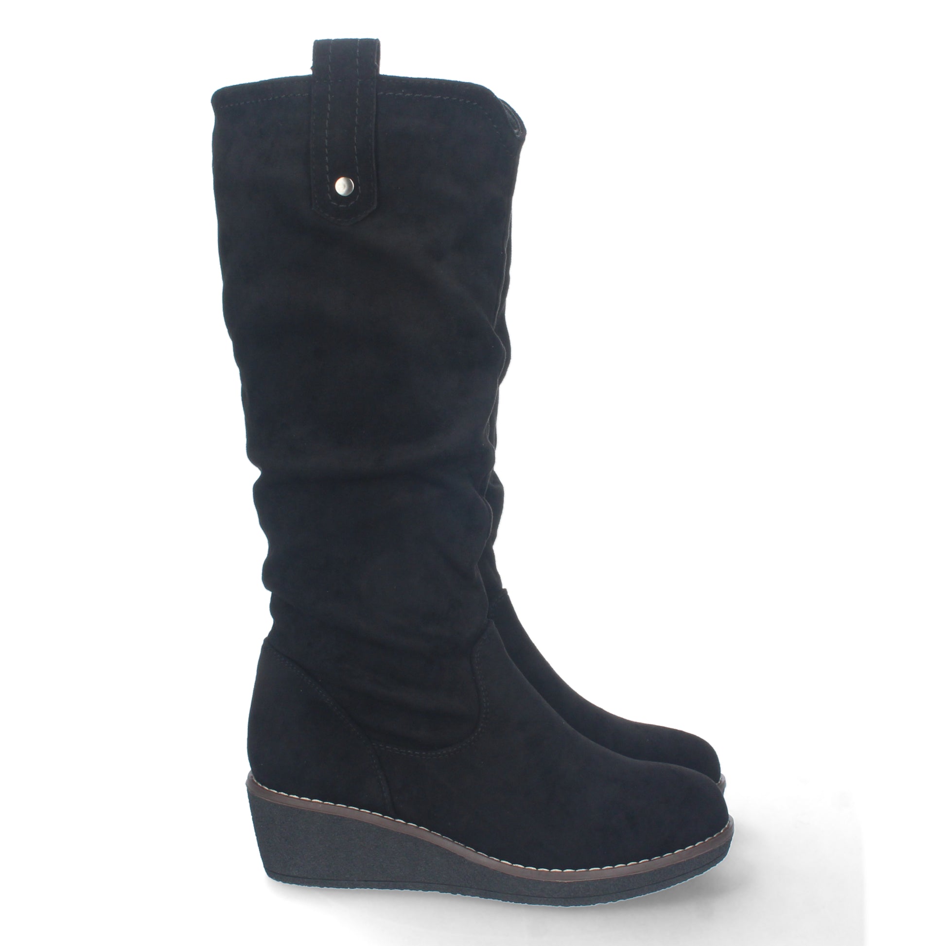 Bota de Cuña para Mujer Comoda con Caña Arrugada Detalle de Tachuela y Cierre de Cremallera Otoño Invierno 2022