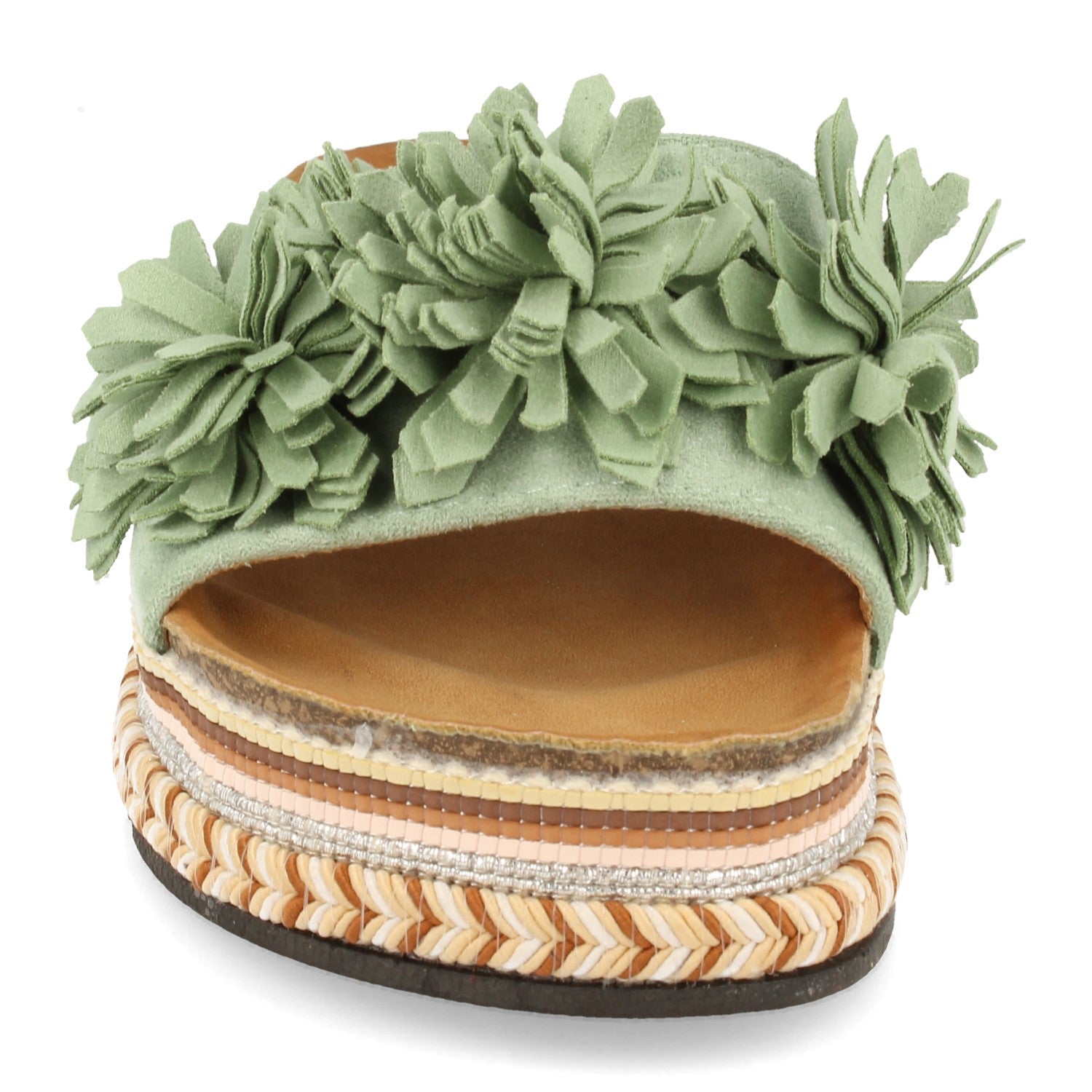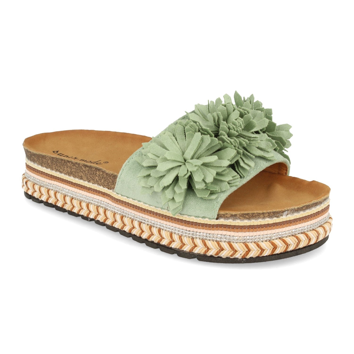 Sandalia de Mujer Pala Simple Decorada con Flores Piso de Bio Yute y Motivos Étnicos Primavera Verano 2020
