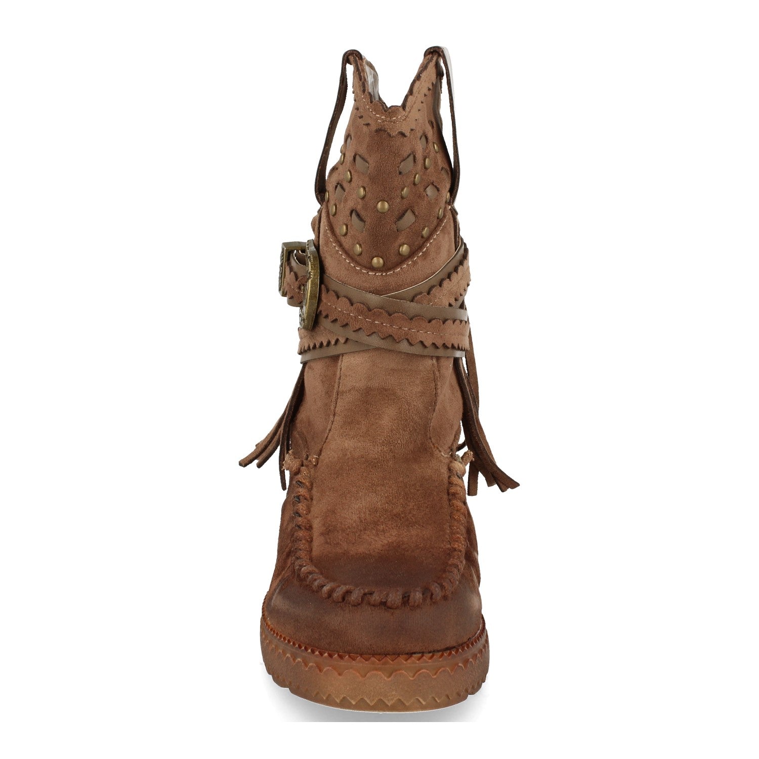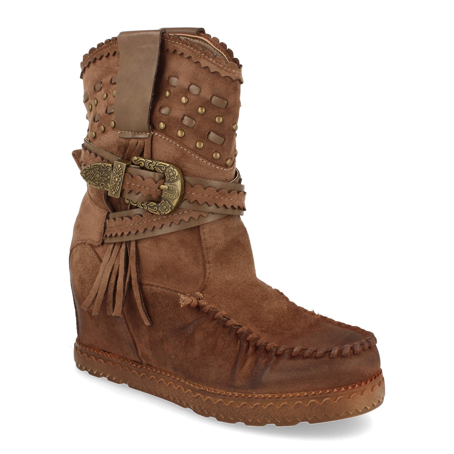 Bota de Estilo Indio Correas con Hebilla Flecos en Caña Cuña Interior y Cierre de Cremallera Otoño Invierno 2020