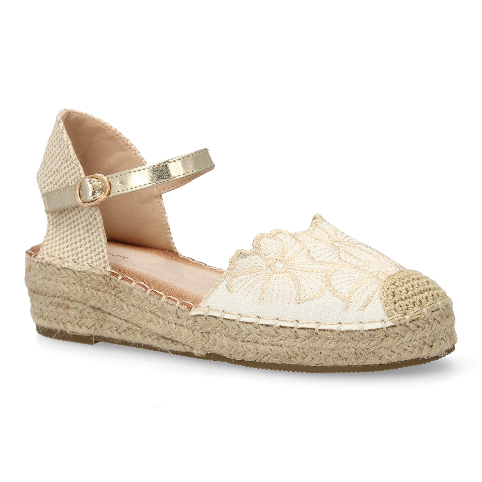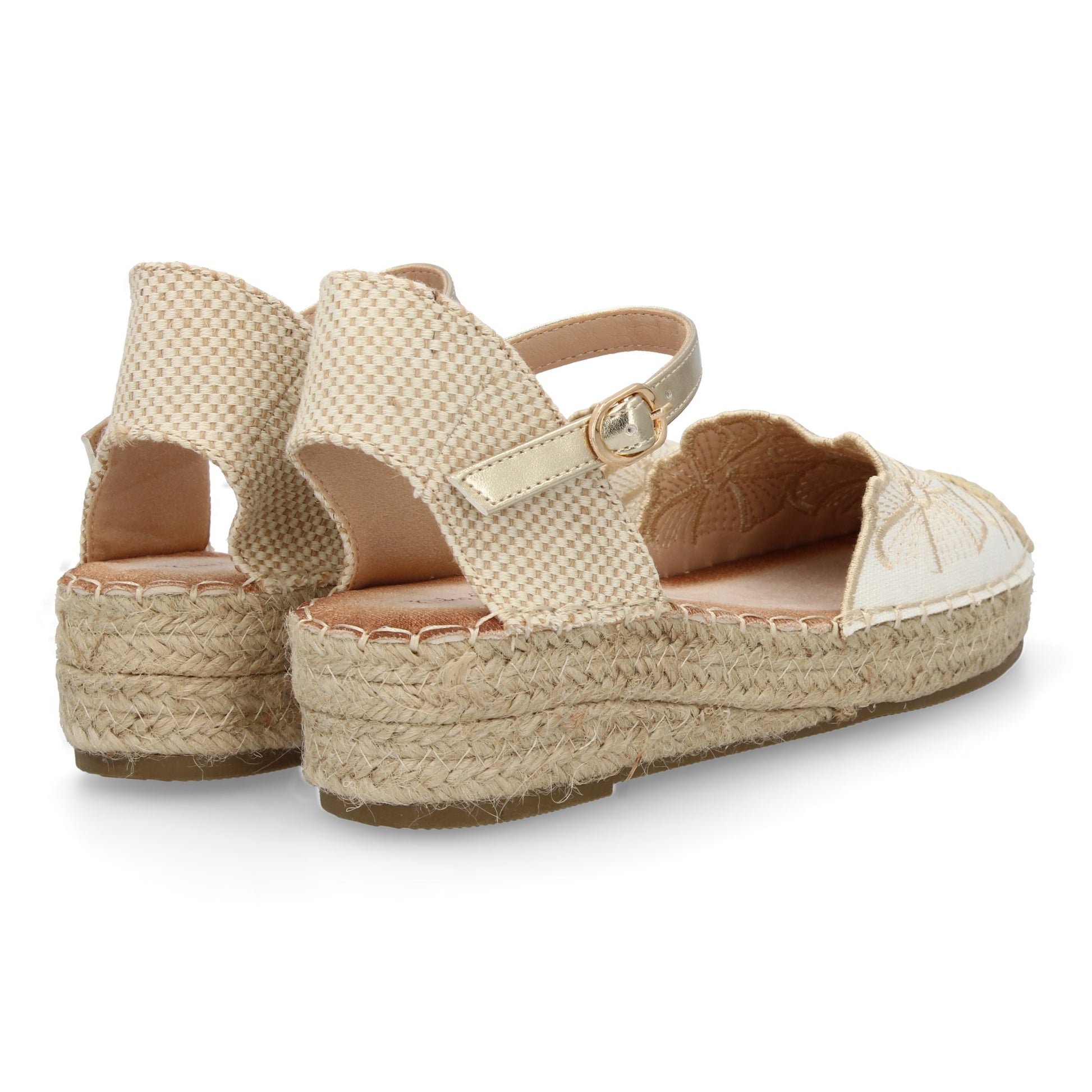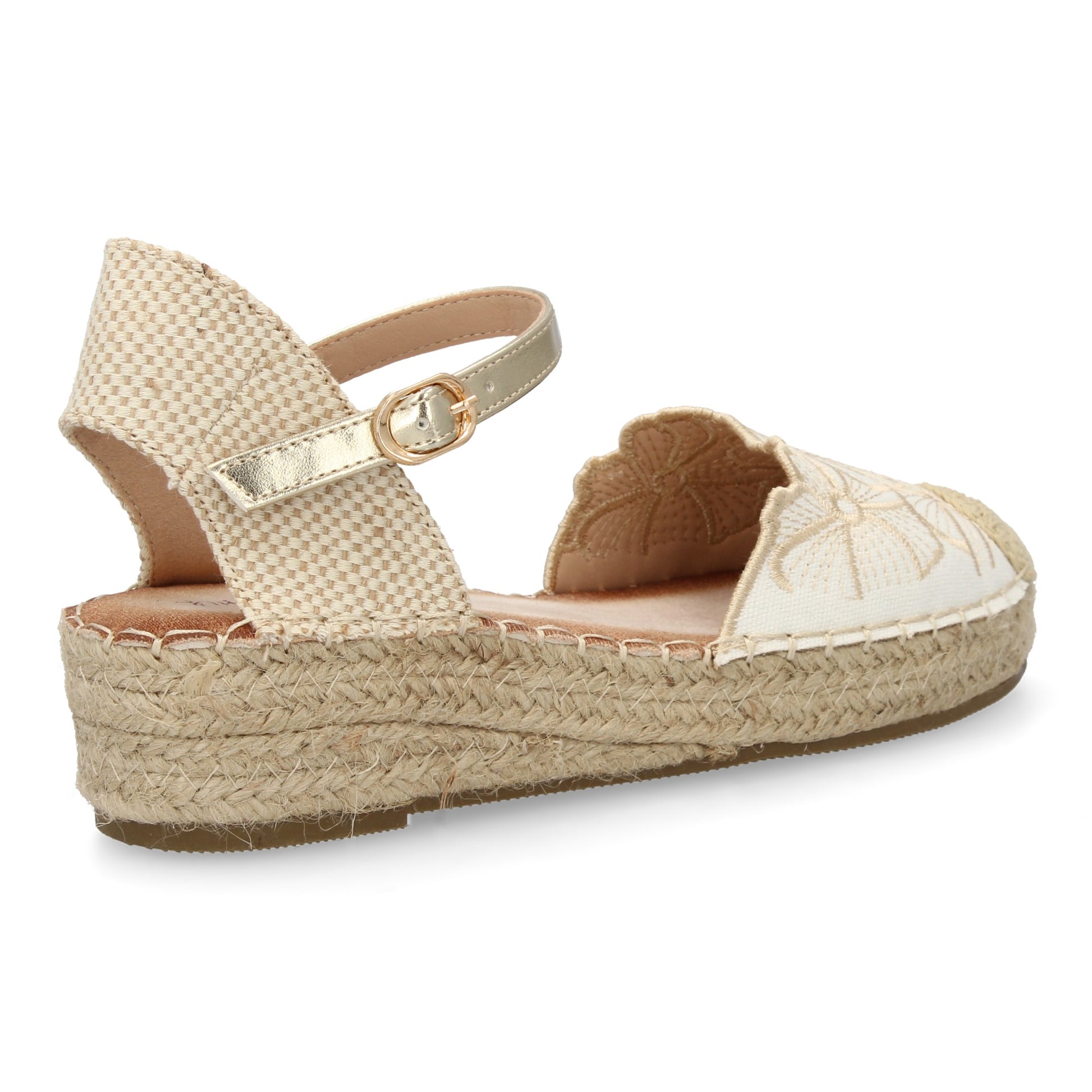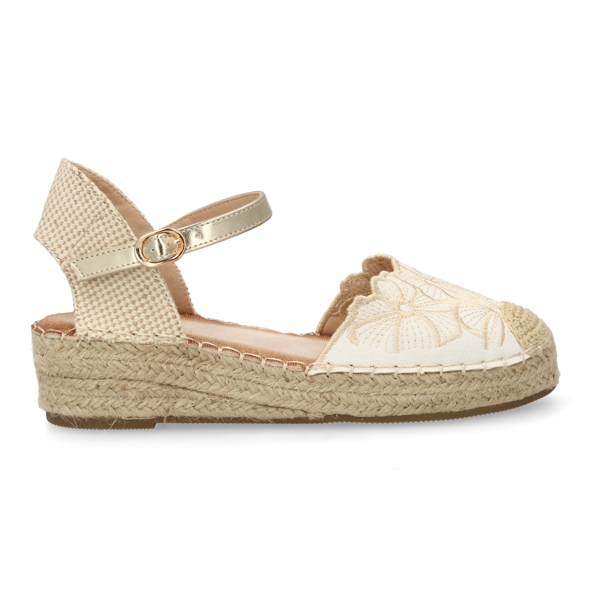 Sandalia de cuña de yute para mujer comodas y elegantes diseño de flores bordadas en la pala y cierre de hebilla ideales para primavera-verano.