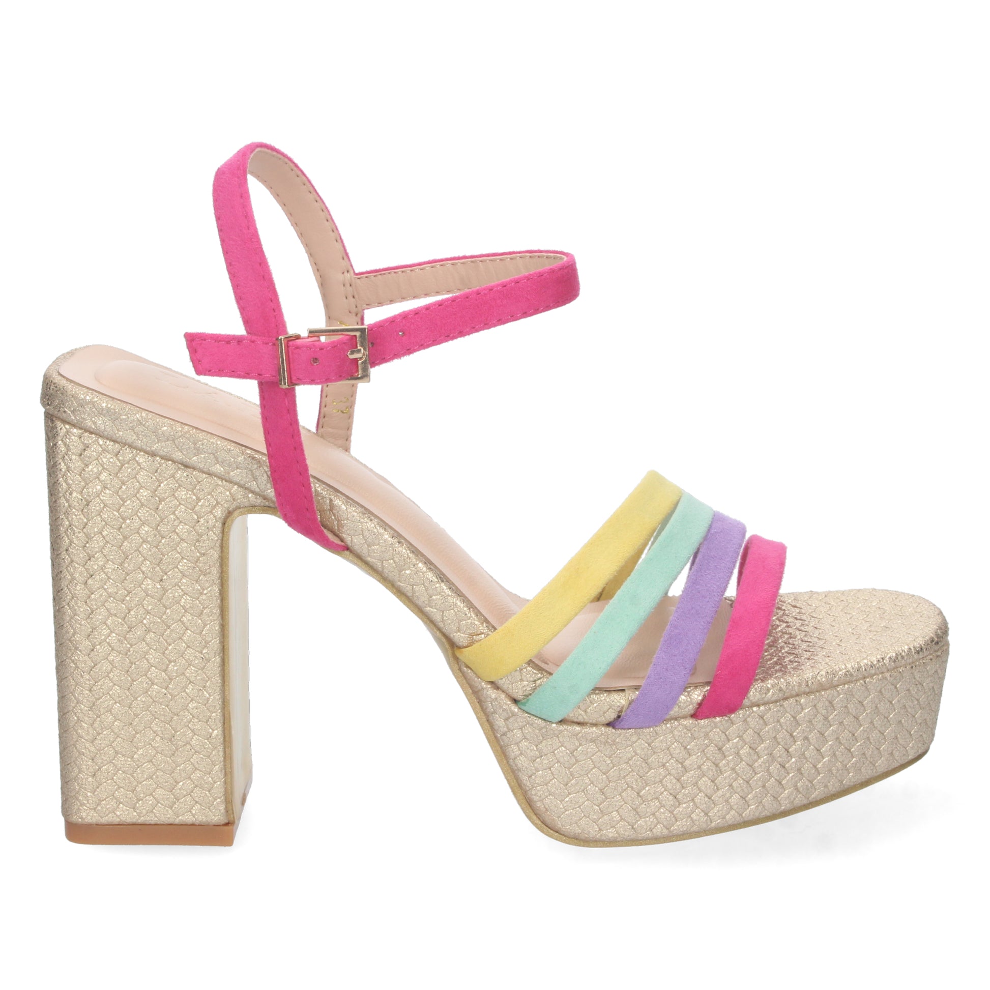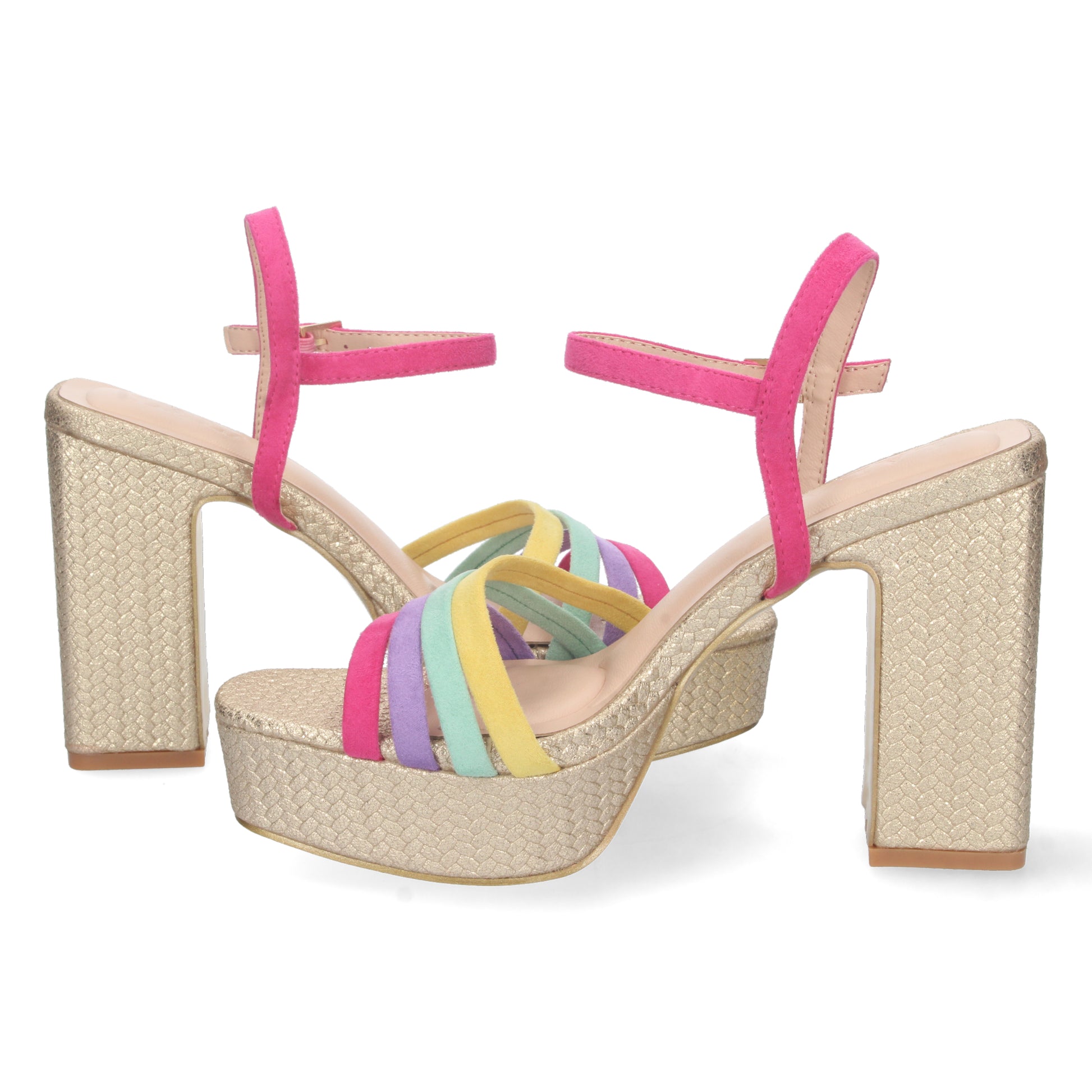 Sandalia de Tacon Alto para Mujer Comodo Estampado Multicolor Palas Finas y Cierre de Hebilla en el Tobillo