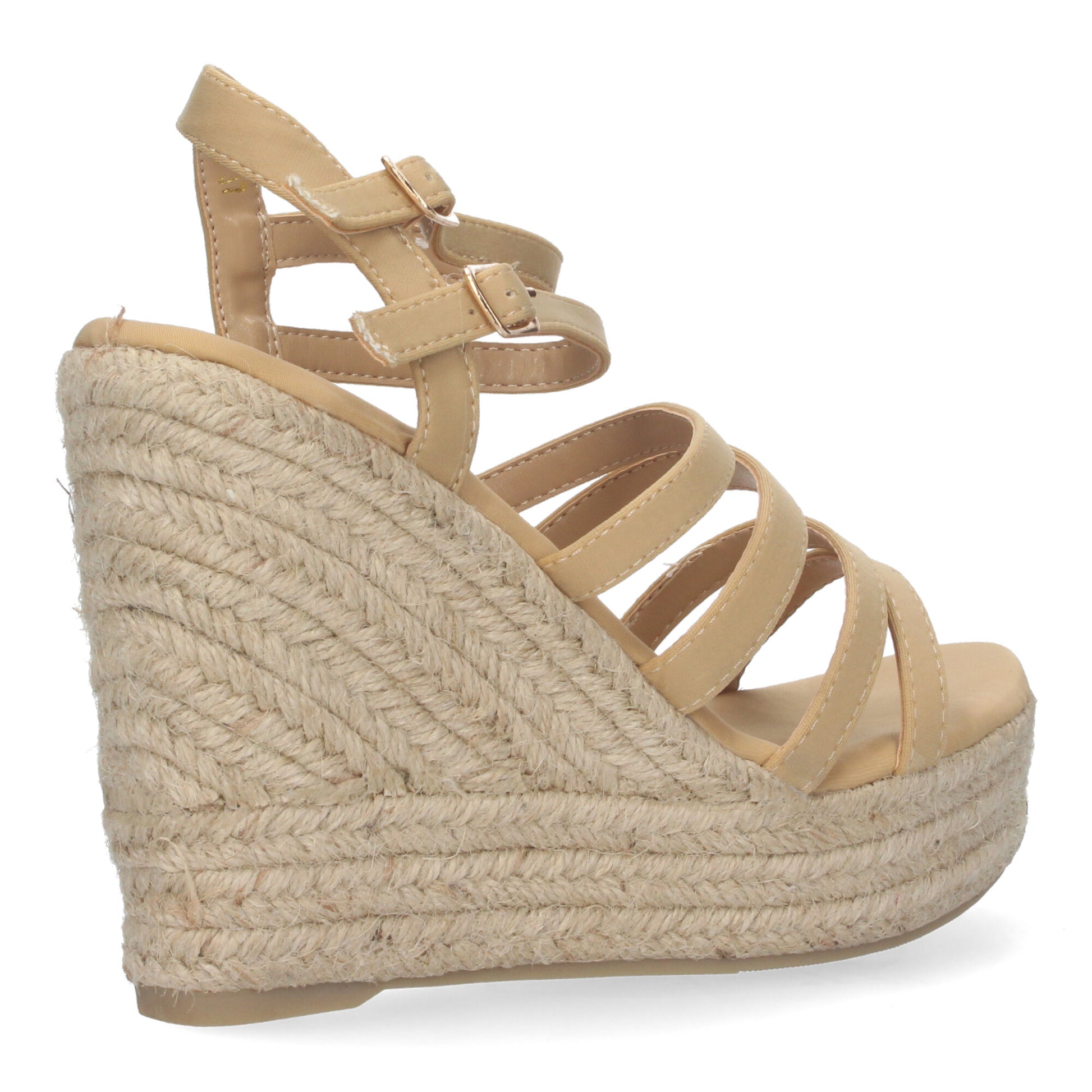 Sandalia de Cuña Alta para Mujer Comoda Forrado de Yute Tiras Finas por el Empeine y Doble Cierre de Hebilla