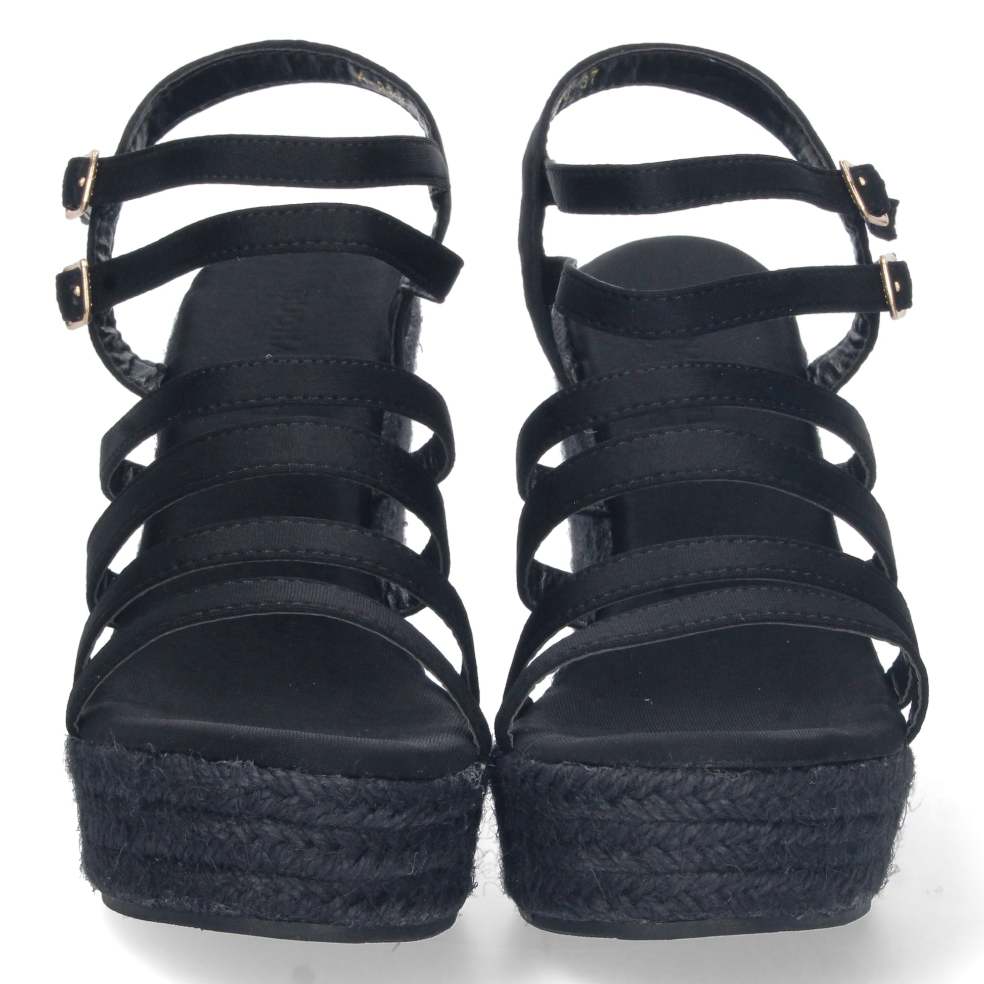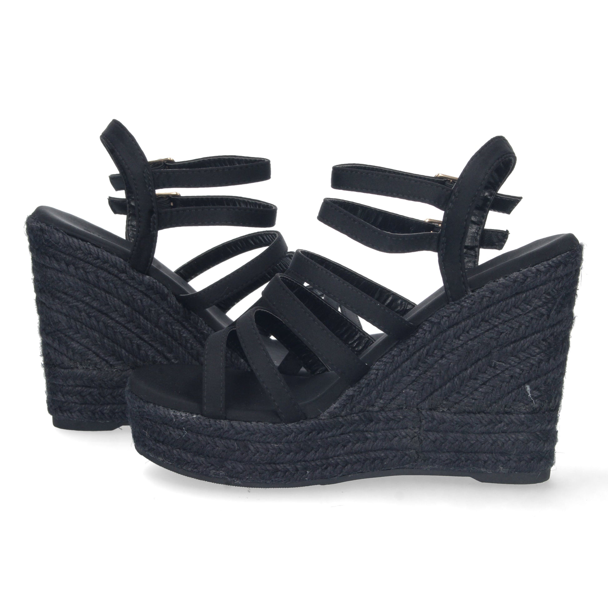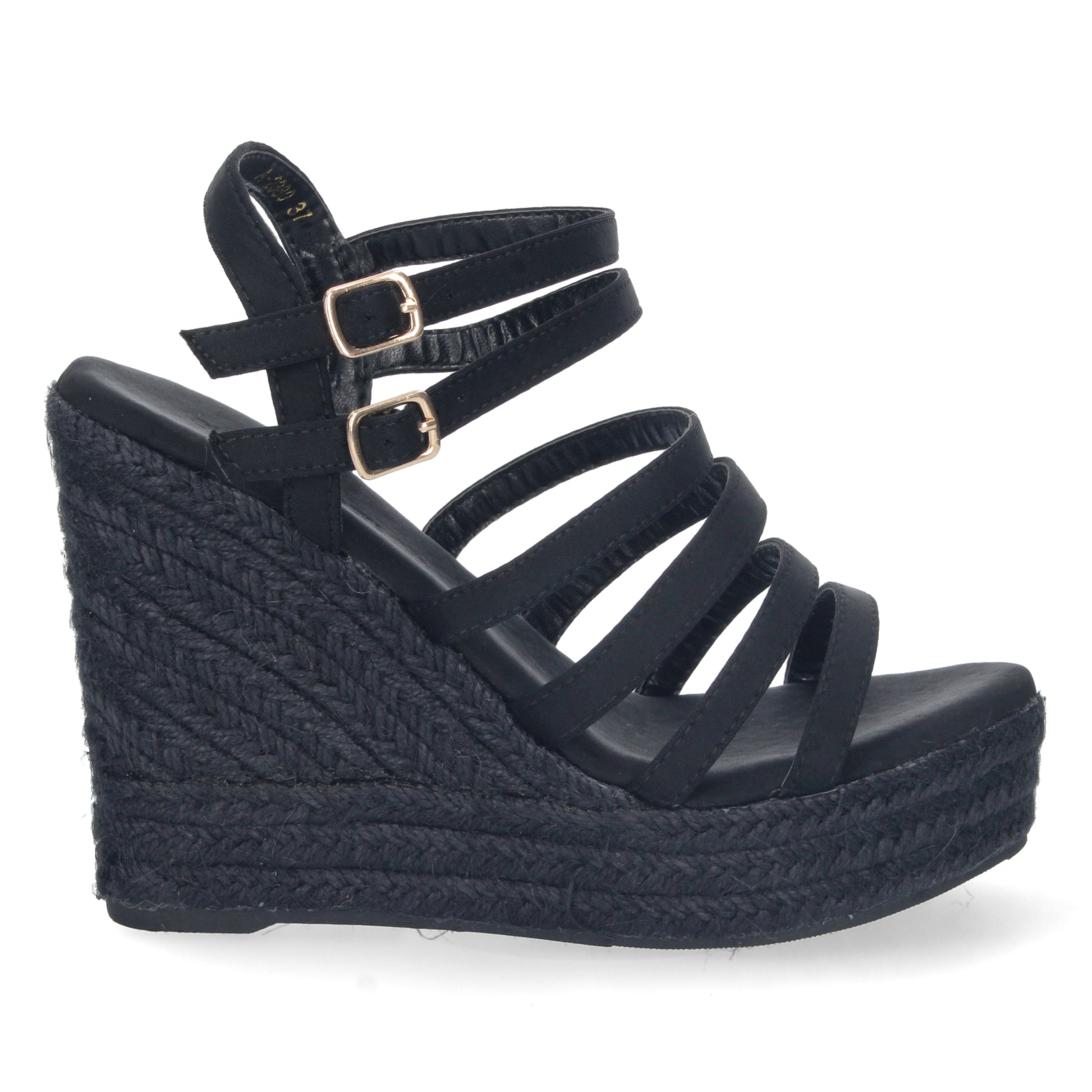 Sandalia de Cuña Alta para Mujer Comoda Forrado de Yute Tiras Finas por el Empeine y Doble Cierre de Hebilla