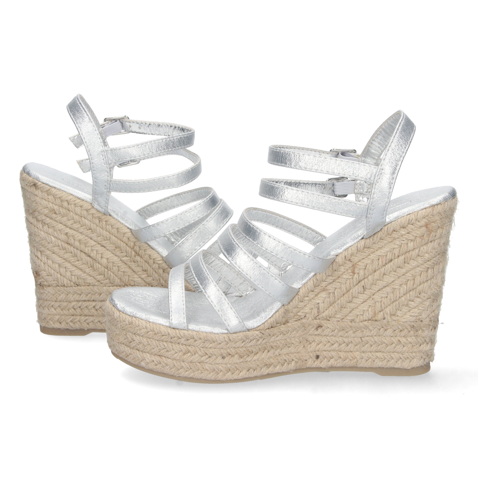 Sandalia de Cuña Alta para Mujer Comoda Forrado de Yute Tiras Finas por el Empeine y Doble Cierre de Hebilla