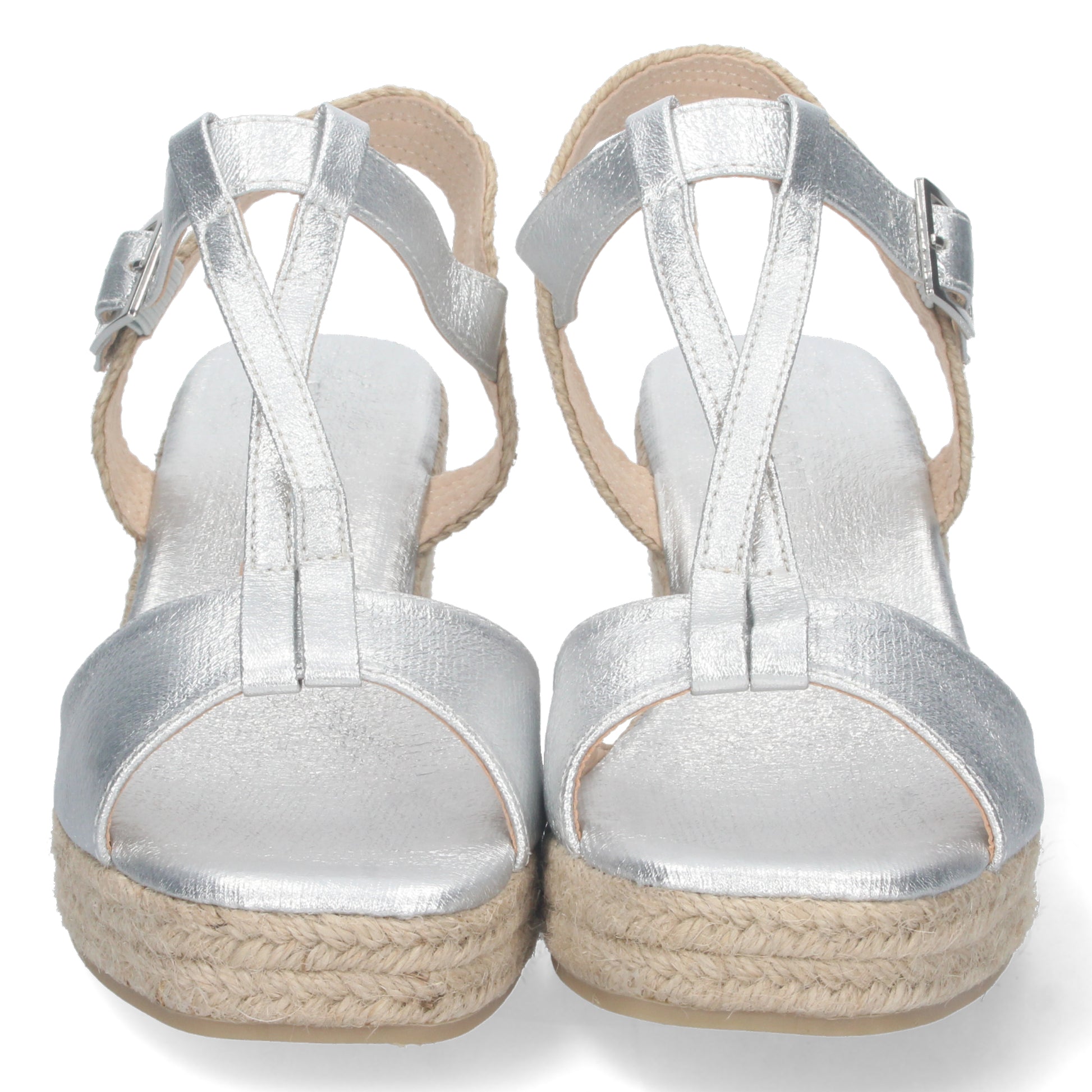 Sandalia de Cuña para Mujer Comoda Forrada de Yute Empeine Cruzado y Cierre de Hebilla