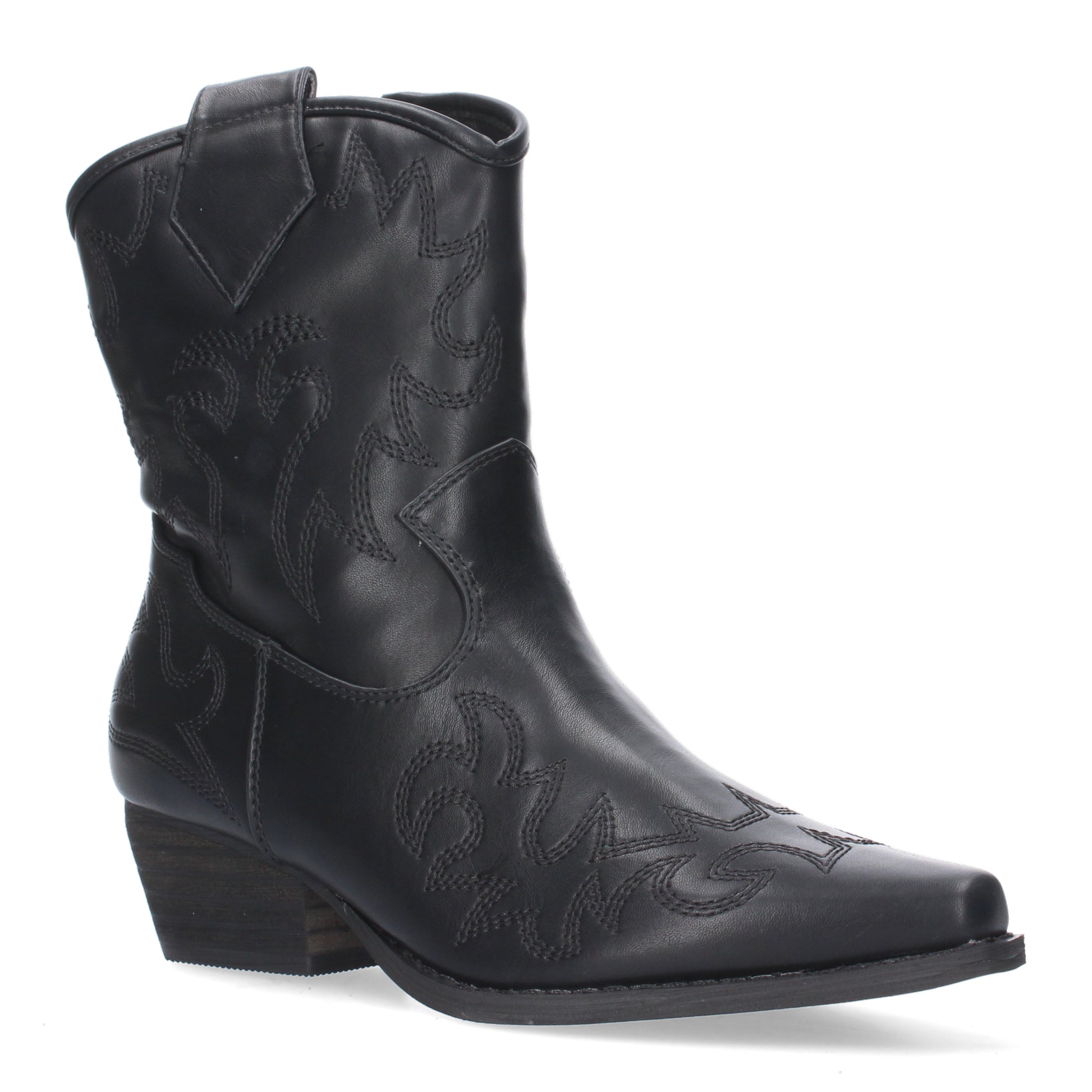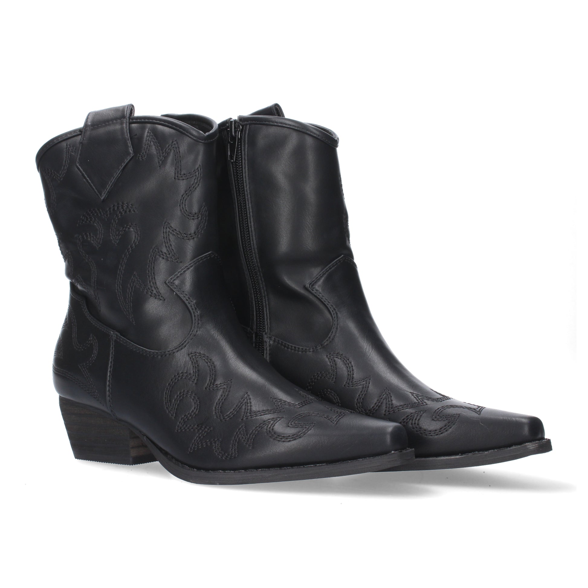 Botin de tacon bajo comodo para mujer bordado en caña y pala.