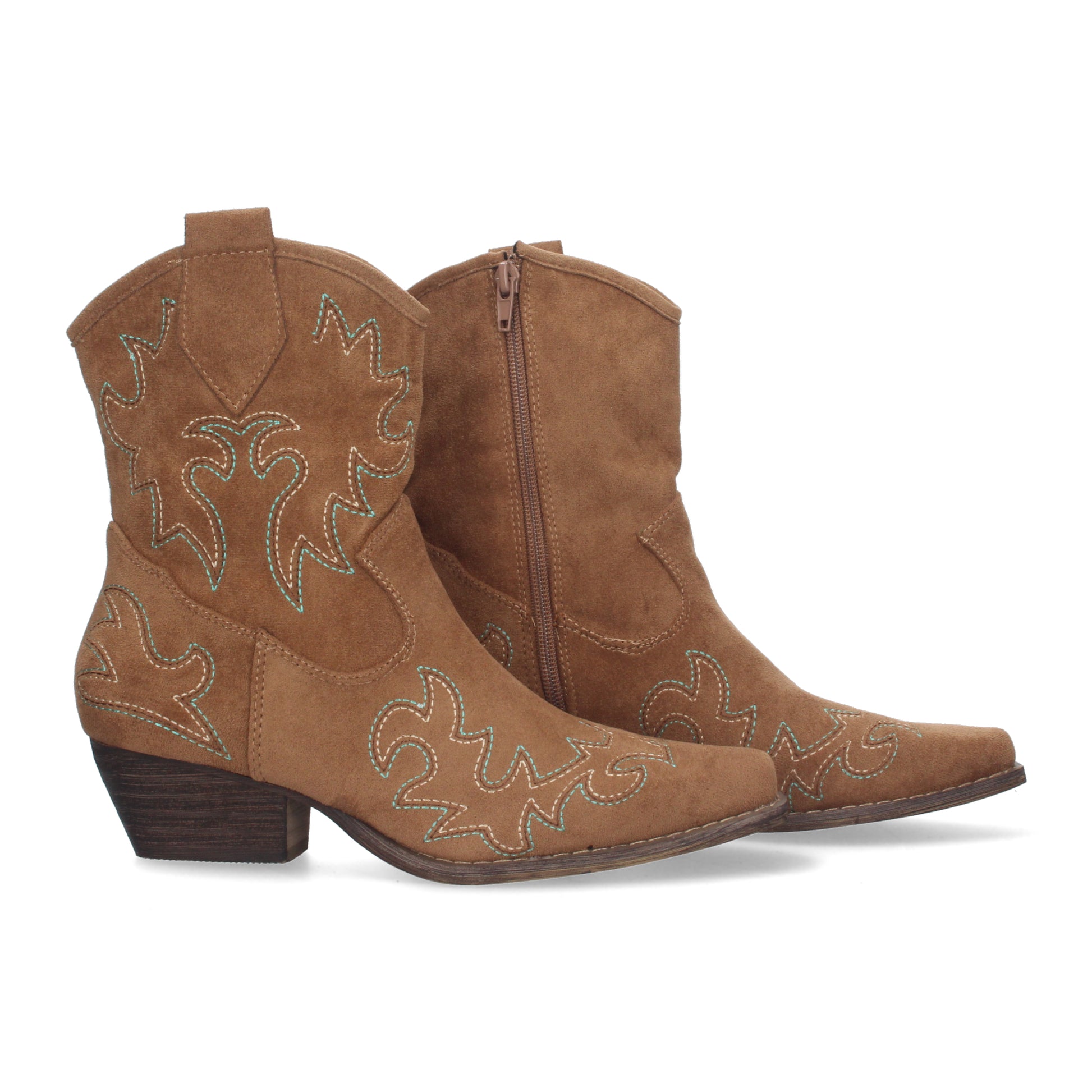 Botínes Camperos con Tacón Comodos Bordado Dorado Caña de 18cm. Cierre de Cremallera
