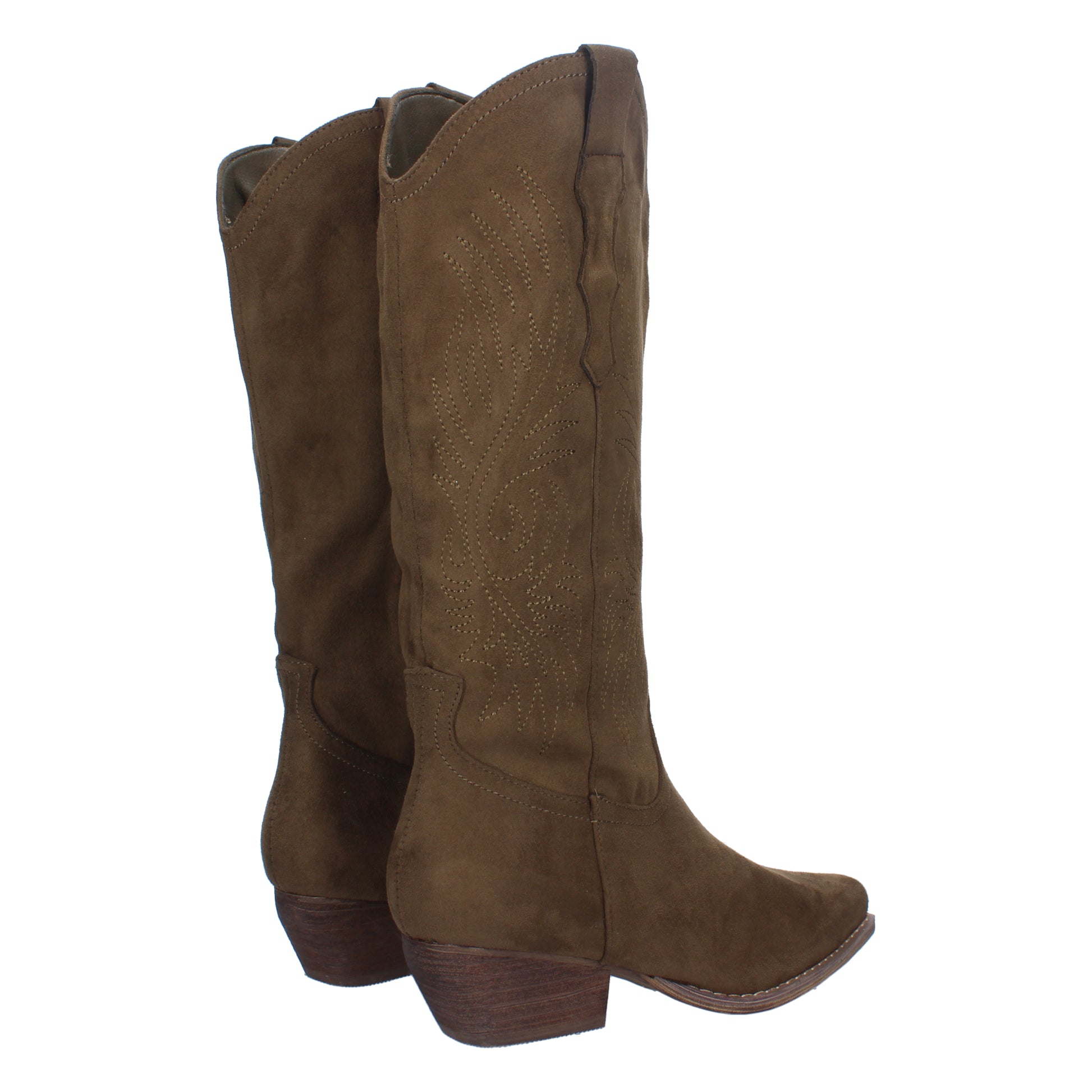 Bota Campera con Tacón Comodas Diseño con Bordado en Caña y Cierre de Cremallera.