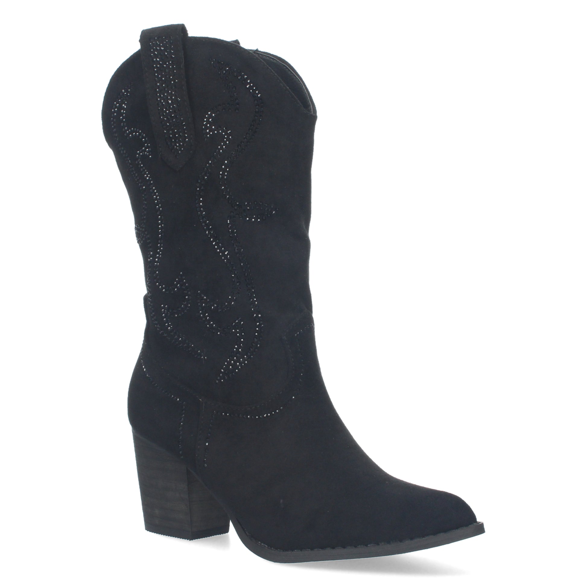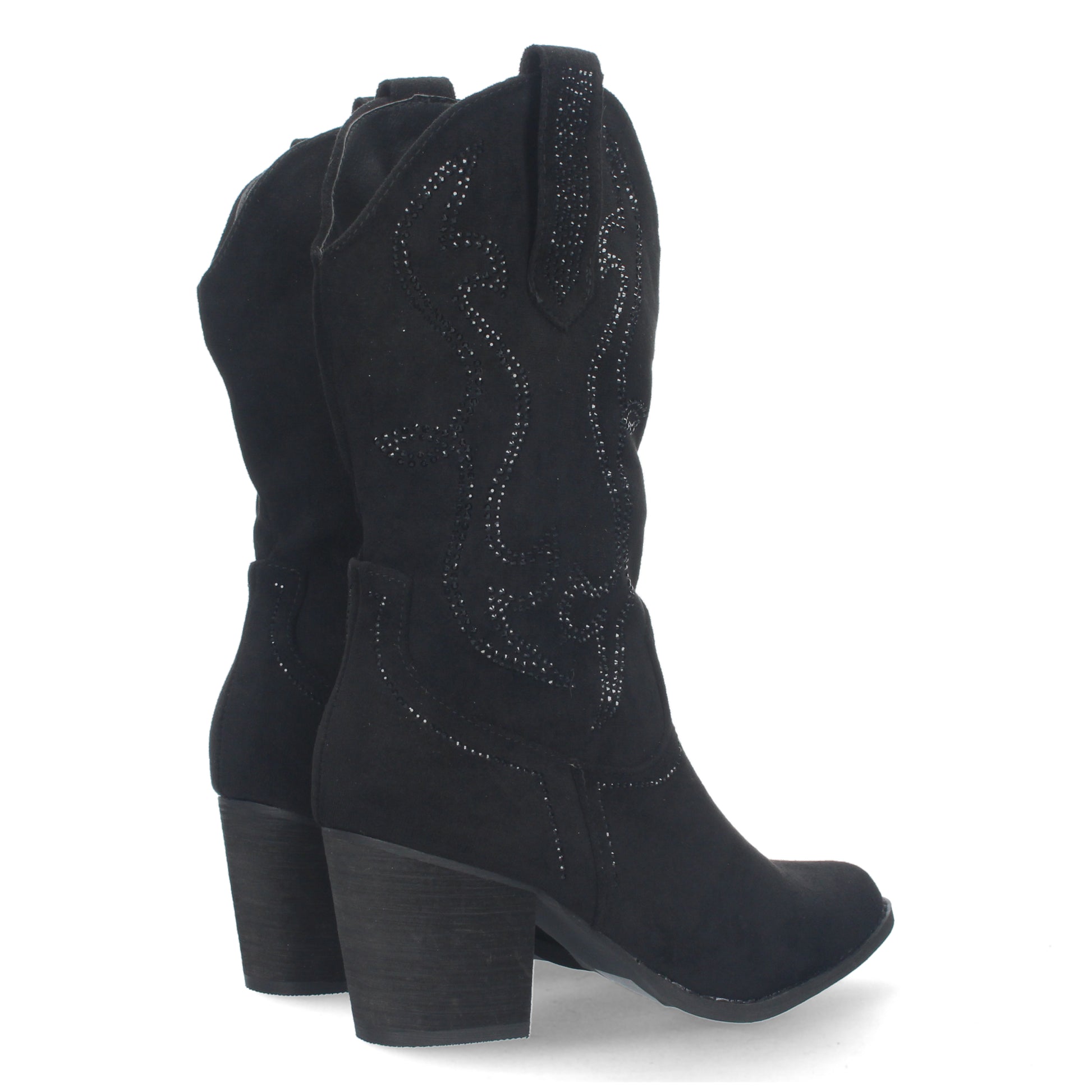 Bota campera con diseño de piedras brillantes en la caña estilo vaquero modernizado y cierre de cremallera. La caña mide 25cm.