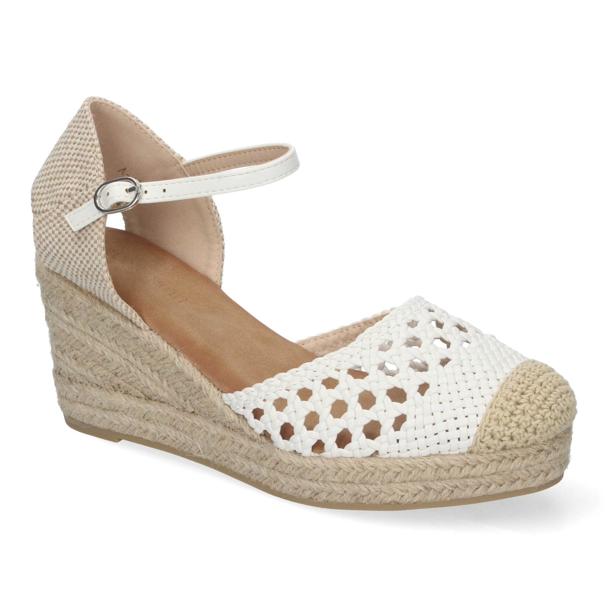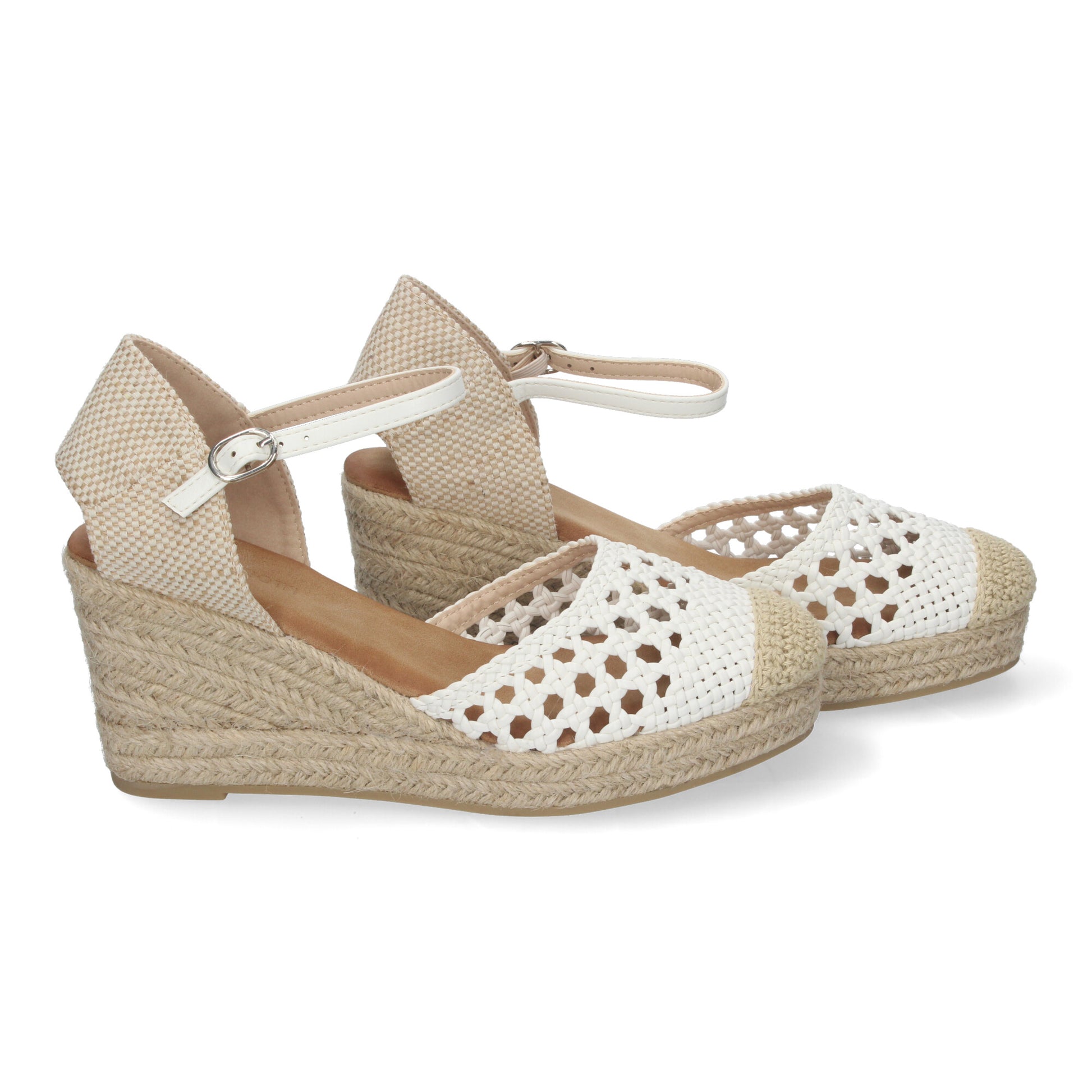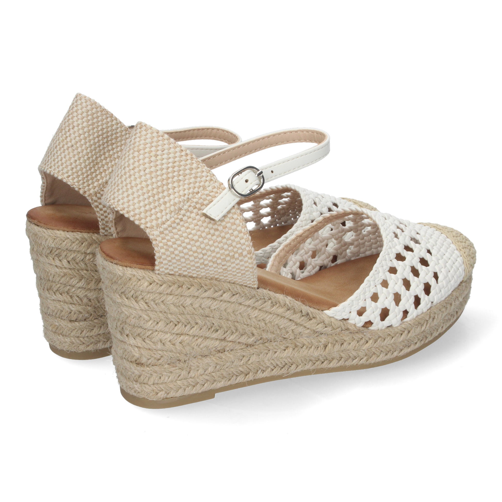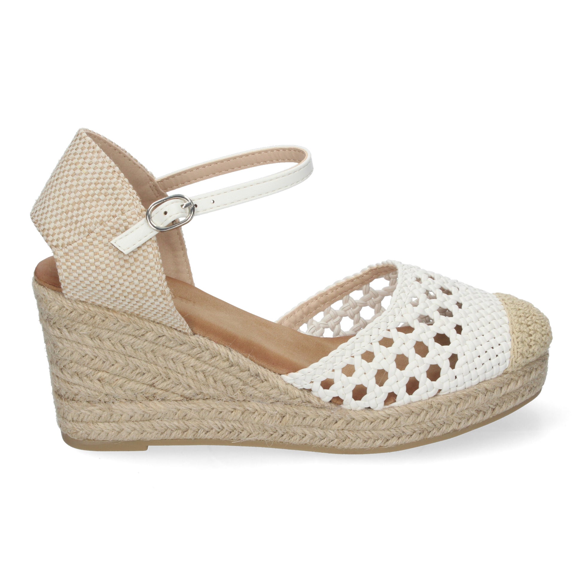 Sandalia de Cuña para Mujer Cómodas y Elegantes Forrada de Yute con Pala Calada y Cierre de Hebilla.