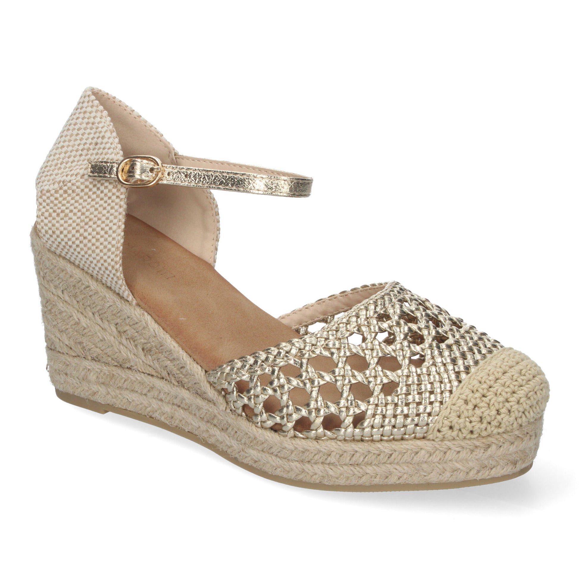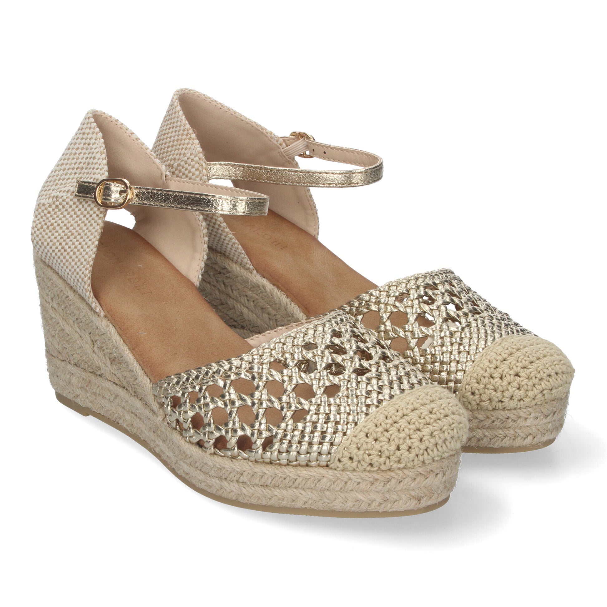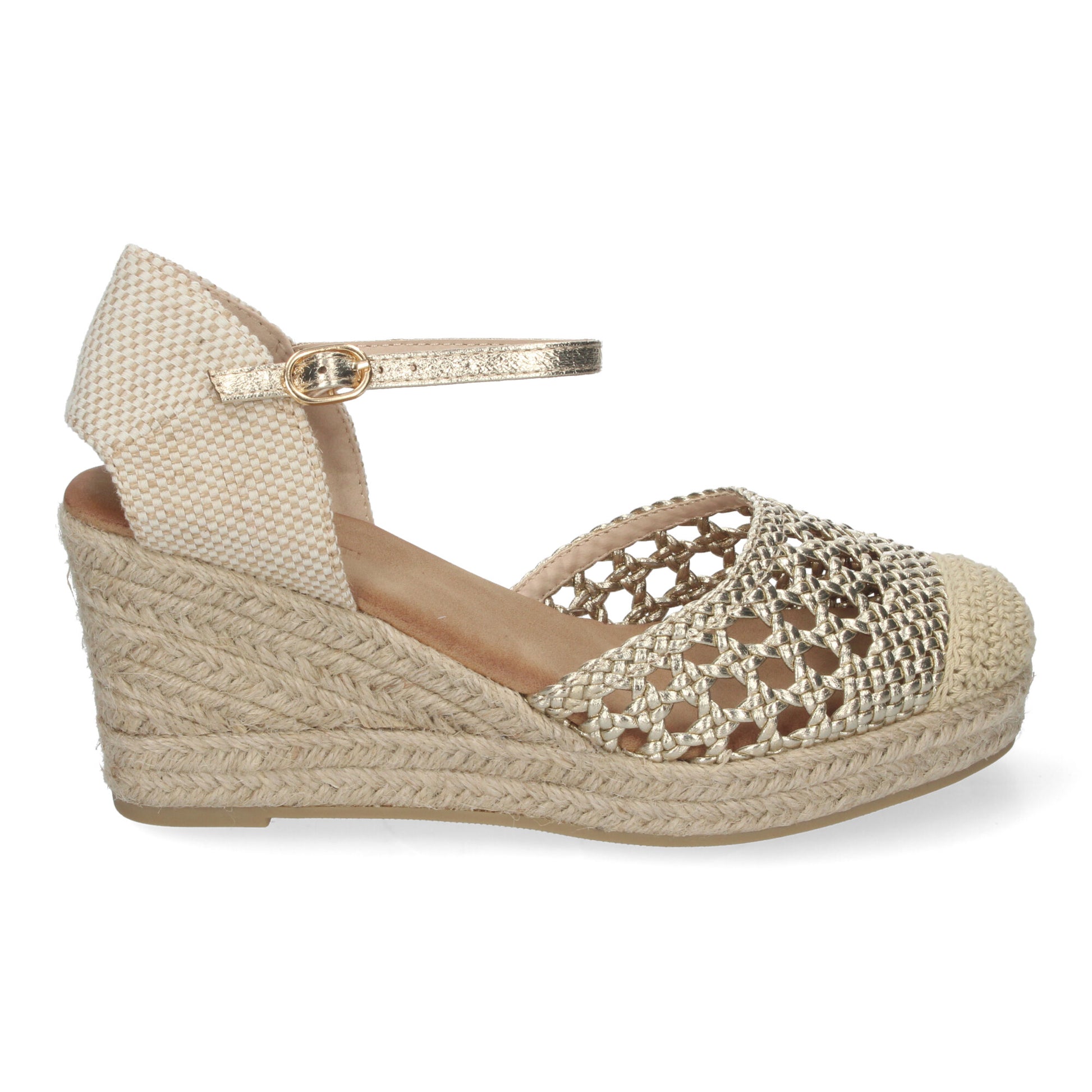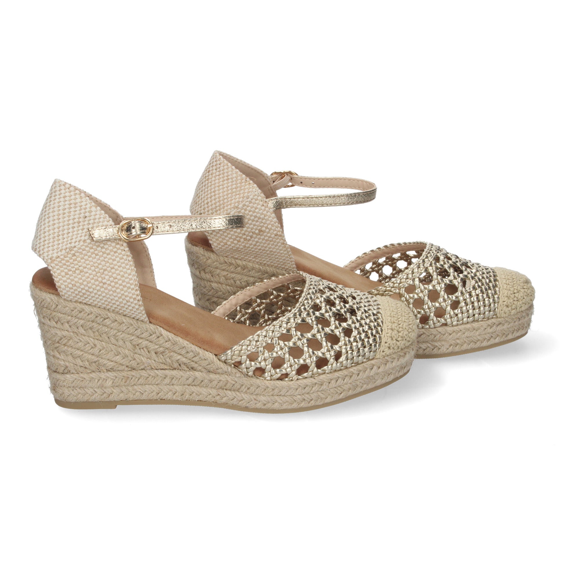 Sandalia de Cuña para Mujer Cómodas y Elegantes Forrada de Yute con Pala Calada y Cierre de Hebilla.