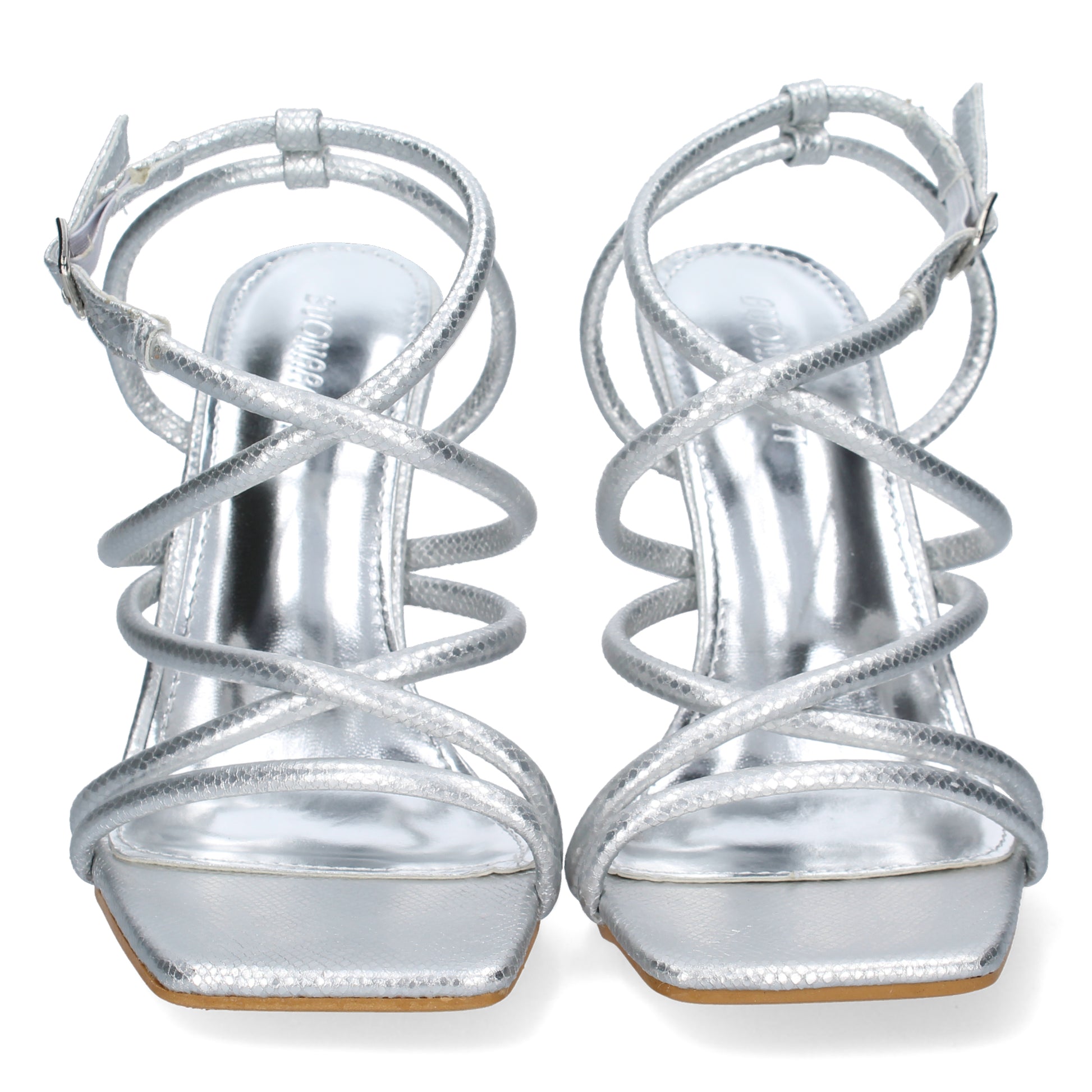 Sandalia de Tacon Fino para Mujer Comodo con Tiras Finas Cruzadas y Cierre de Hebilla