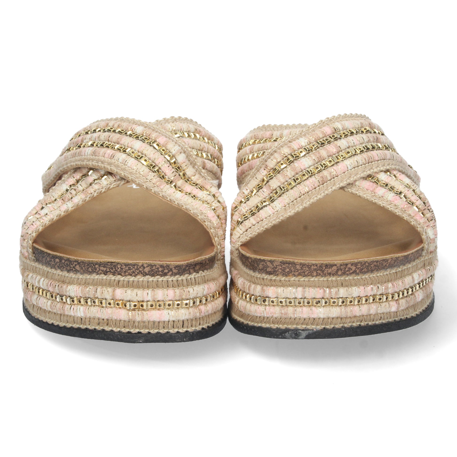 Sandalia Plana para Mujer con Planta Bio Bordado Multicolor y Palas Cruzadas Primavera Verano 2022