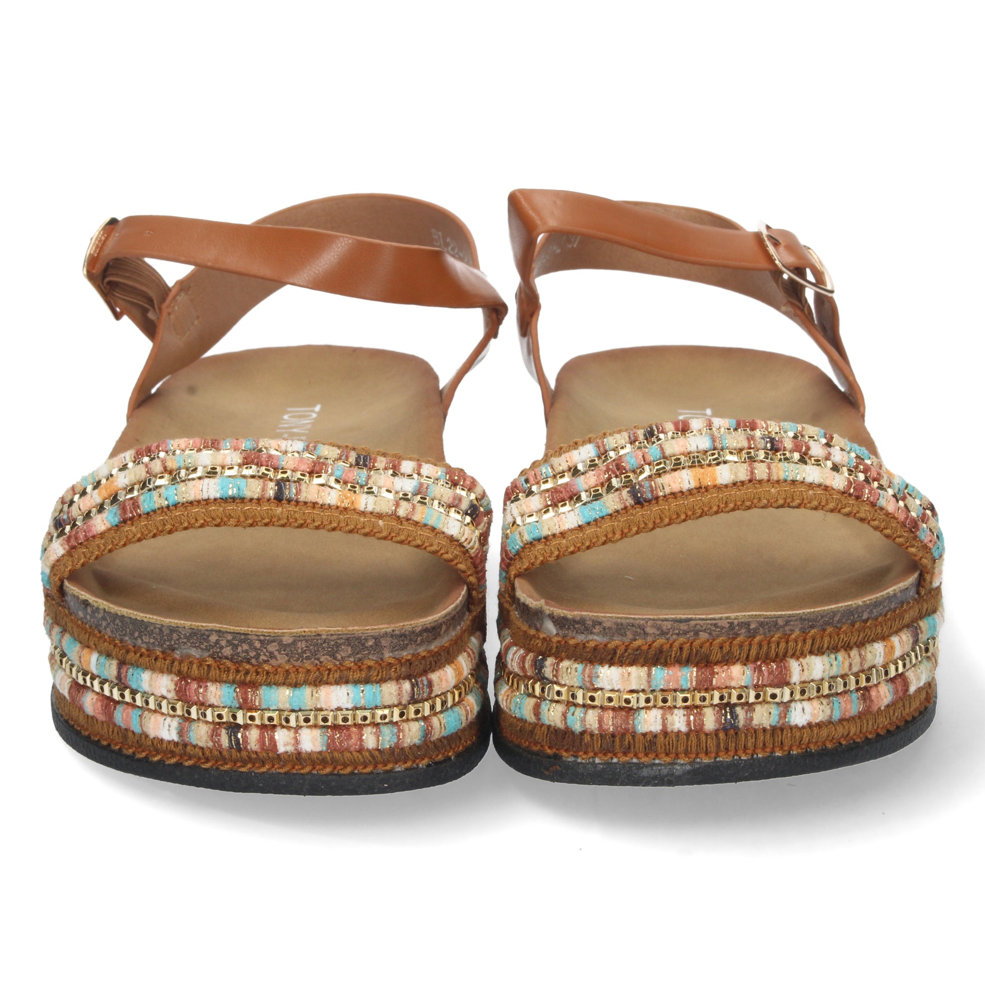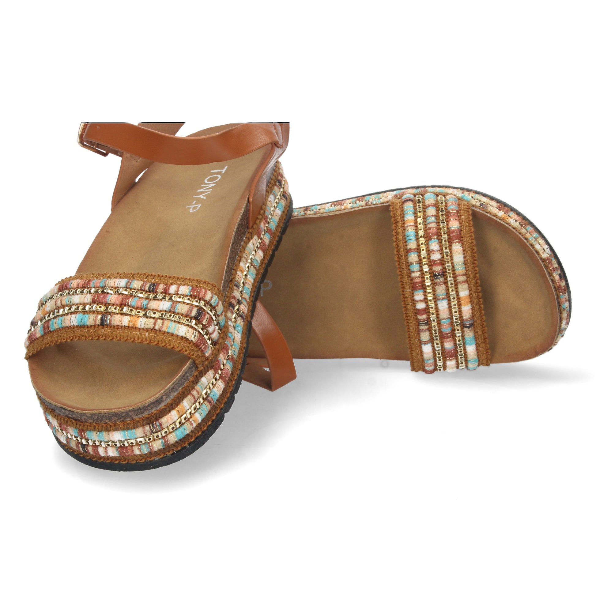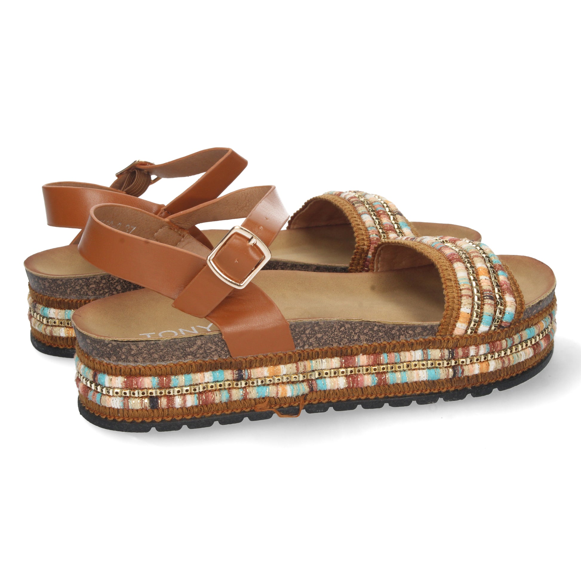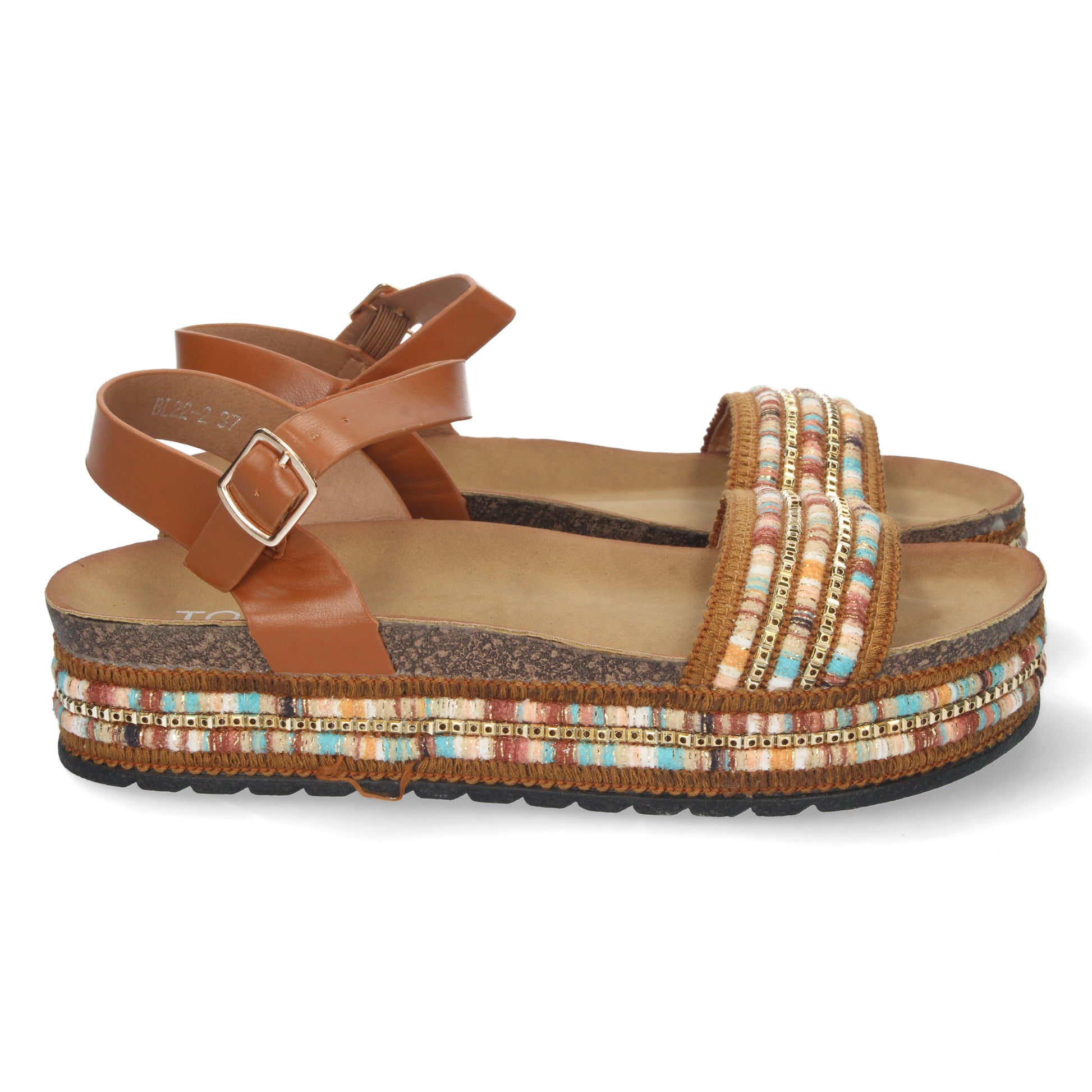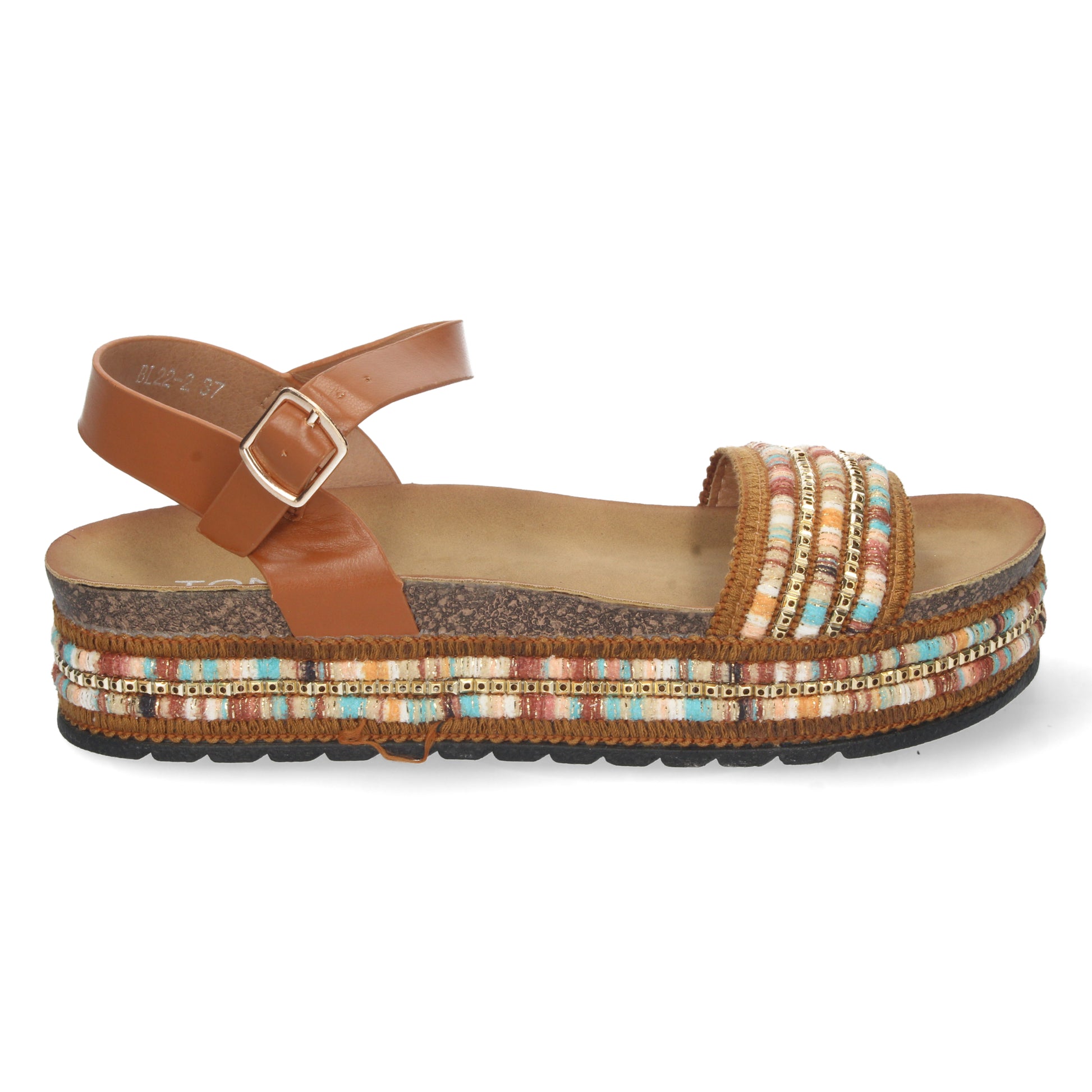 Sandalia Plana para Mujer con Planta Bio Bordado Multicolor y Cierre de Hebilla Primavera Verano 2022