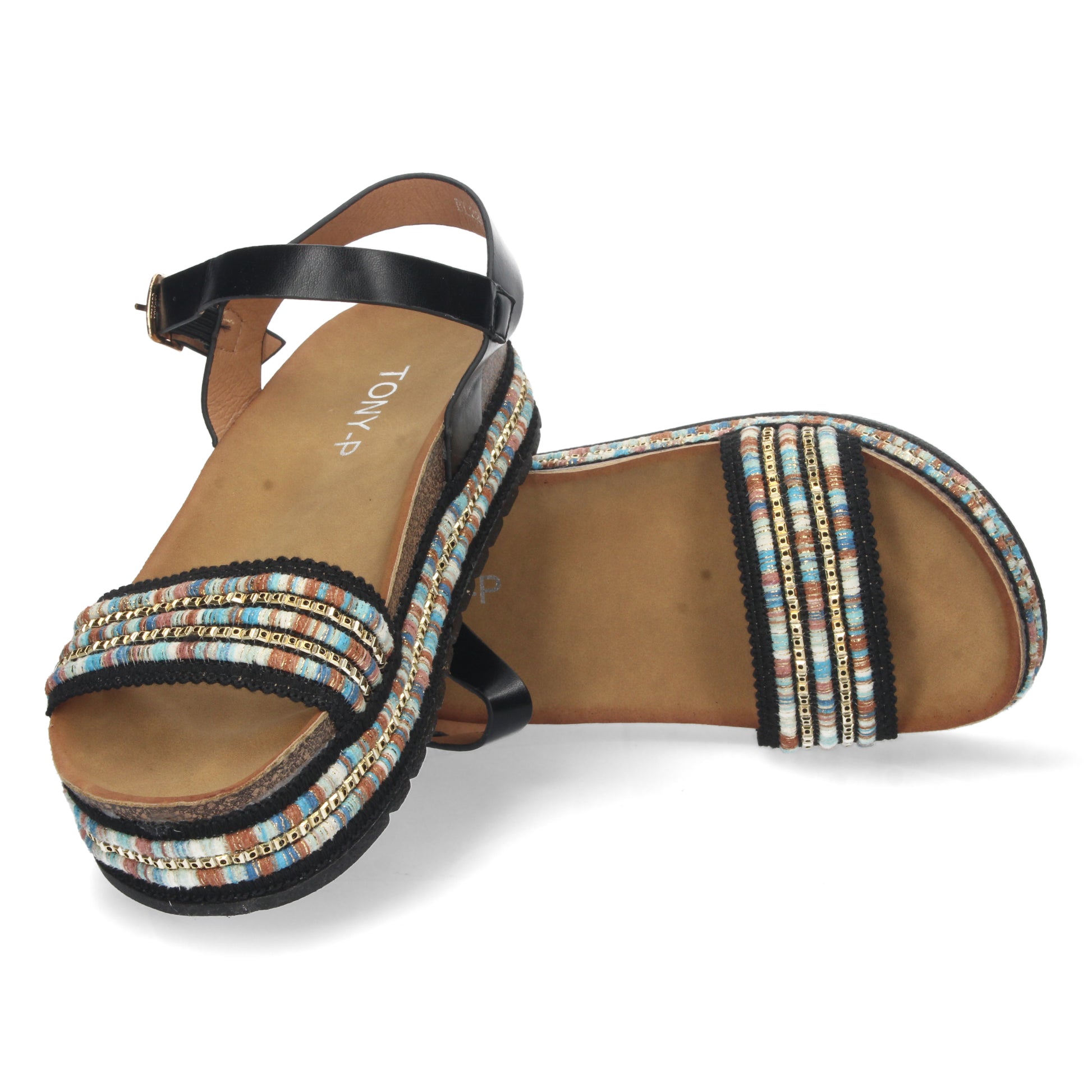 Sandalia Plana para Mujer con Planta Bio Bordado Multicolor y Cierre de Hebilla Primavera Verano 2022