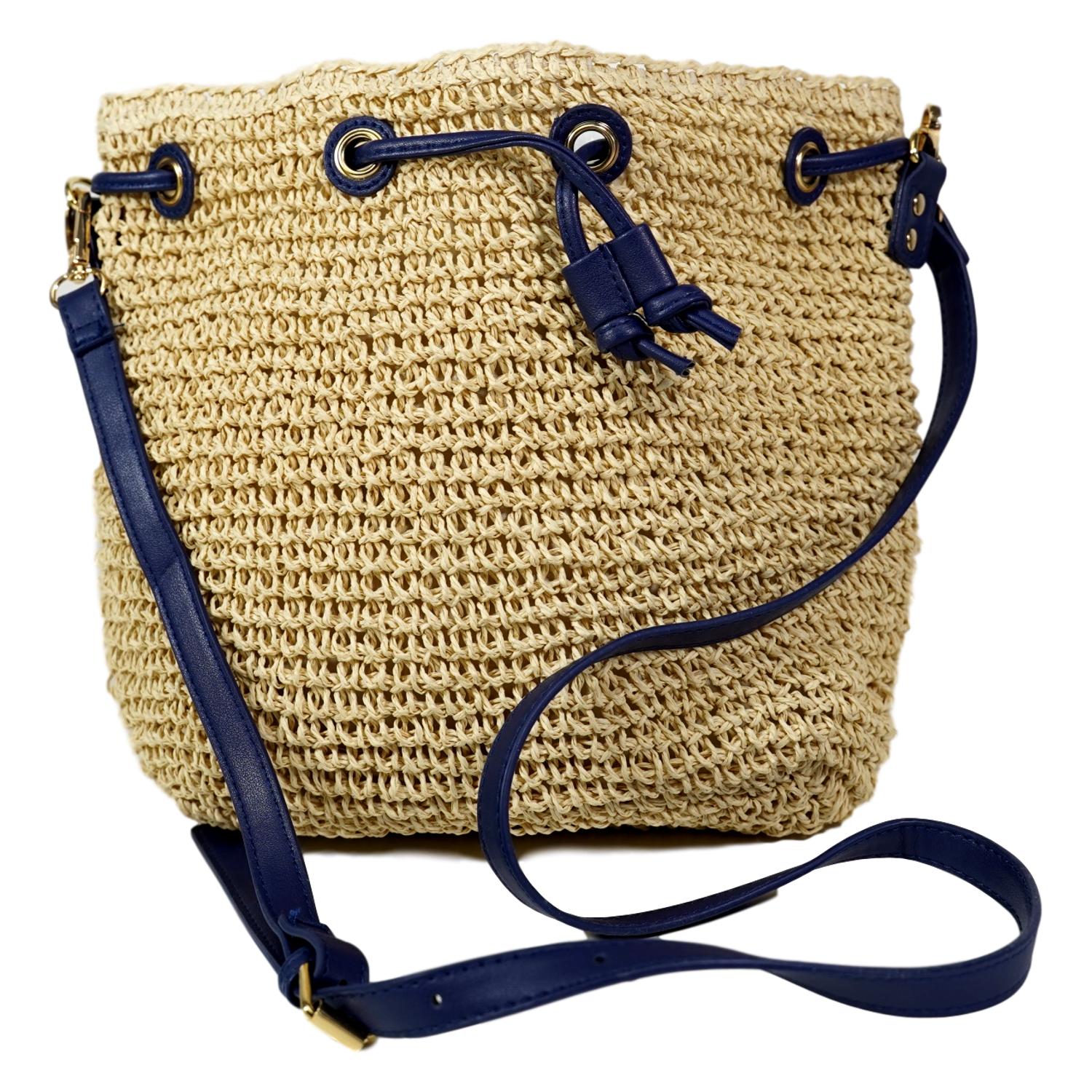Bolso de Hombro para Mujer Echo de Rafia con Cierre de Cordon Asa que se puede Quitar Ajustable Primavera Verano 2020