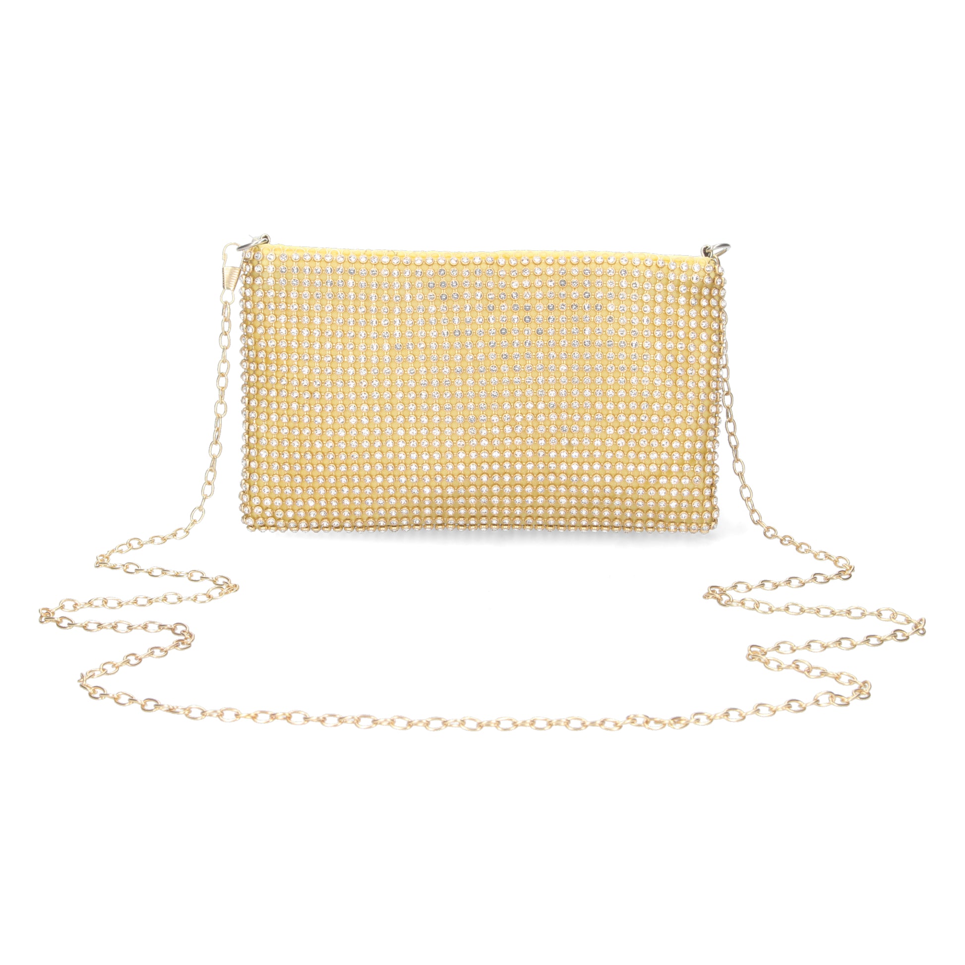 Bolso de Mano para Mujer con Cadena Extraible para Convertirse en Bandolera Decorado con Piedras de Strass y Cierre de Cremallera Otoño Invierno 2022