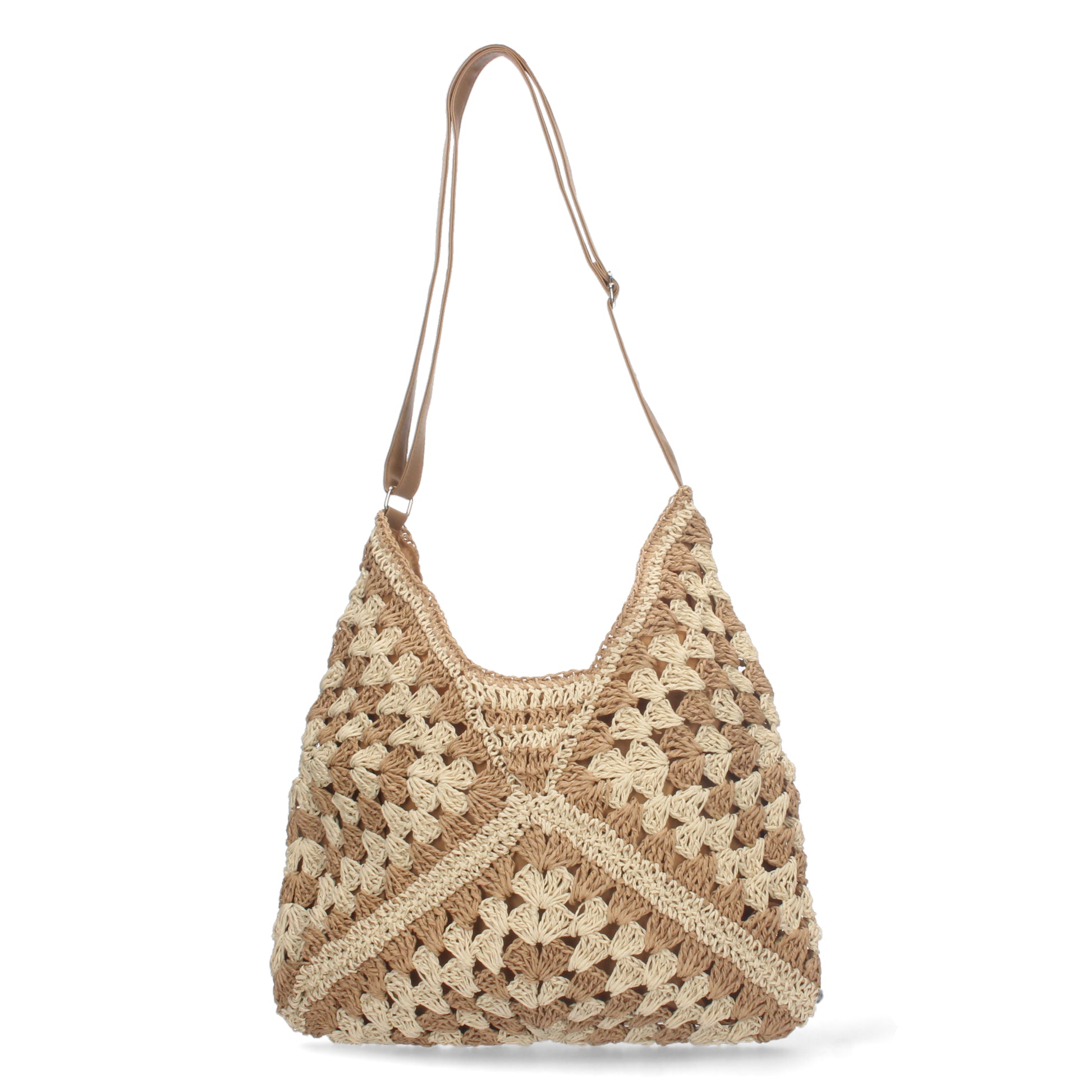 Bolso de Hombro para Mujer con Material de Rafia Entrelazada Correa Ajustable 2 Bolsillos Interiores y Cierre de Cremallera