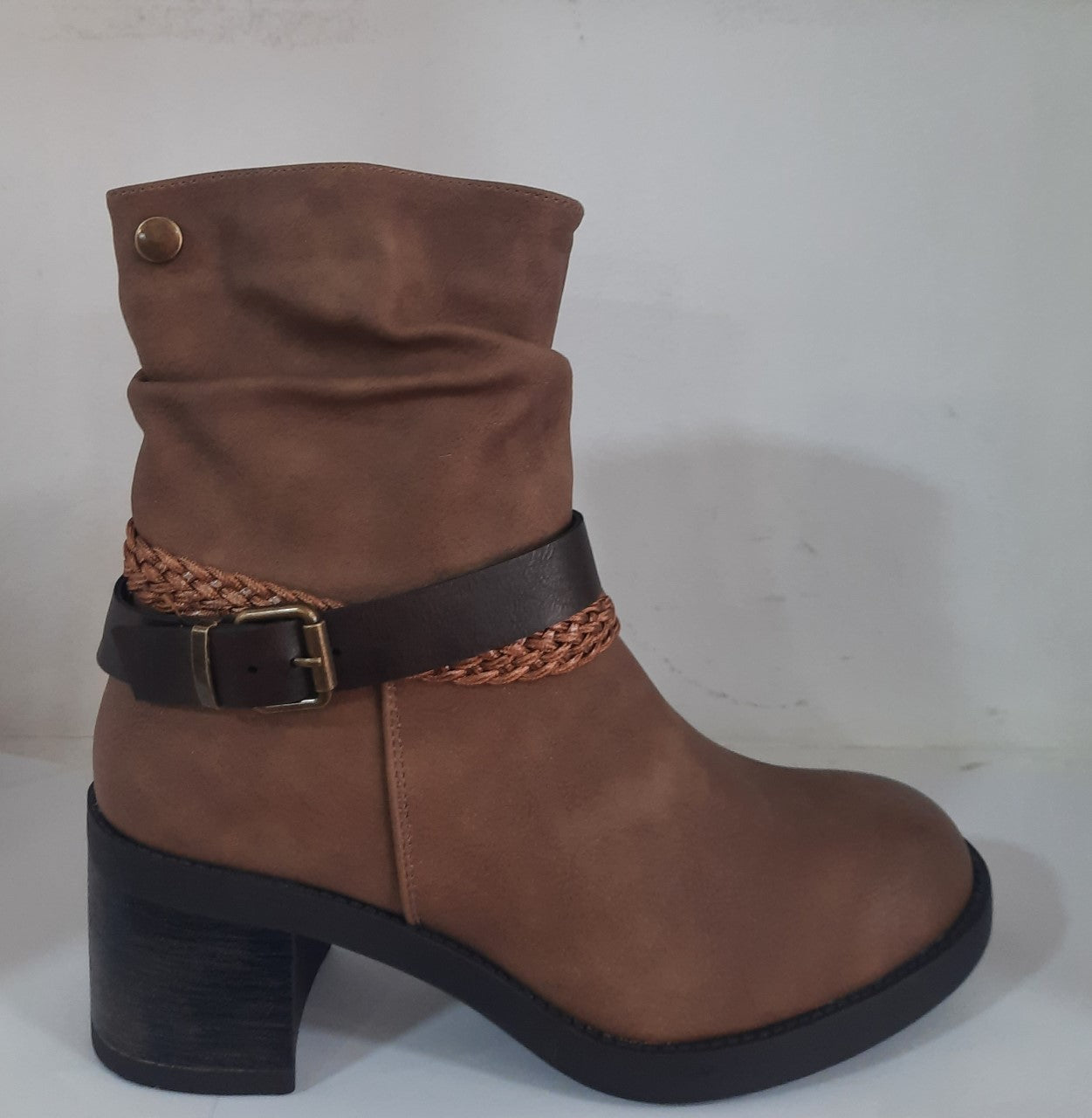 BOTIN DE TACON BAJO, EN MATERIAL. SUPER BONITO Y COMODO. DISPONBLE EN DOS COLORES.