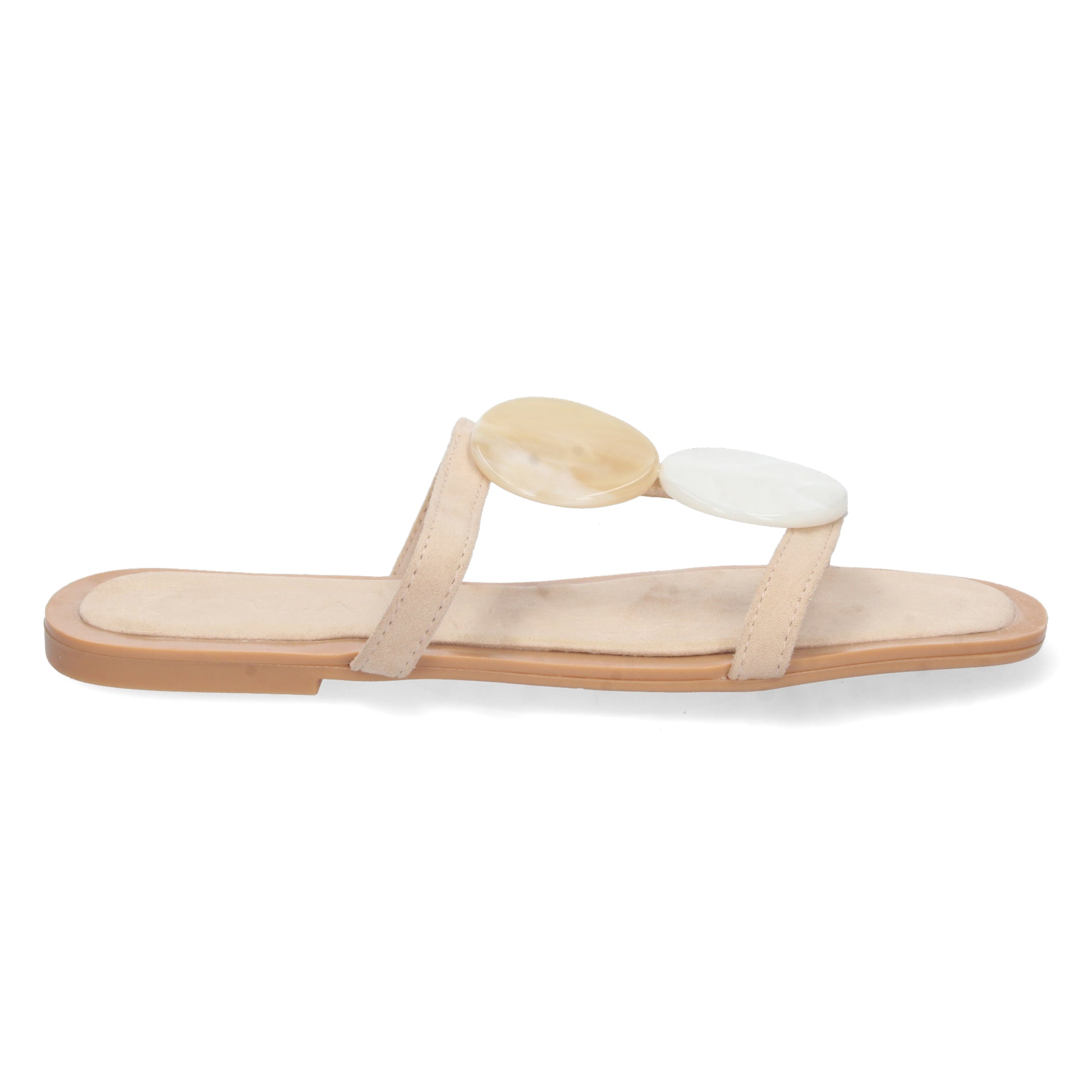 Sandalia Plana de Mujer Comoda con Talon Abierto y Abalorios en el Empeine