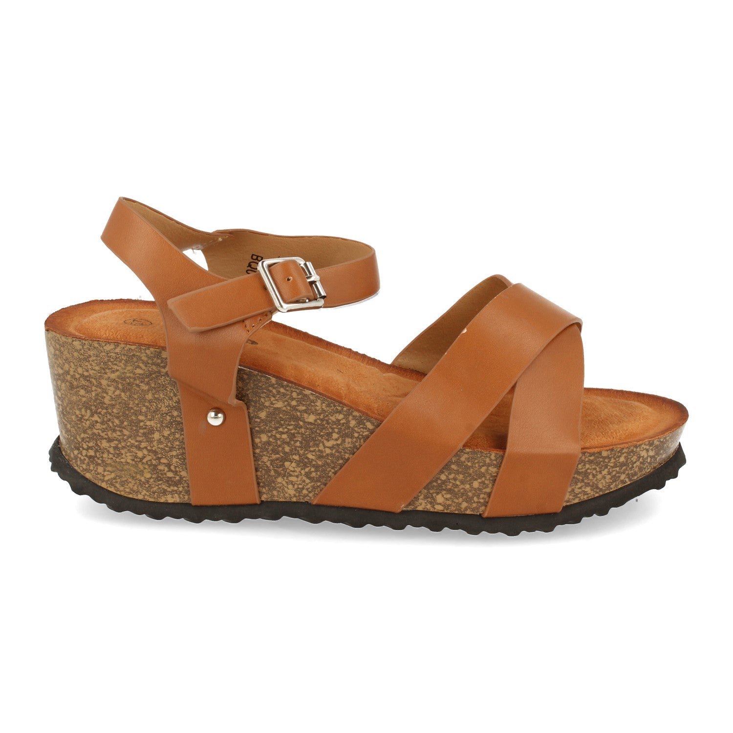Sandalia de Cuña para Mujer con Planta Comoda Anatomica Palas Cruzadas y Cierre de Hebilla Primavera Verano 2020