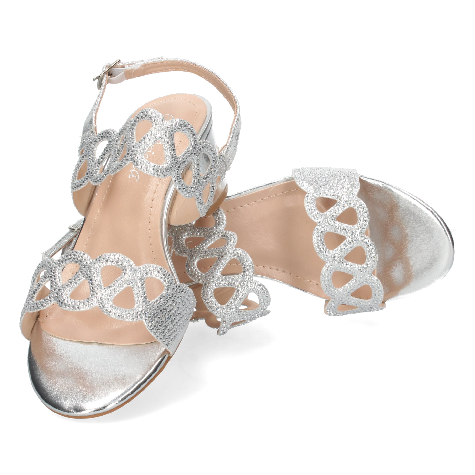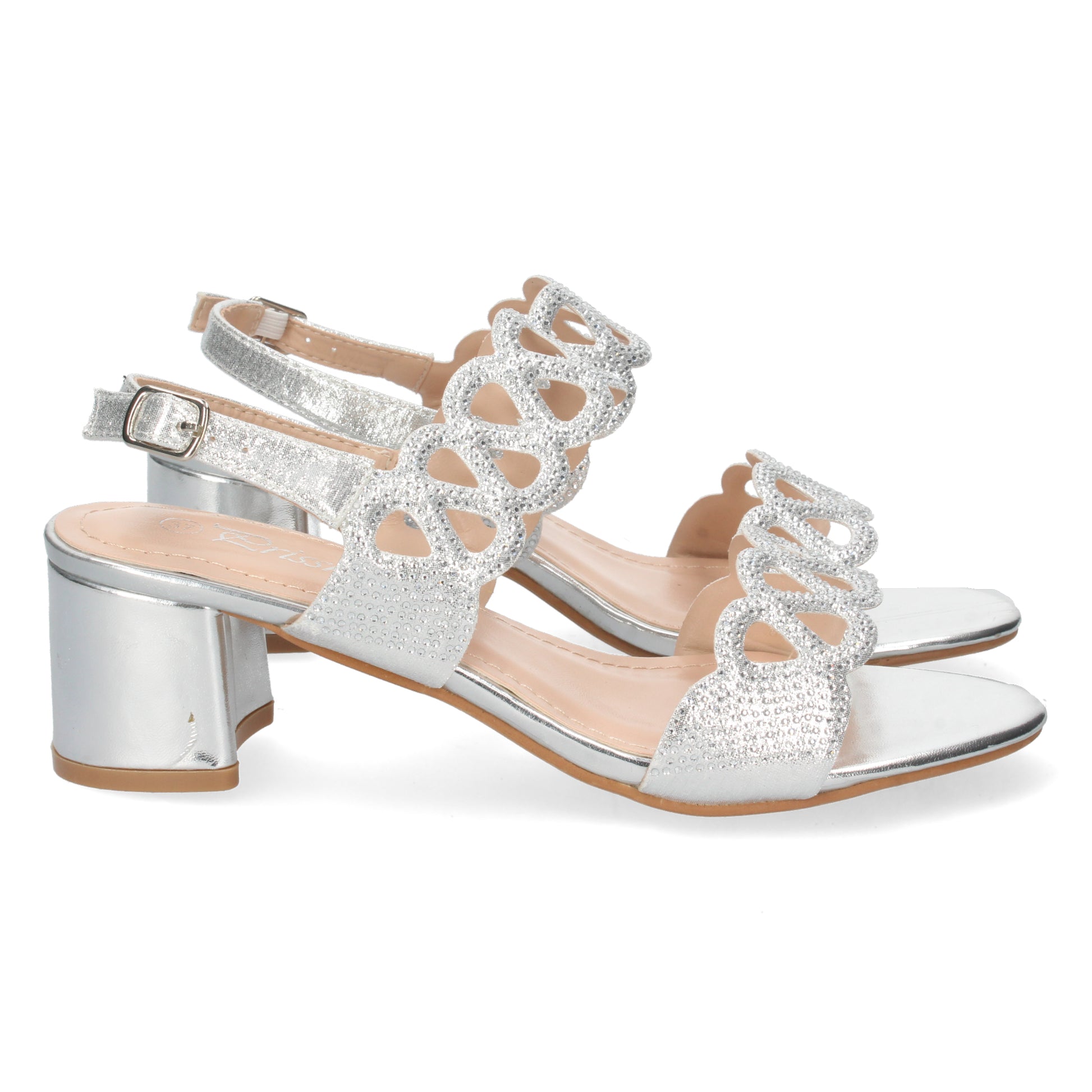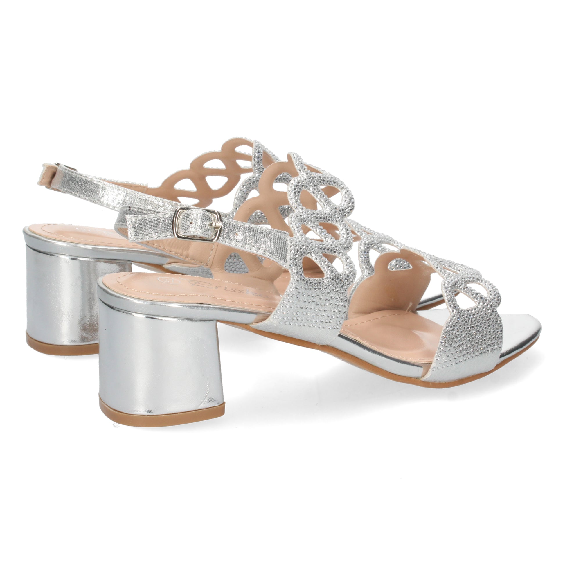 Sandalia de Tacón para Mujer Comoda con Strass en Pala y Cierre de Hebilla Primavera Verano 2022