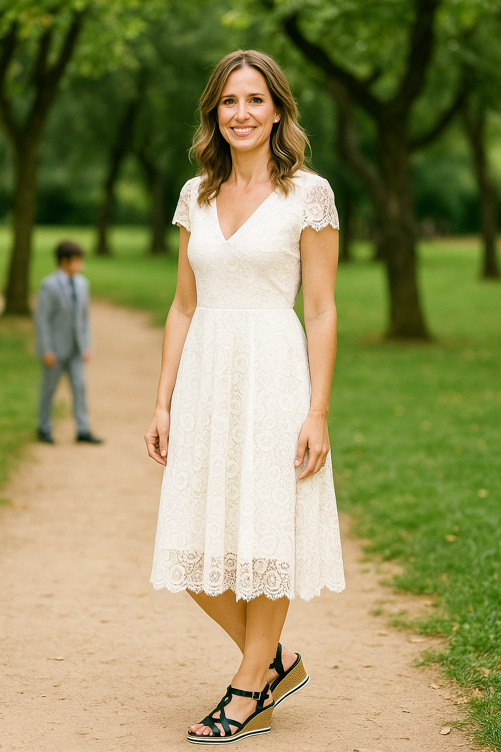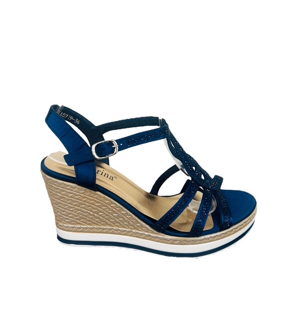 Descubre nuestra cuña azul con diseño entrelazado, perfecta para lucir en comuniones, bautizos o celebraciones al aire libre.