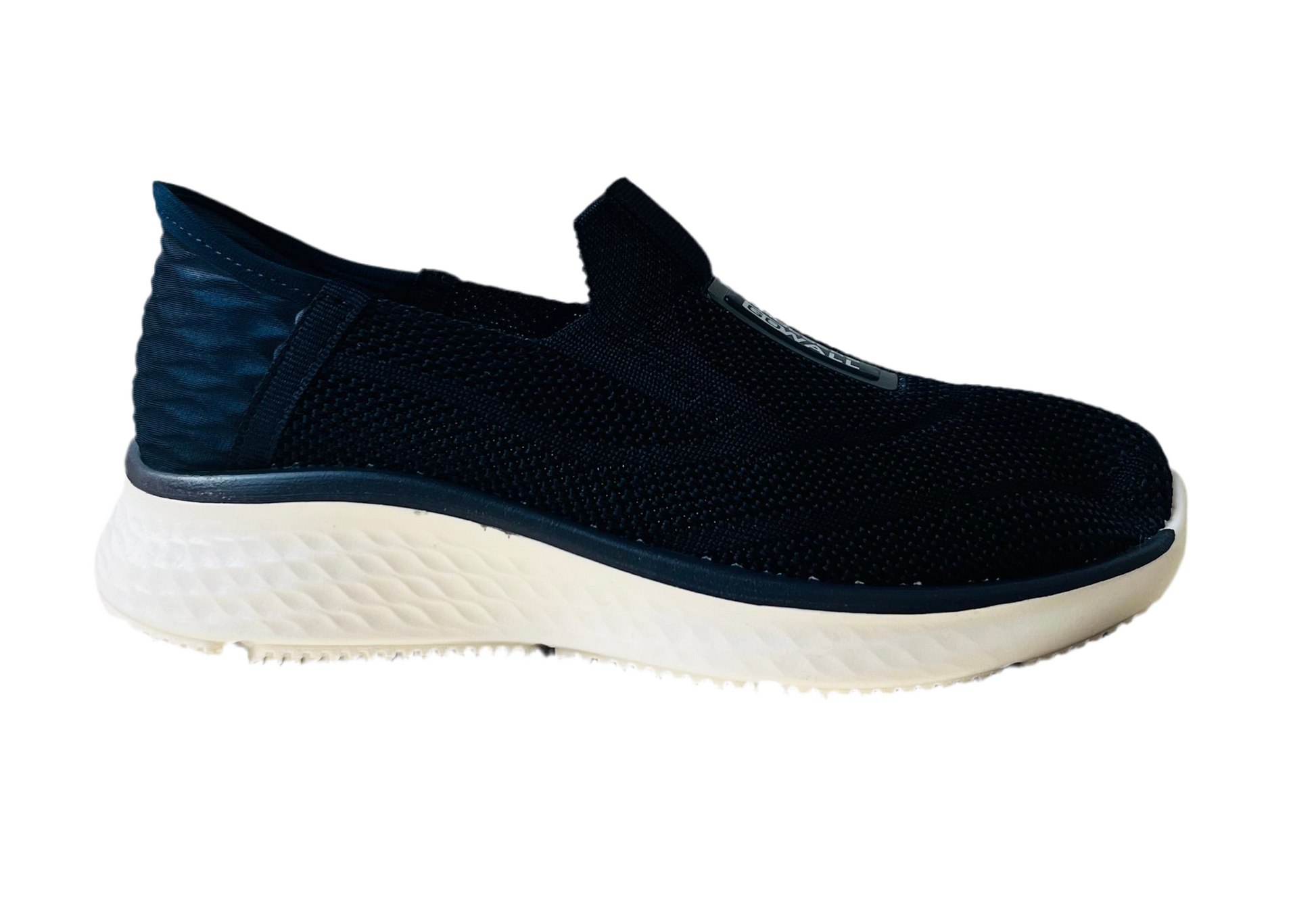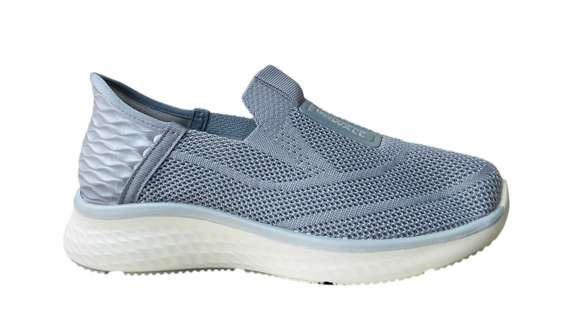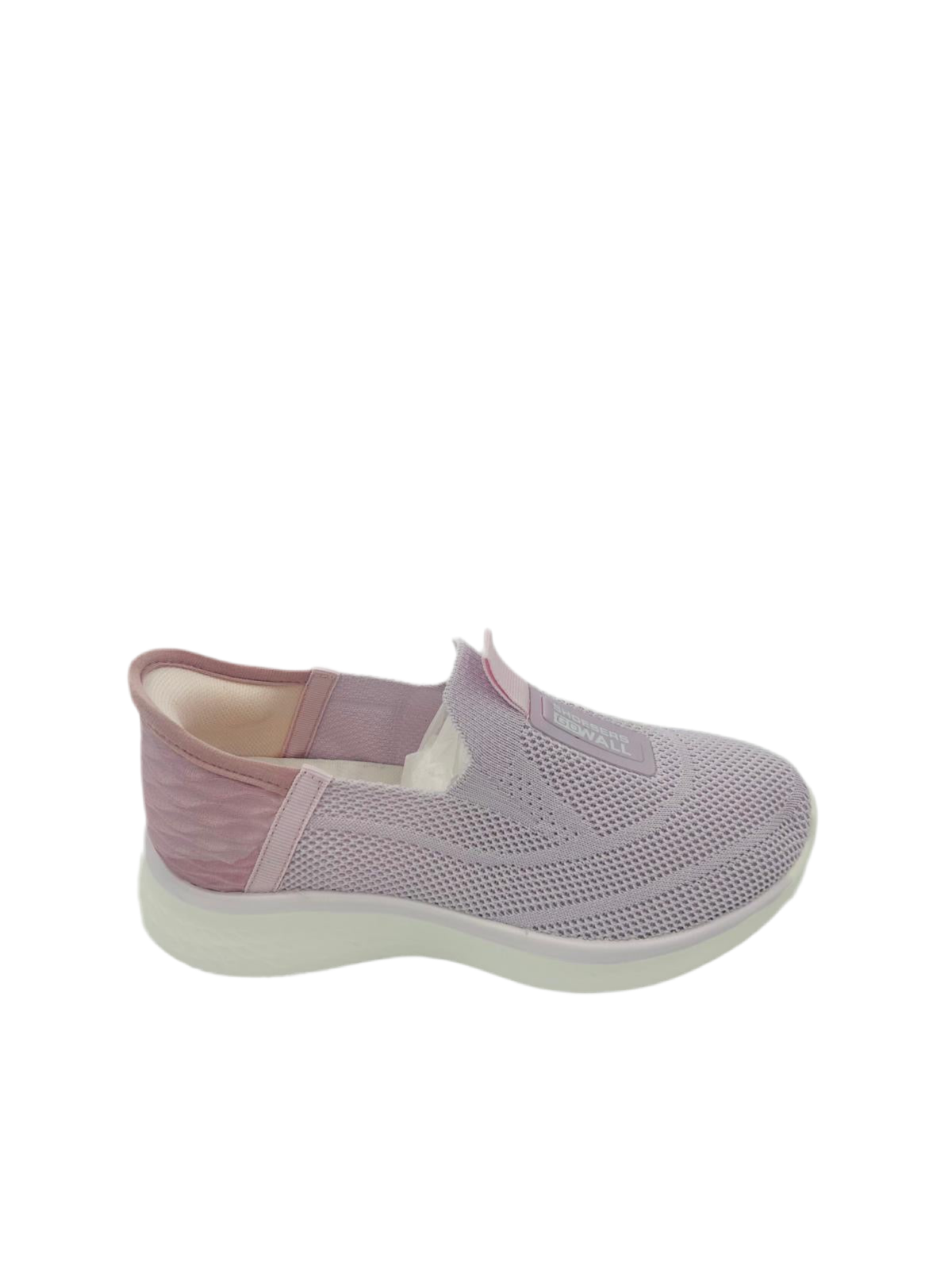 Deportiva de tela. Súper cómoda Ligera y sin peso color morado clarito y se puede poner sin agacharse súper práctica