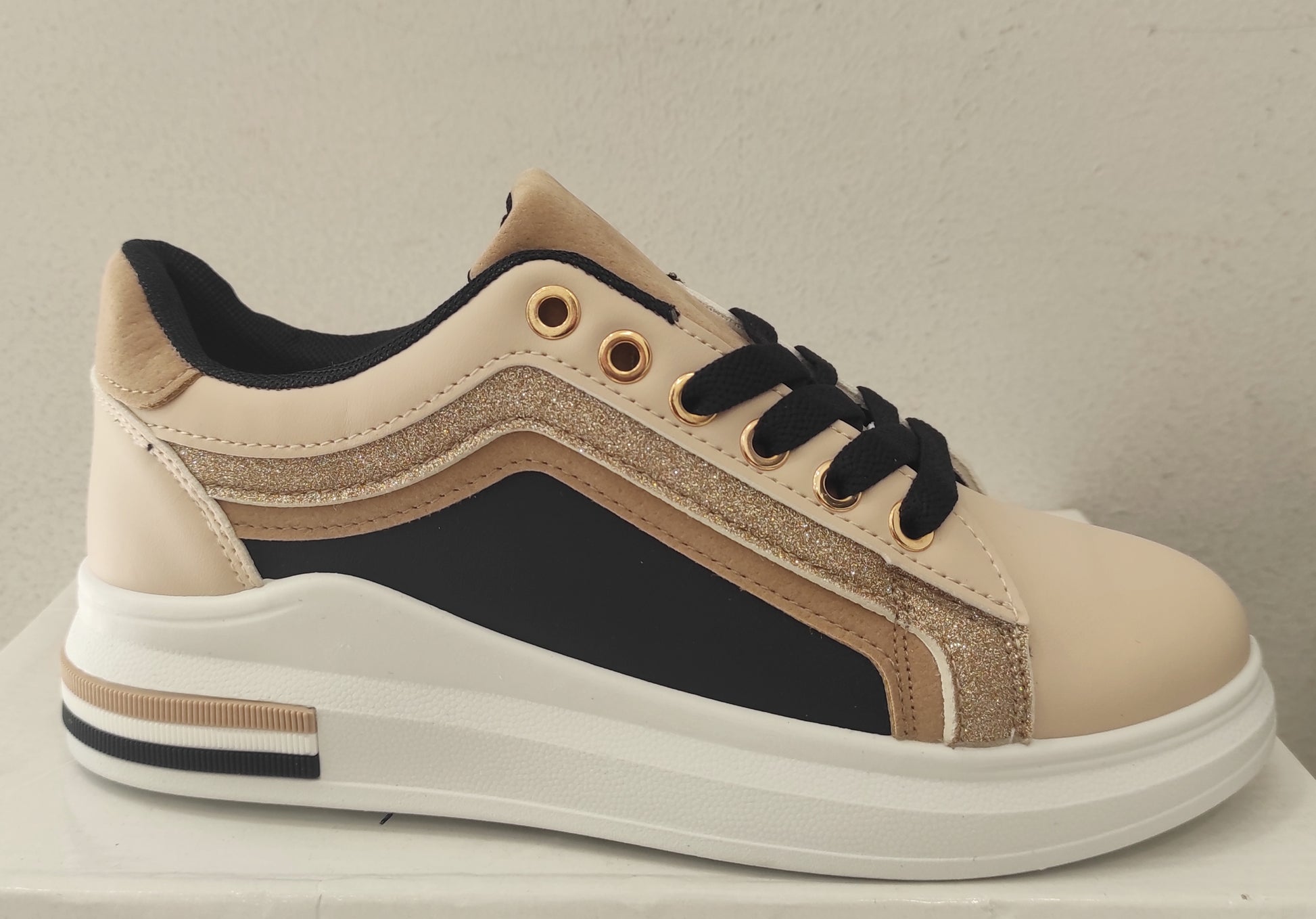 DEPORTIVA DE VESTIR CON PLATAFORMA BAJITA,PERFECTA PARA ENTRE TIEMPO, EN COLOR NEGRO Y BEIGE