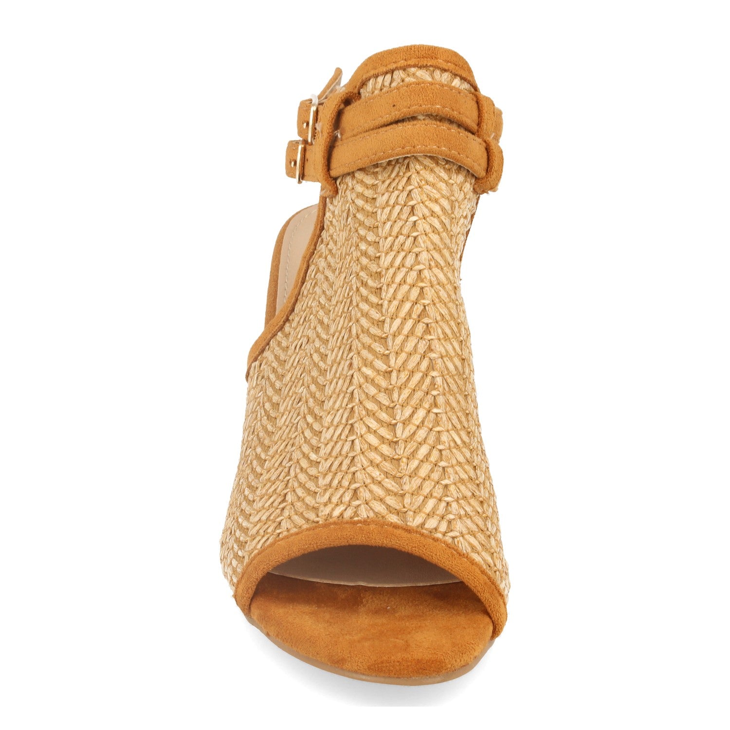 Sandalia de Tacón para Mujer con Pala de Rafia Talon Abierto y Doble Tira con Hebillas Primavera Verano 2020