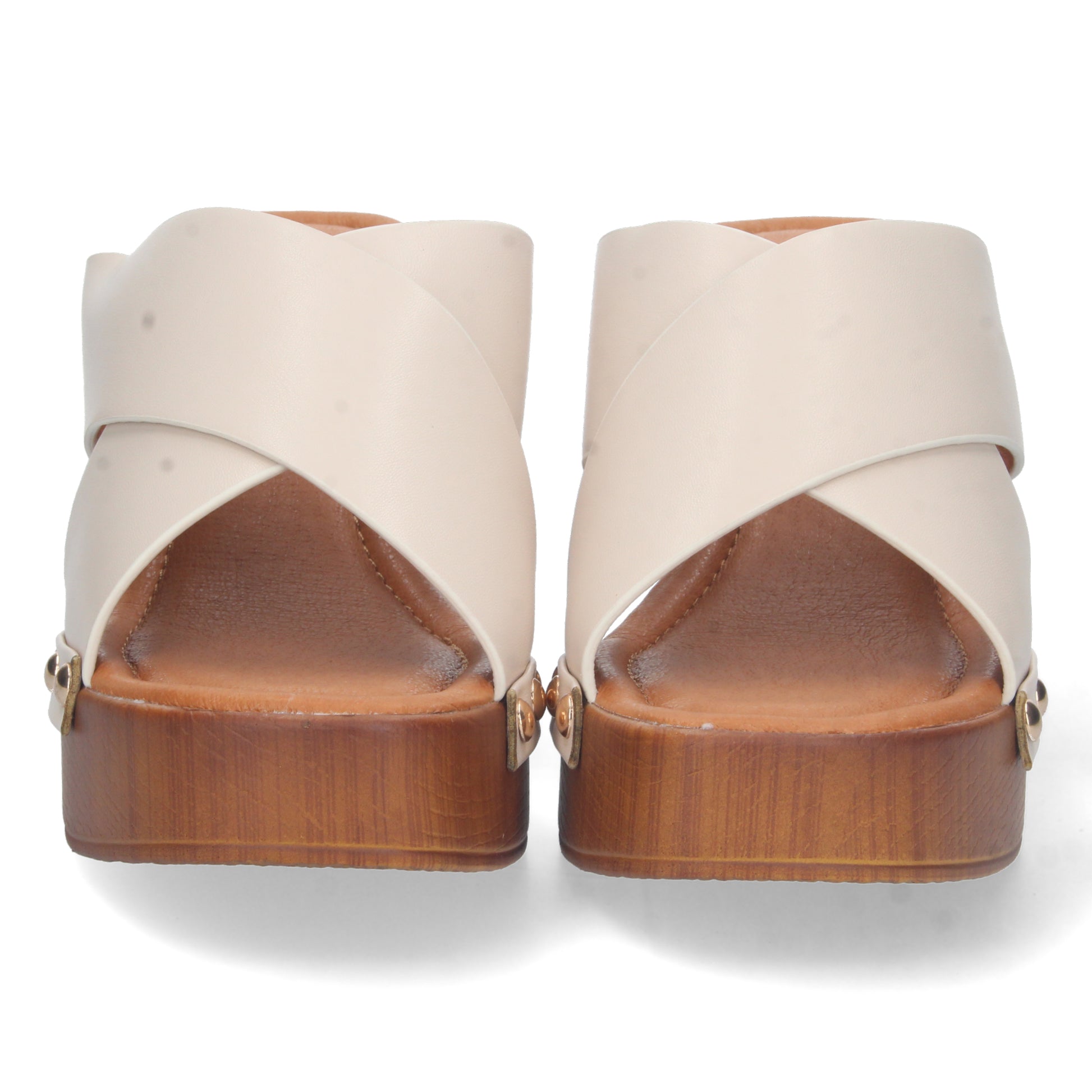 Sandalia de Tacon para Mujer Comoda Plataforma de Imitacion a Madera Palas Cruzadas con Remaches y Talon Abierto