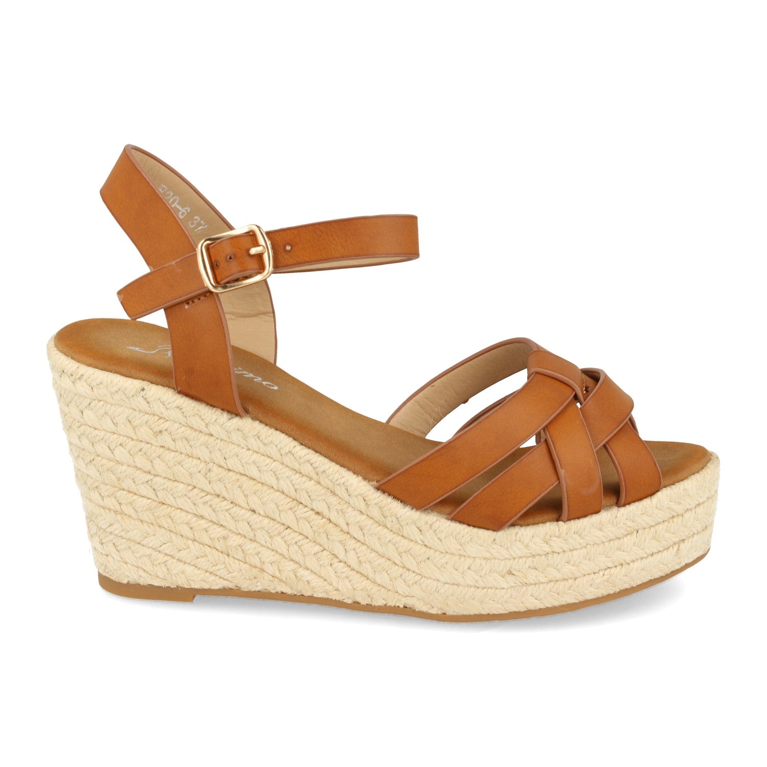 Sandalias de Mujer Ankle Strap con Cuña y Plataforma de Yute Tiras Cruzadas en la Pala Talón Abierto y Cierre de Hebilla. Primavera Verano 2020.