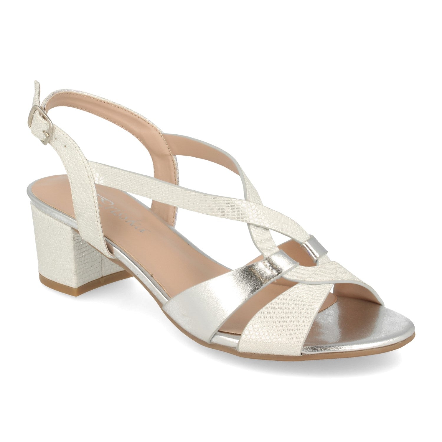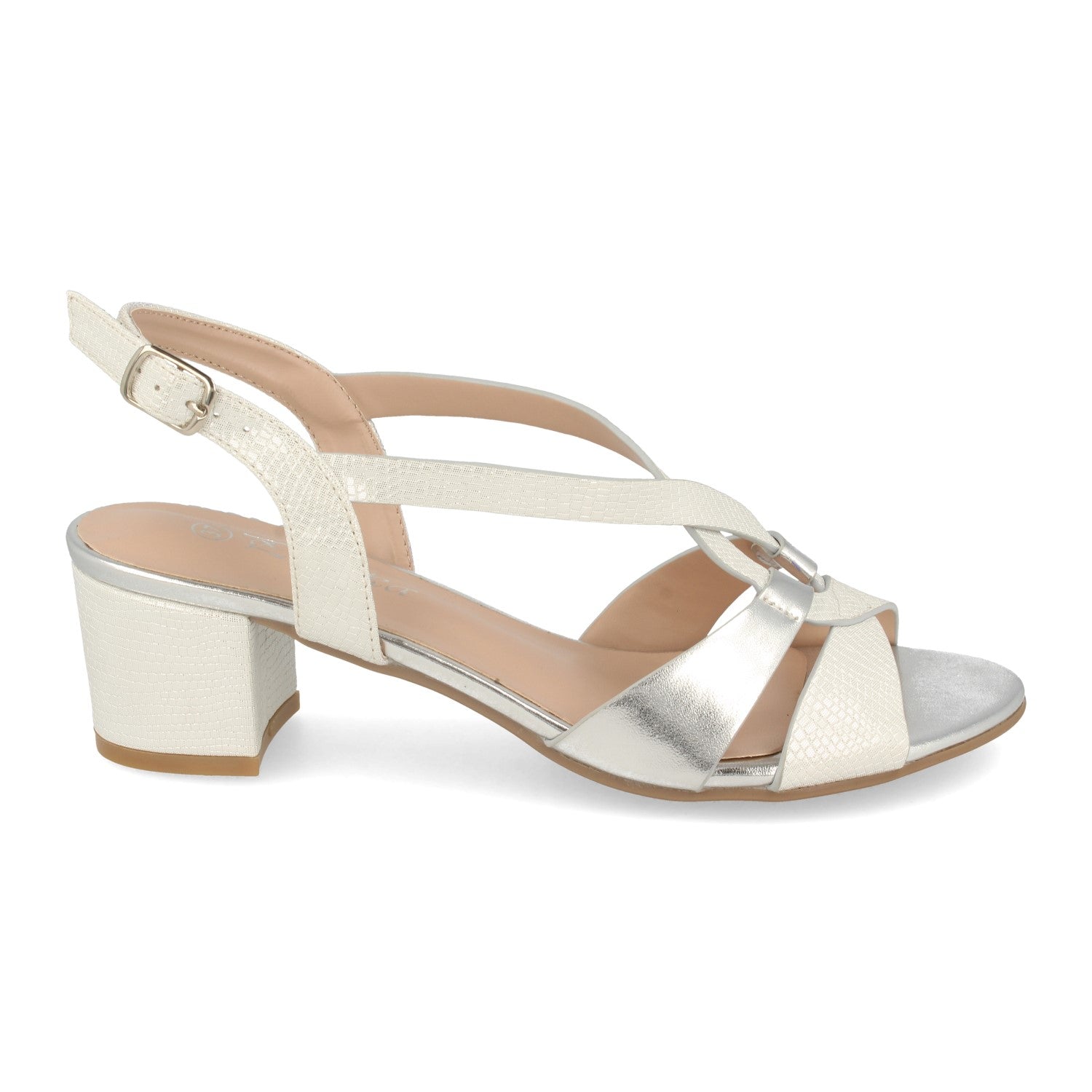 Sandalia de Tacón con Palas Cruzadas de Apariencia Brillante Grabado de Serpiente y Cierre de Hebilla en el Tobillo Primavera Verano 2020