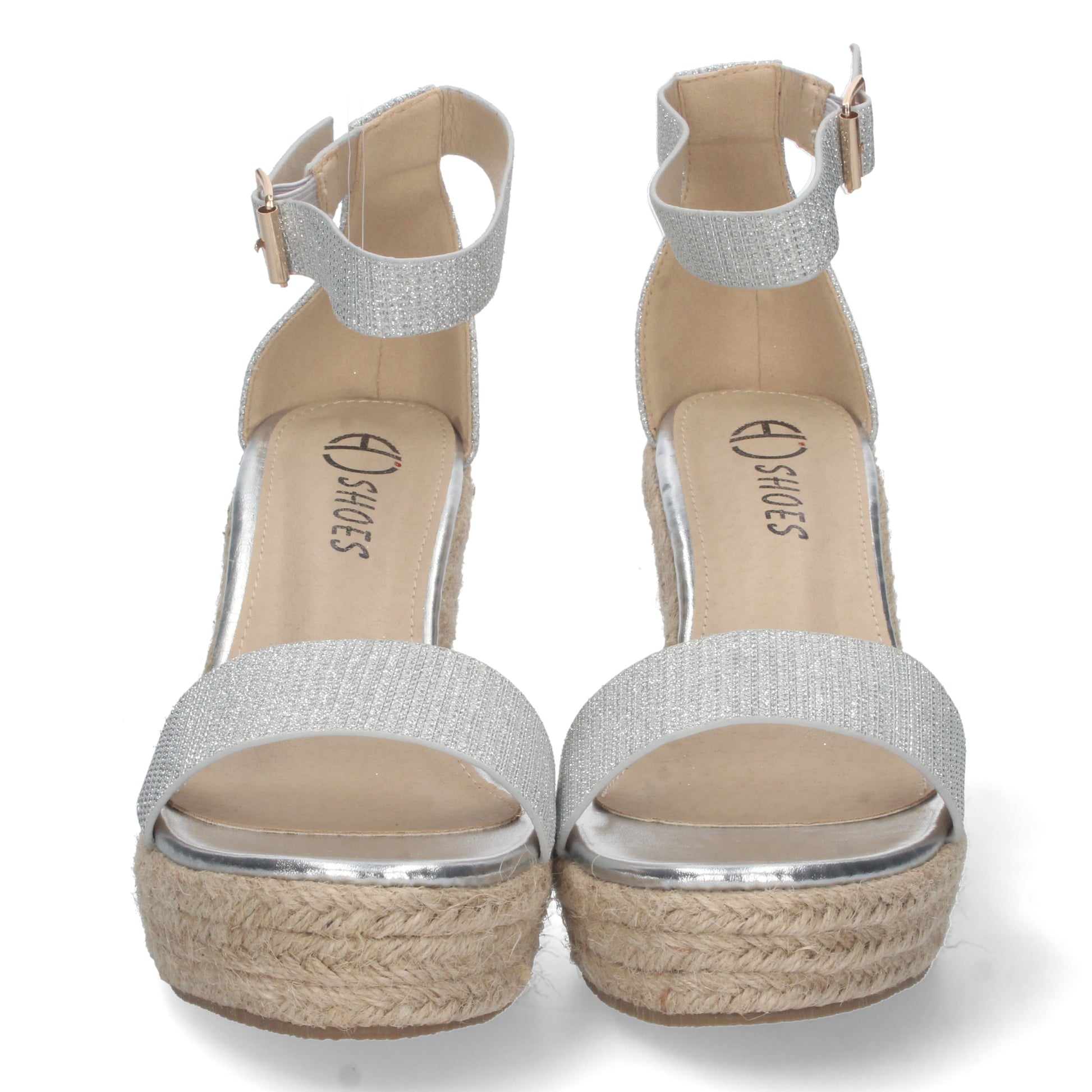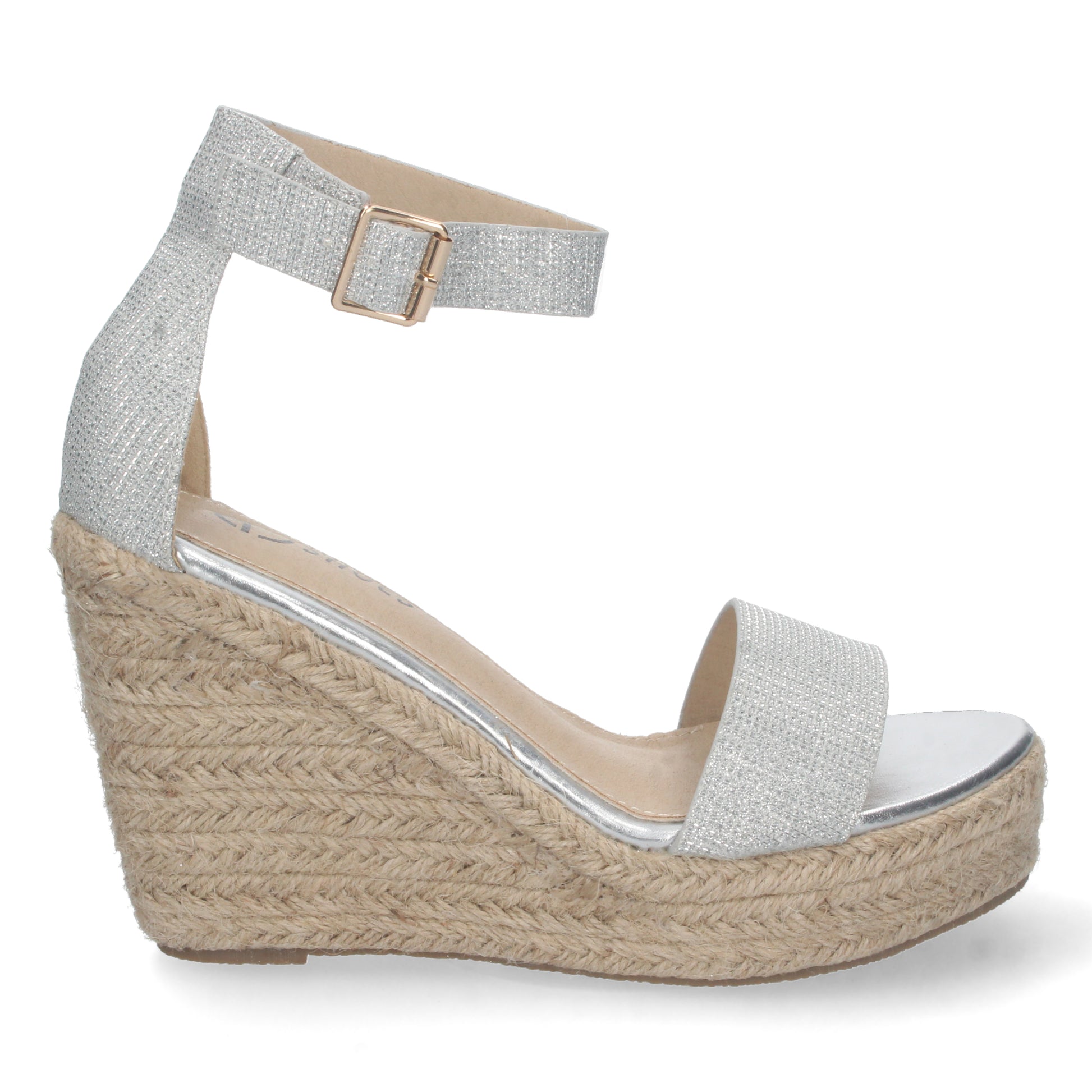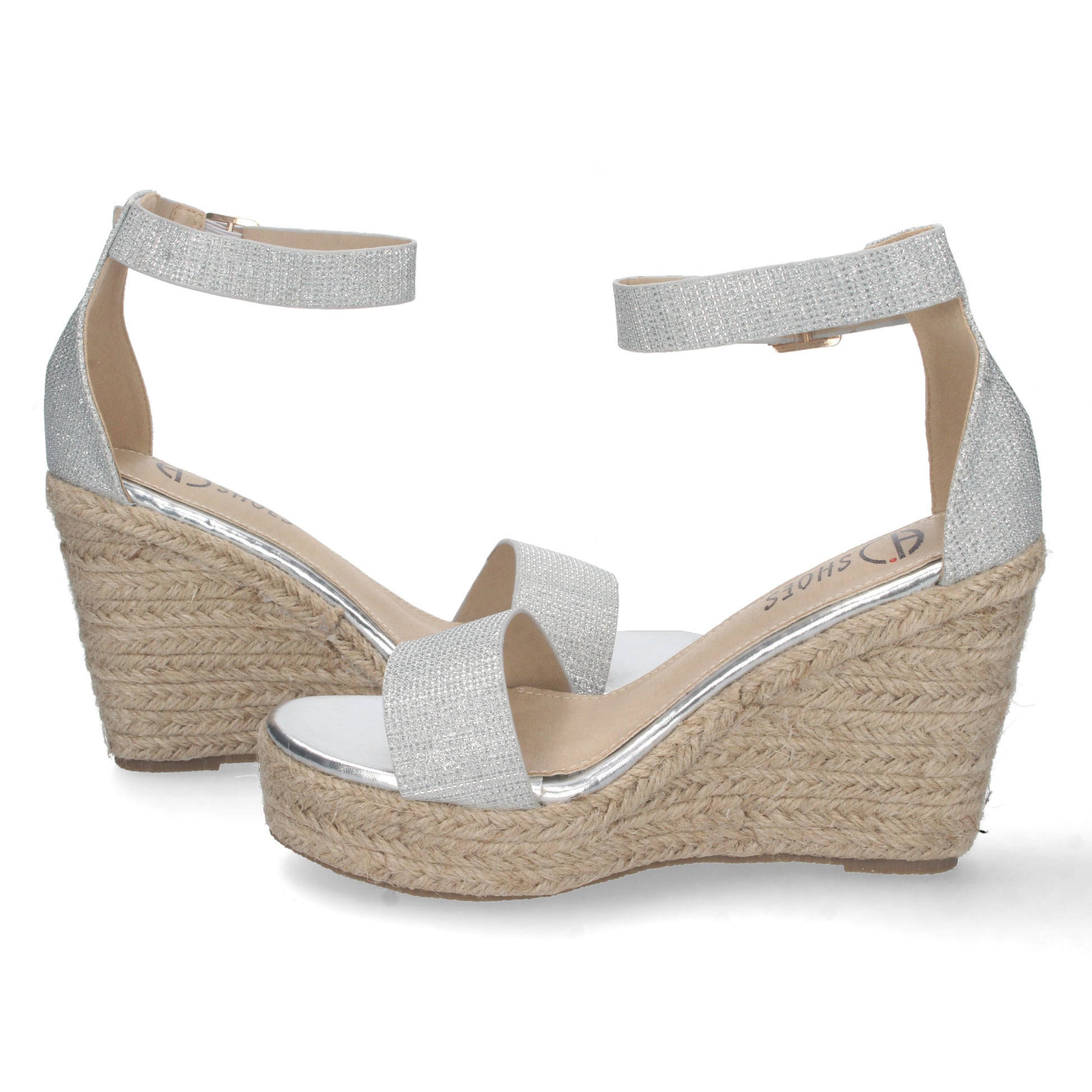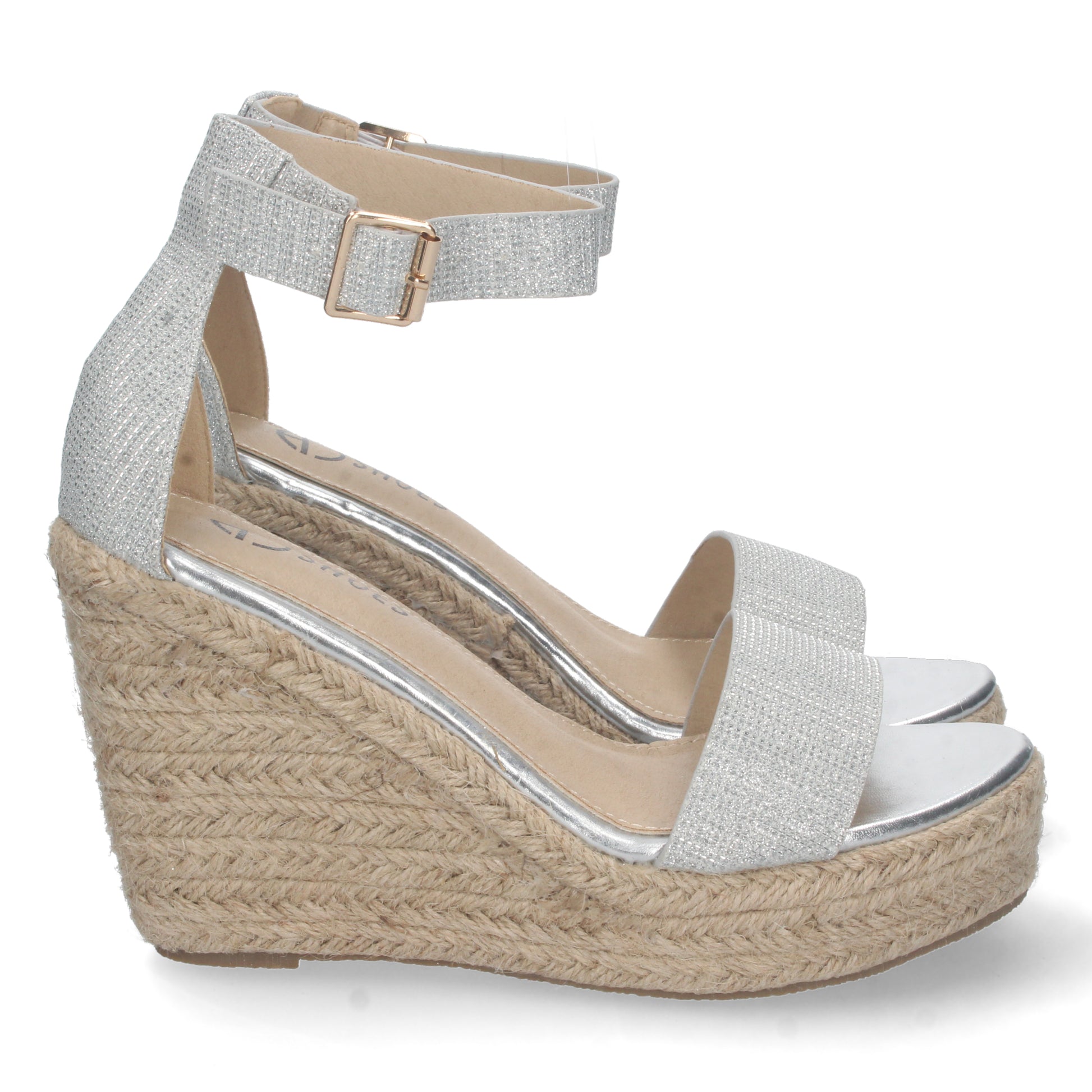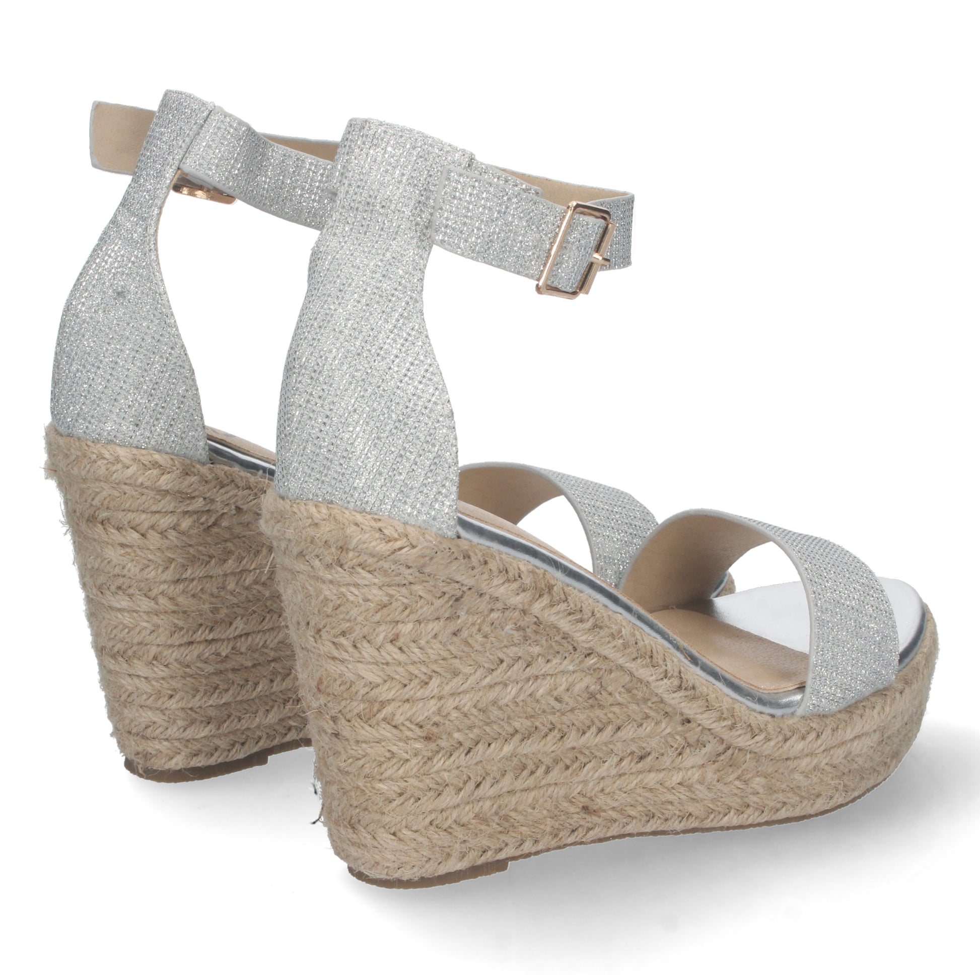 Sandalia de Cuña para Mujer Comoda Forrada de Yute Material Brillante Estilo Ankle Strap con Cierre de Hebilla