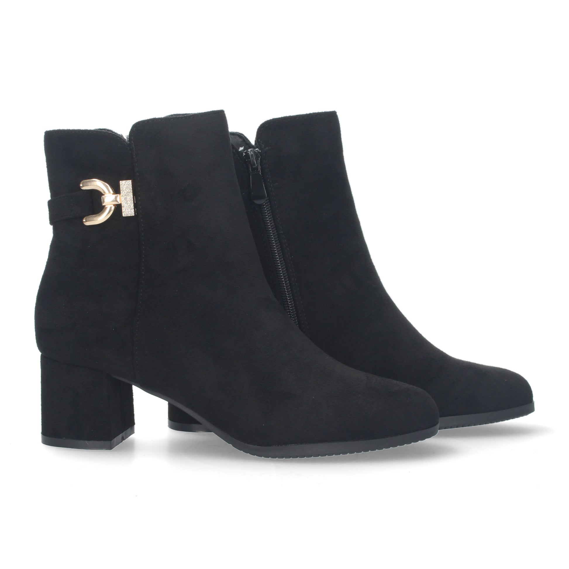 Botin de tacon para mujer material aterciopelado detalle matalico en la caña y cierre de cremallera.